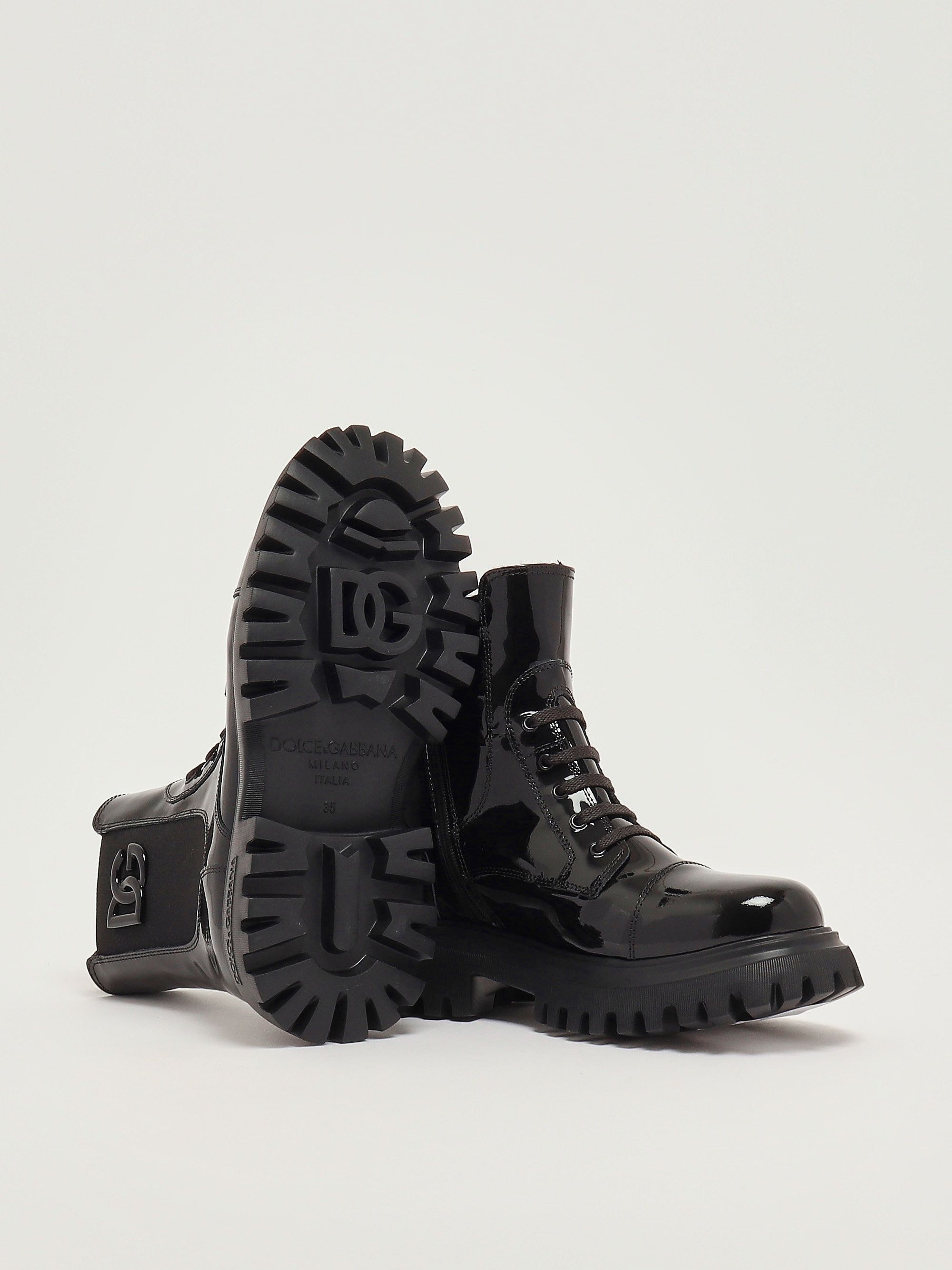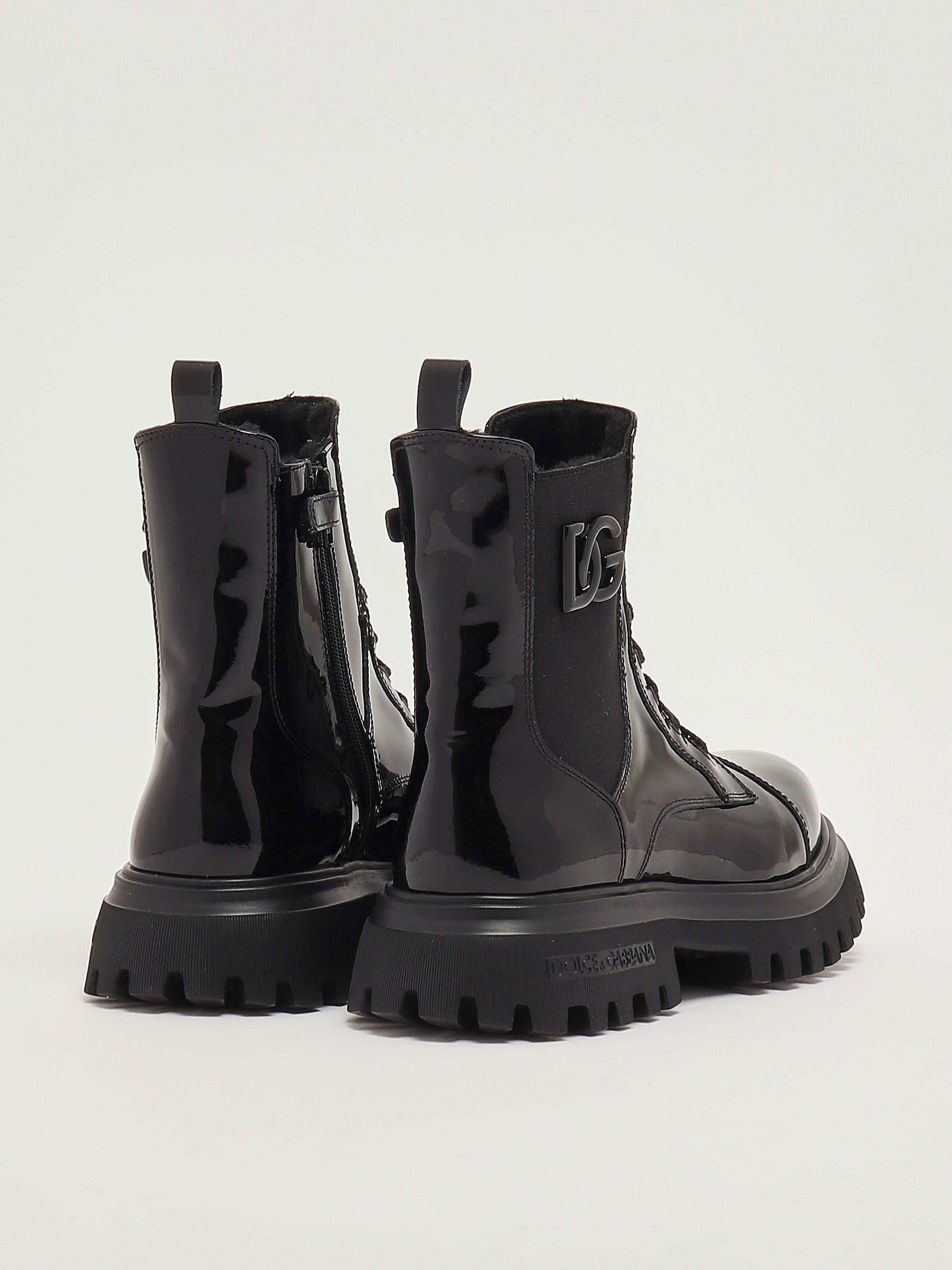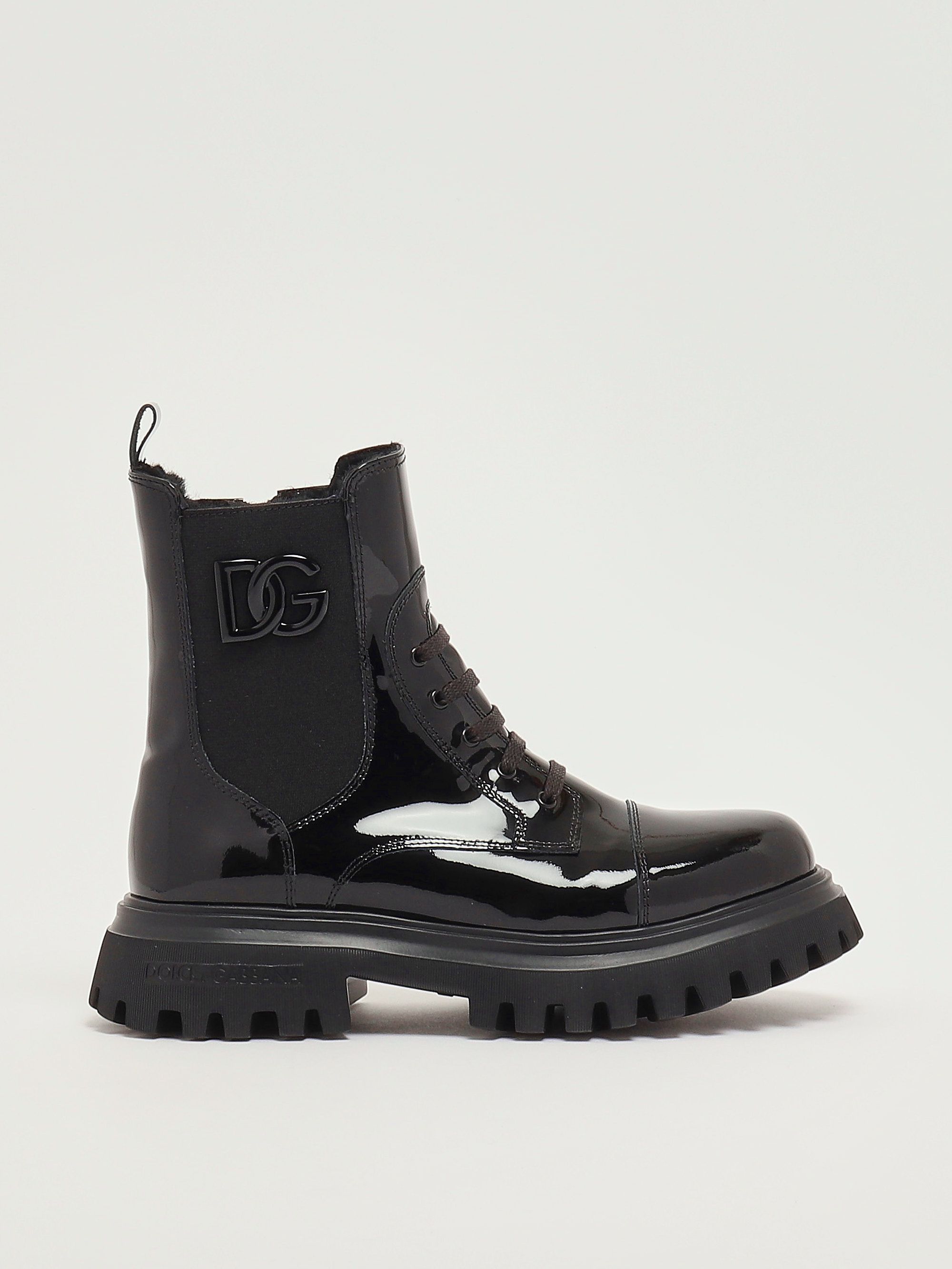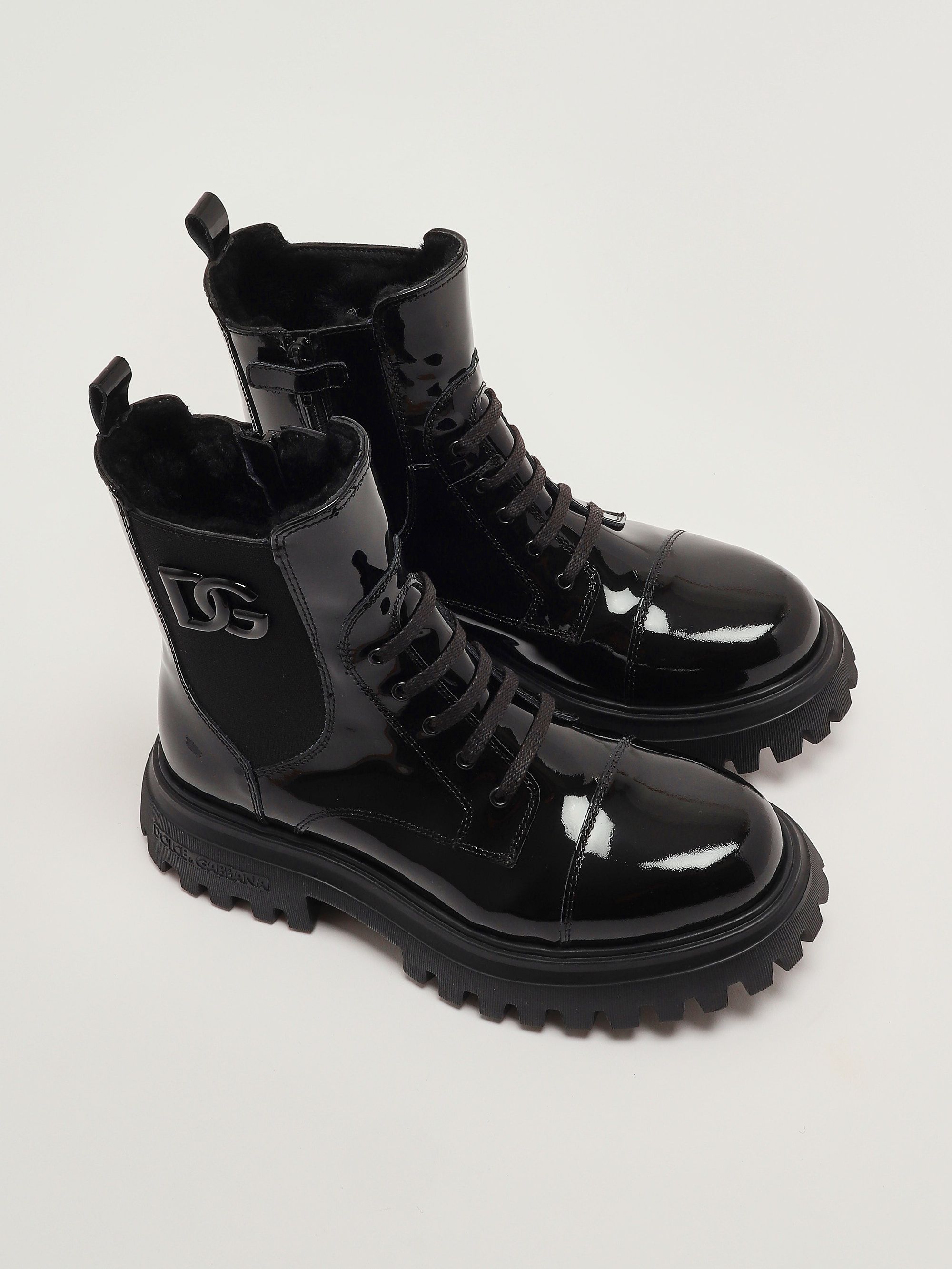 Diese Schnürstiefeletten aus Lackleder haben eine Gummisohle, die für eine gute Dämpfung sorgt, elastische Einsätze und ein Logodetail an der Außenseite des Schafts.