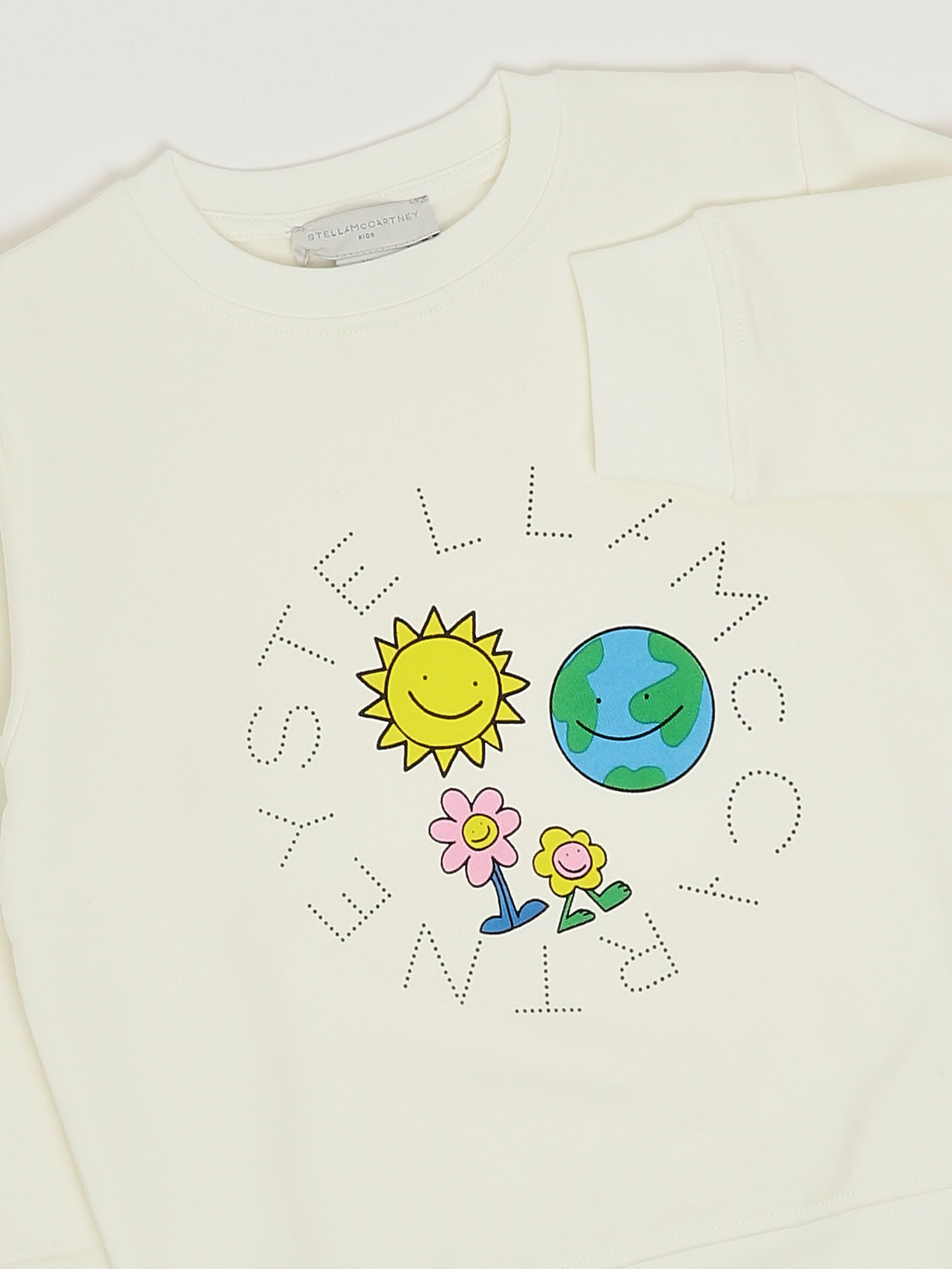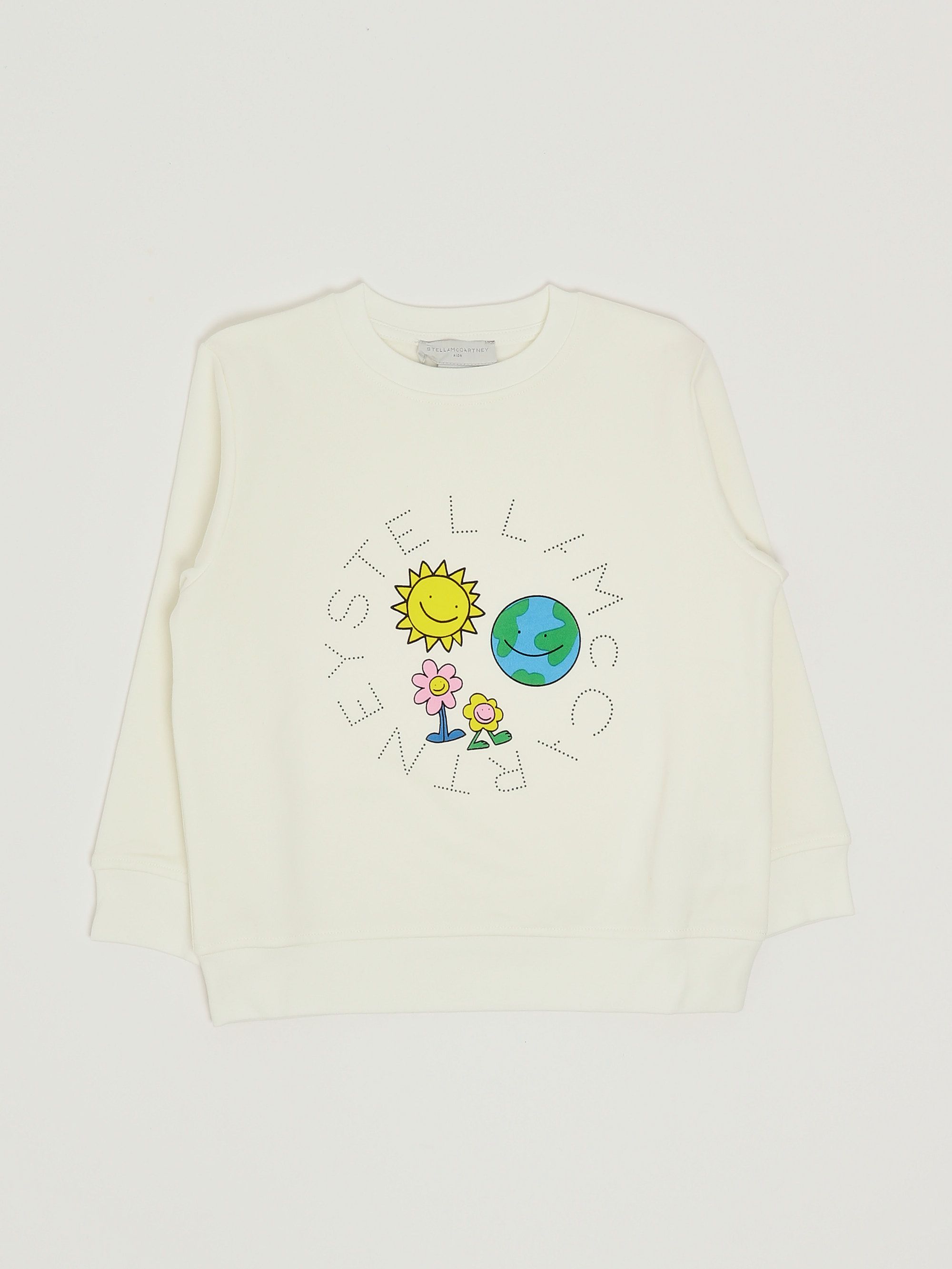Dieses langärmelige Baumwoll-Sweatshirt mit Rundhalsausschnitt hat einen elastischen Saum und Bündchen sowie einen fröhlichen Print auf der Vorderseite.