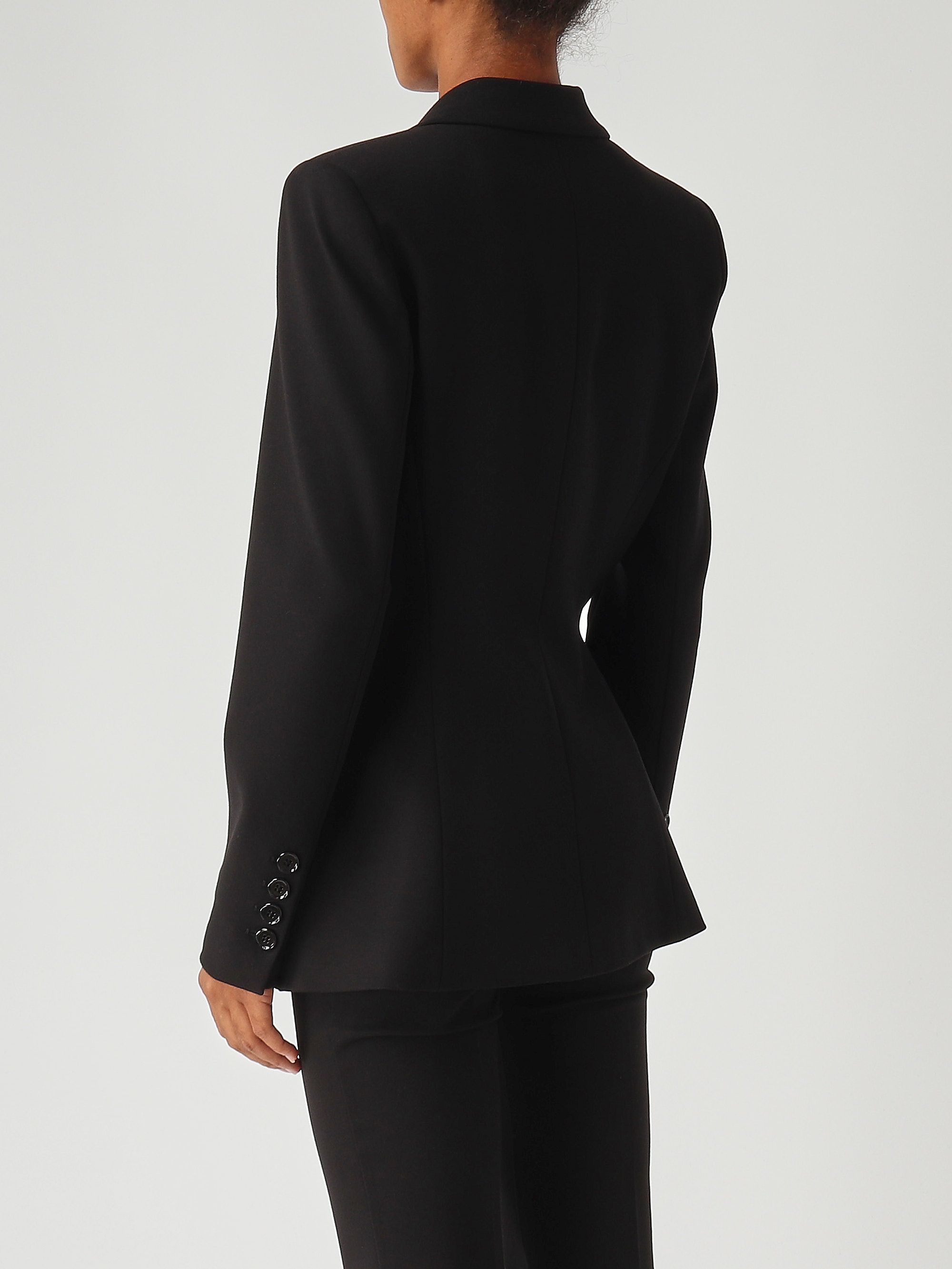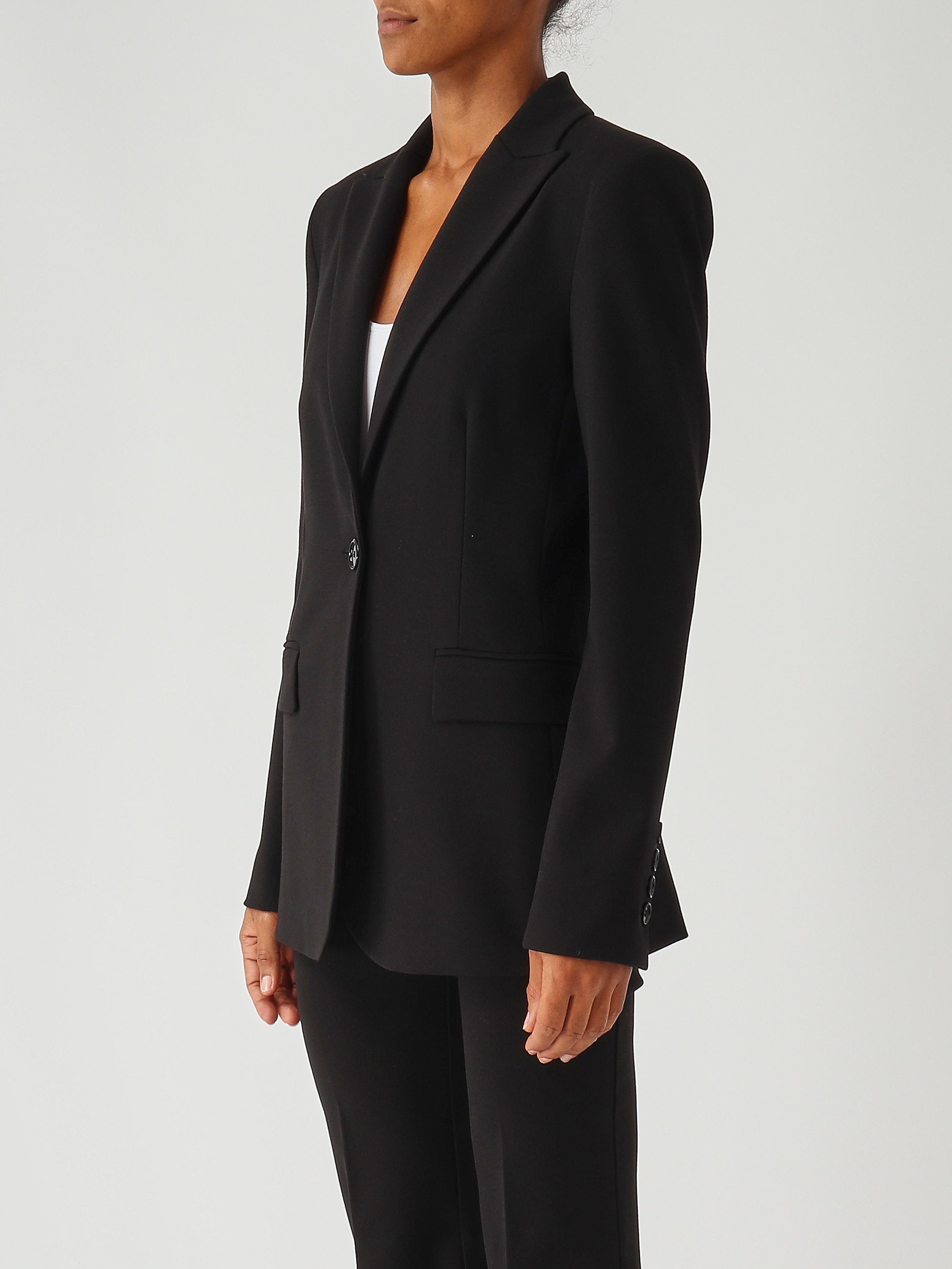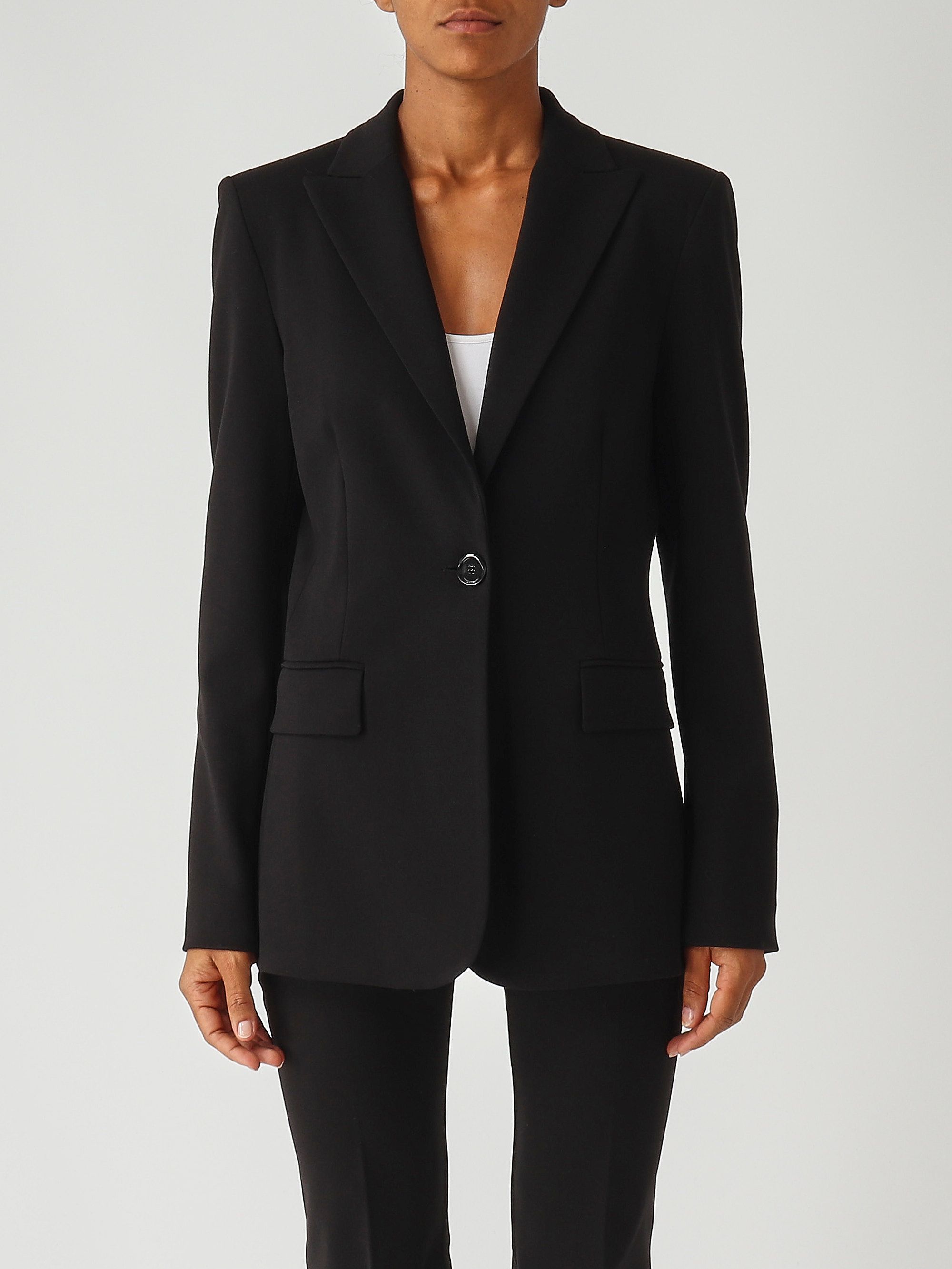 Der Blazer ist ein Kleidungsstück, auf das man aufgrund seiner Vielseitigkeit und Eleganz nur schwer verzichten kann. Hergestellt aus dehnbarem Viskose-Technikgewebe, ist dieses Einreihenmodell mit tailliertem Schnitt durch maßgeschneiderte Details, wie die hinteren Abnäher und das Reverse-Kragen, veredelt.
