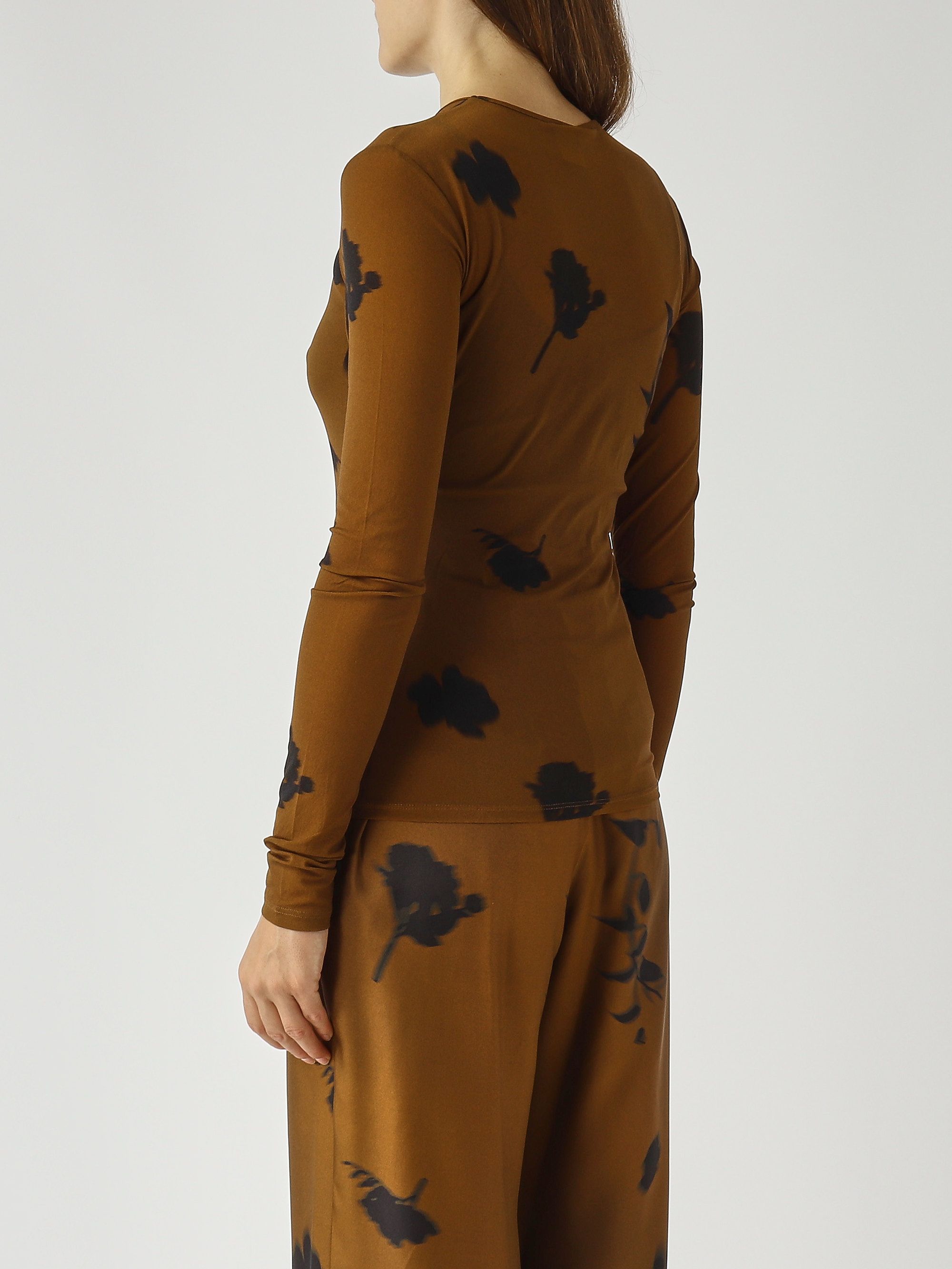 Es ist weich und körpernah und zeichnet sich durch ein kontrastierendes Blumenmuster aus.