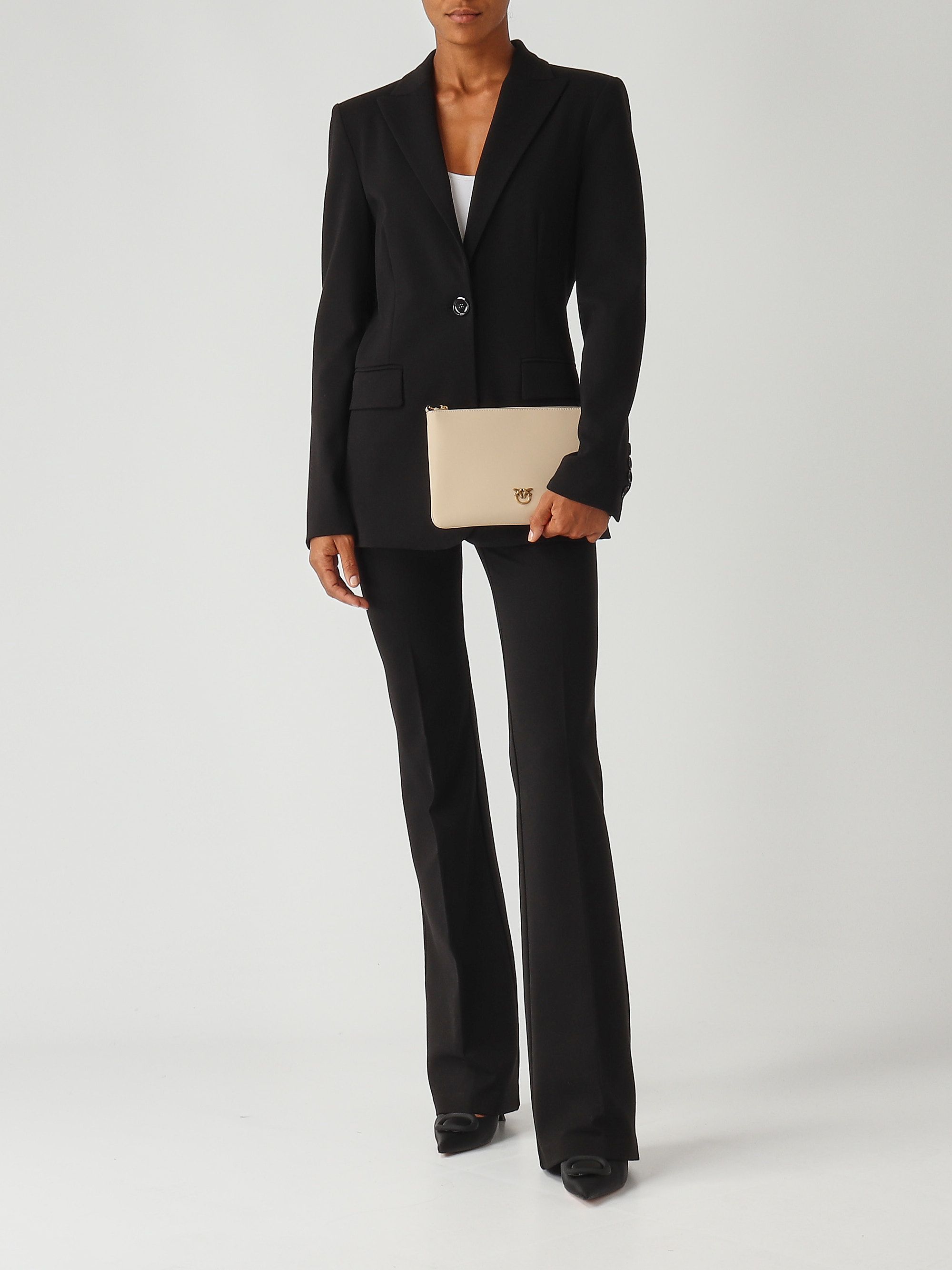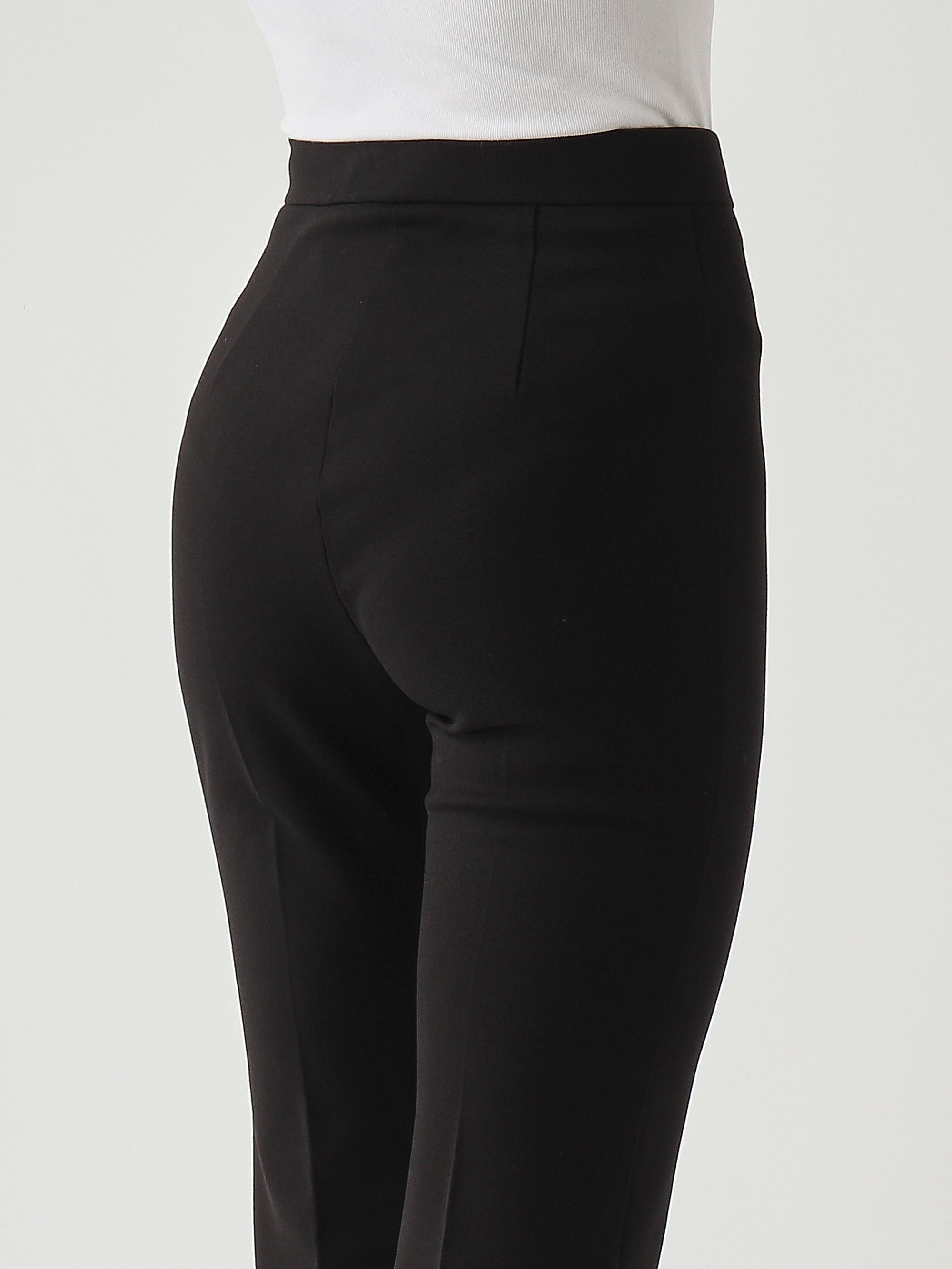 Elegant und vielseitig zugleich zeichnen sich diese Hosen durch das enge Bein bis zum Knie und den ausgestellten Saum aus, der die klassische und ikonische Flared-Silhouette im 70er-Jahre-Stil erzeugt. Der Stoff hat ein bequemes und leistungsstarkes Woll-Look und verleiht ein kompaktes Gefühl. Das Design wird zudem durch eine gebügelte Falte bereichert.