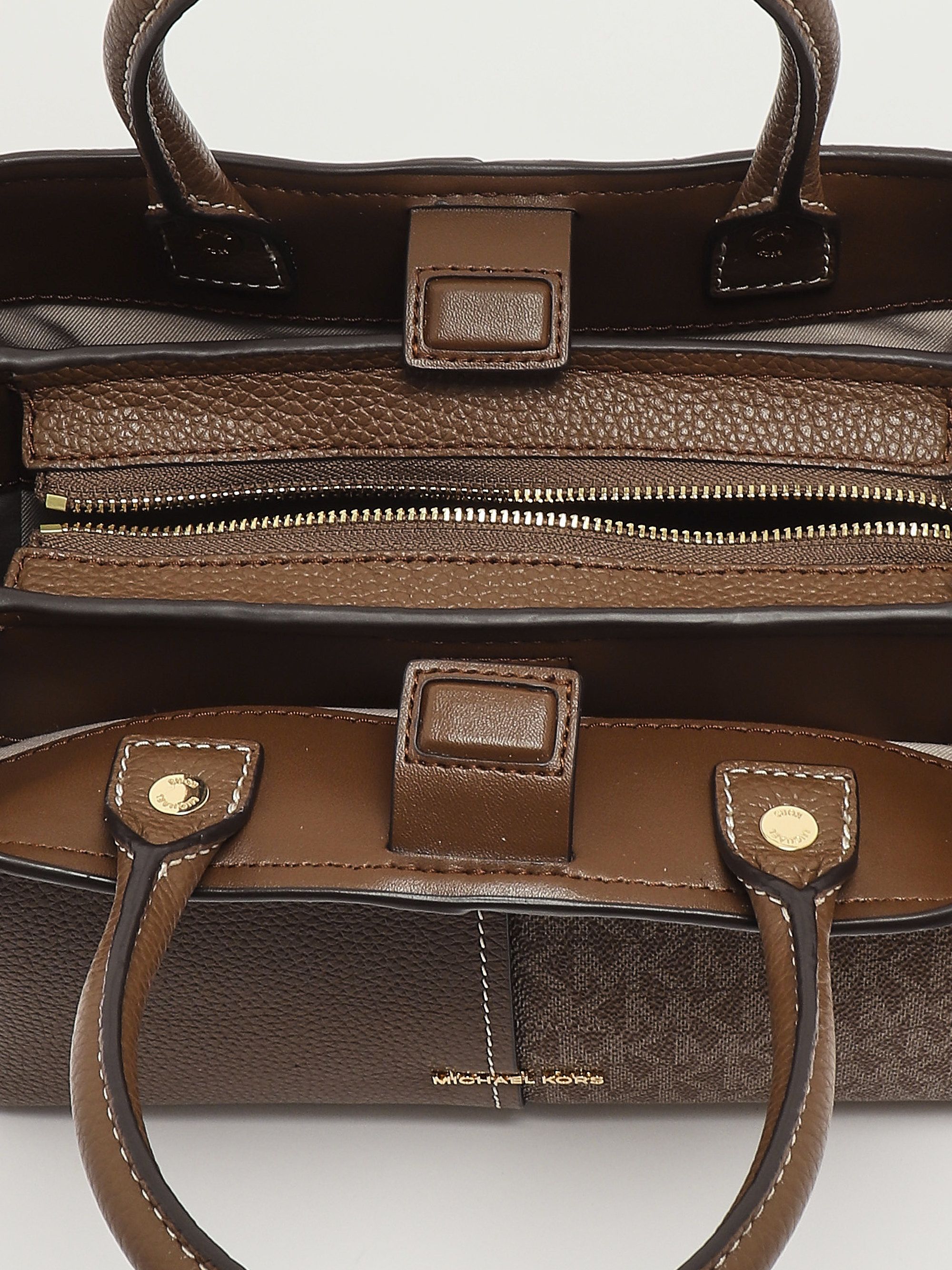 Diese Tasche aus Canvas und Leder mit Logodruck verfügt über einen doppelten strukturierten Griff, einen Schulterriemen, einen Magnetknopfverschluss, ein zentrales Innenfach mit Reißverschluss und ein doppeltes Innenfach.