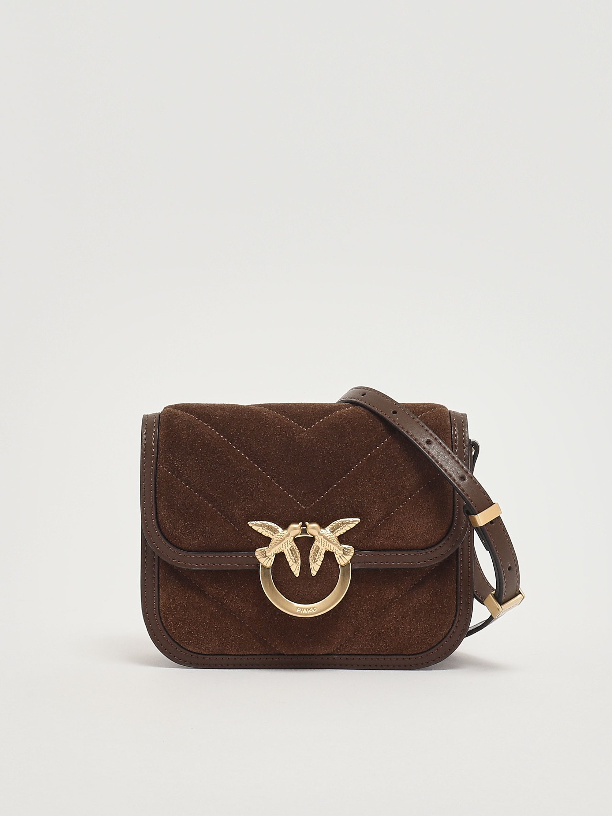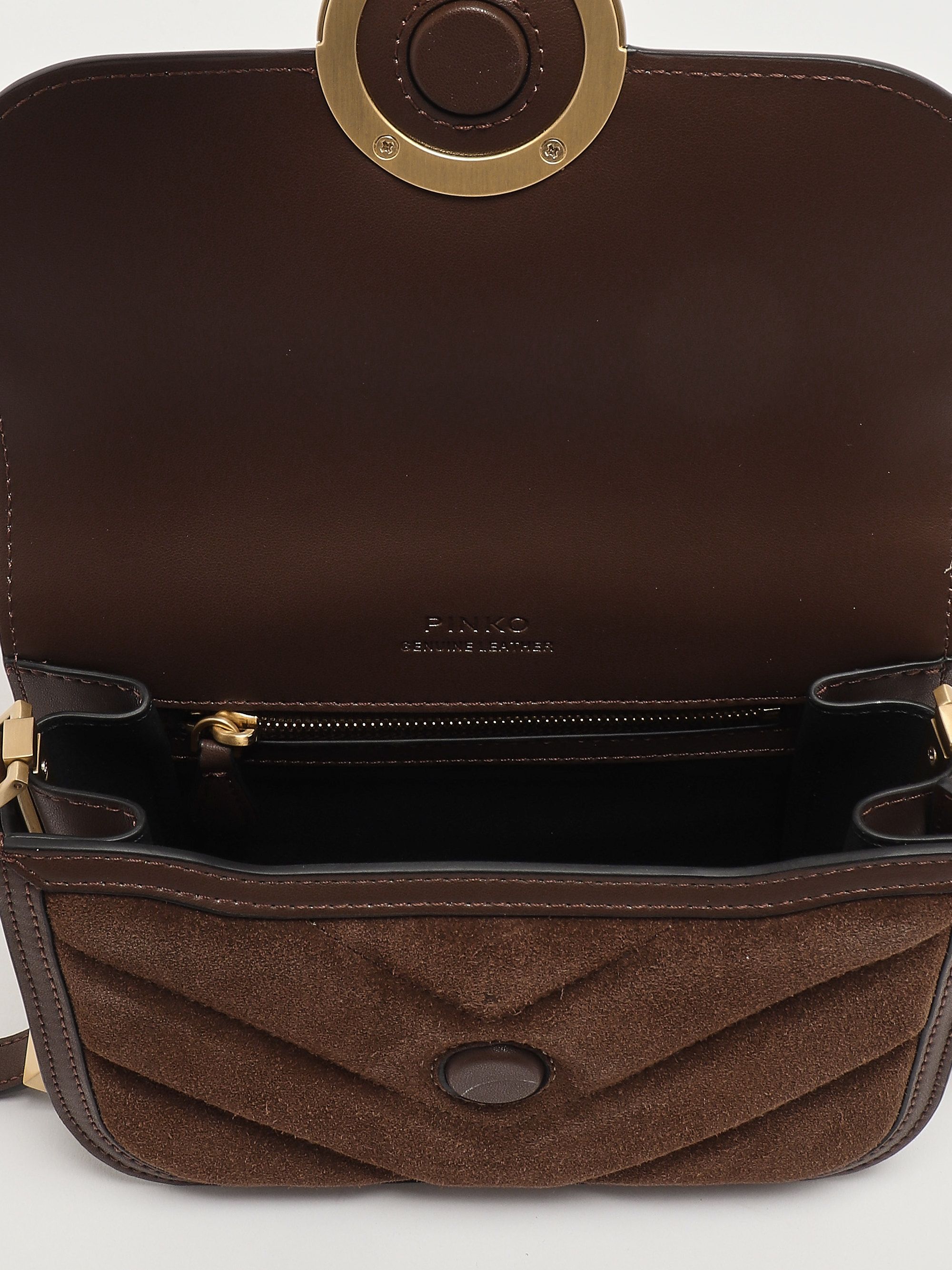 Pinko ist eine Marke mit einer starken, femininen Identität: Sie richtet sich an eine moderne, unabhängige, sinnliche und selbstbewusste Frau und bietet vielseitige, eklektische und zeitgenössische Styles. Diese Tasche ist aus Wildleder mit Glattlederdetails, einem verstellbaren Schulterriemen, einer goldfarbenen Metallklappe und einem Schnallenverschluss mit Love Birds-Logo auf der Klappe sowie einem Reißverschlussfach im Inneren gefertigt.