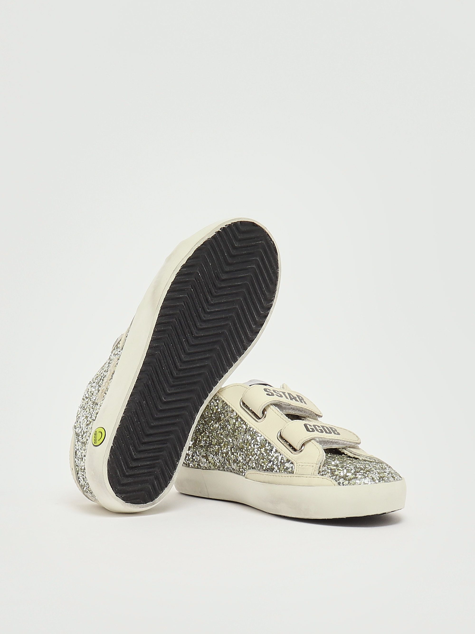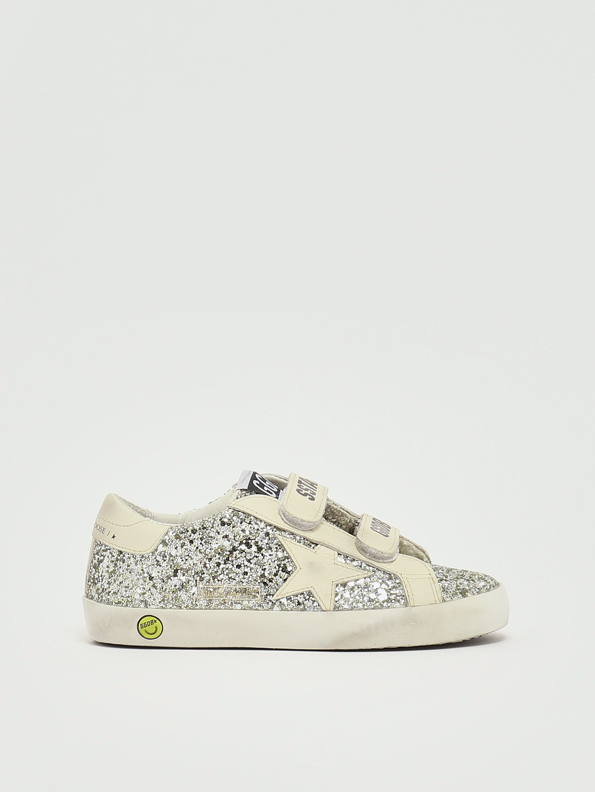 Die Schuhe von Golden Goose zeichnen sich durch ihren gelebten, ikonischen Stil aus, der ihnen einen unverwechselbaren Charakter und eine lässige Ausstrahlung verleiht. Sie zeichnen sich durch den seitlichen Stern und den absichtlich abgenutzten Effekt aus und verfügen über vollständig handgefertigte Details, die zu ihrer Vintage-Eleganz beitragen. Die aus Leder gefertigten Old School Turnschuhe verfügen über ein vollständig mit Pailletten besetztes Obermaterial und einen Riemenverschluss an der Vorderseite.