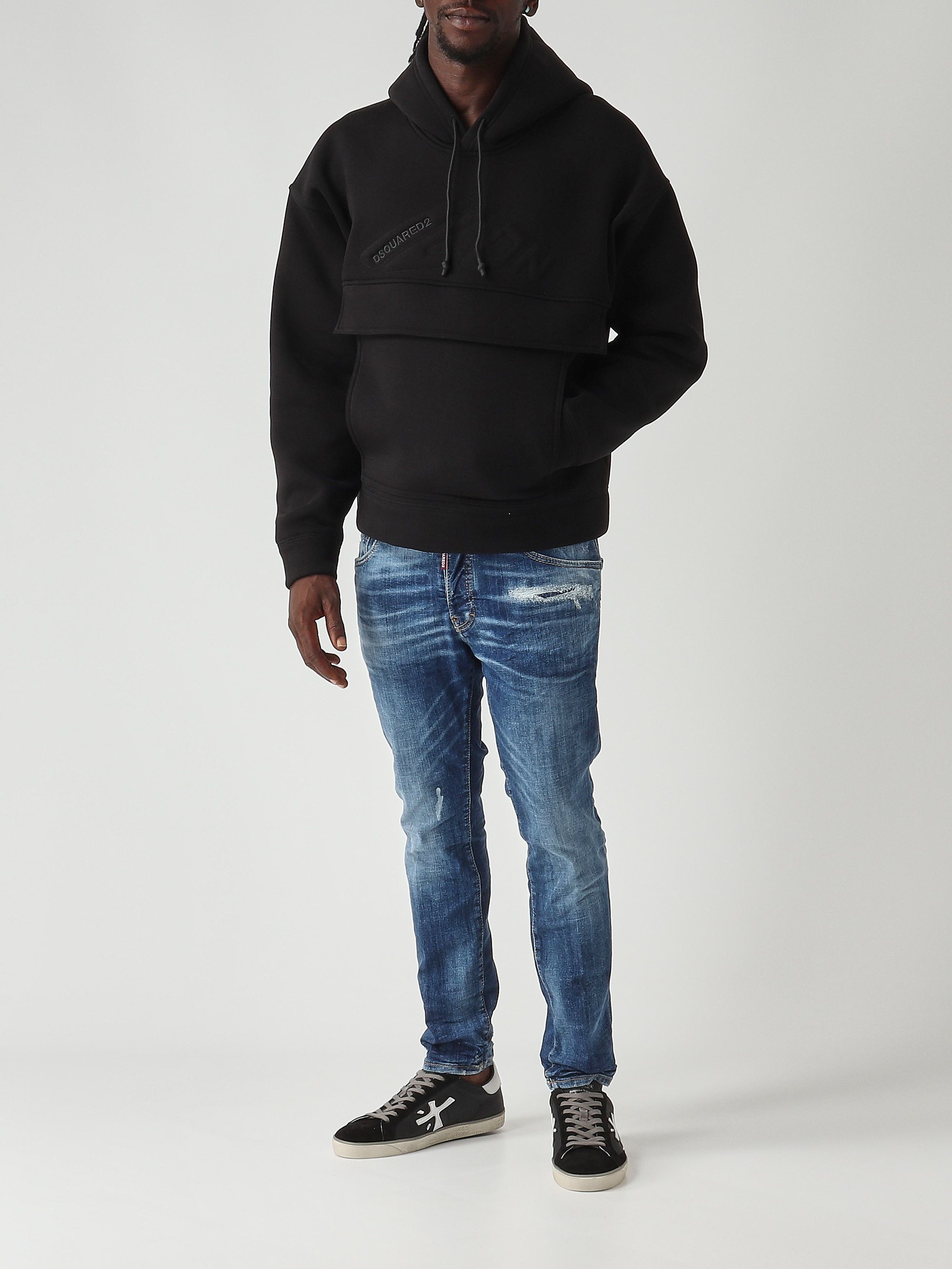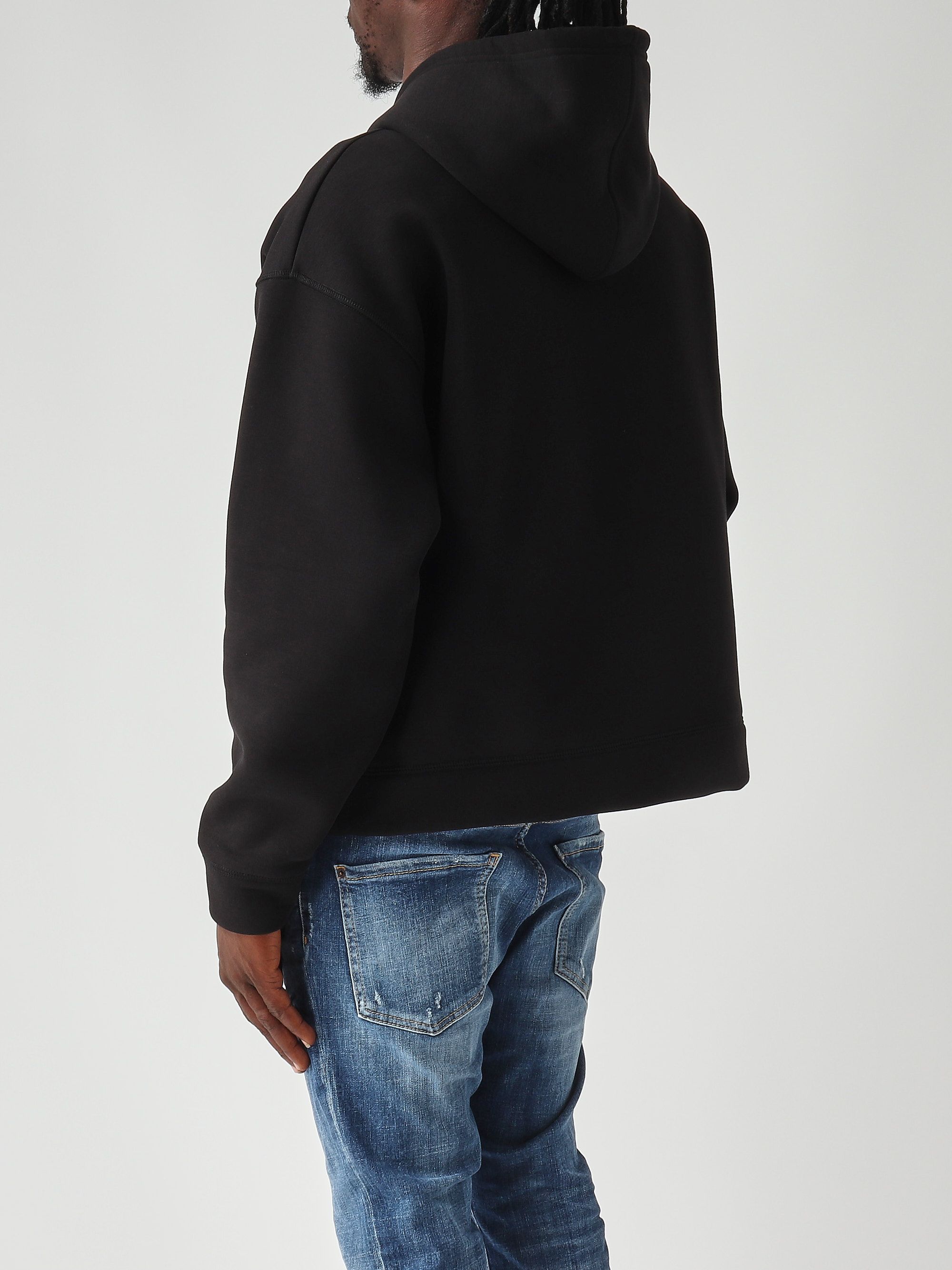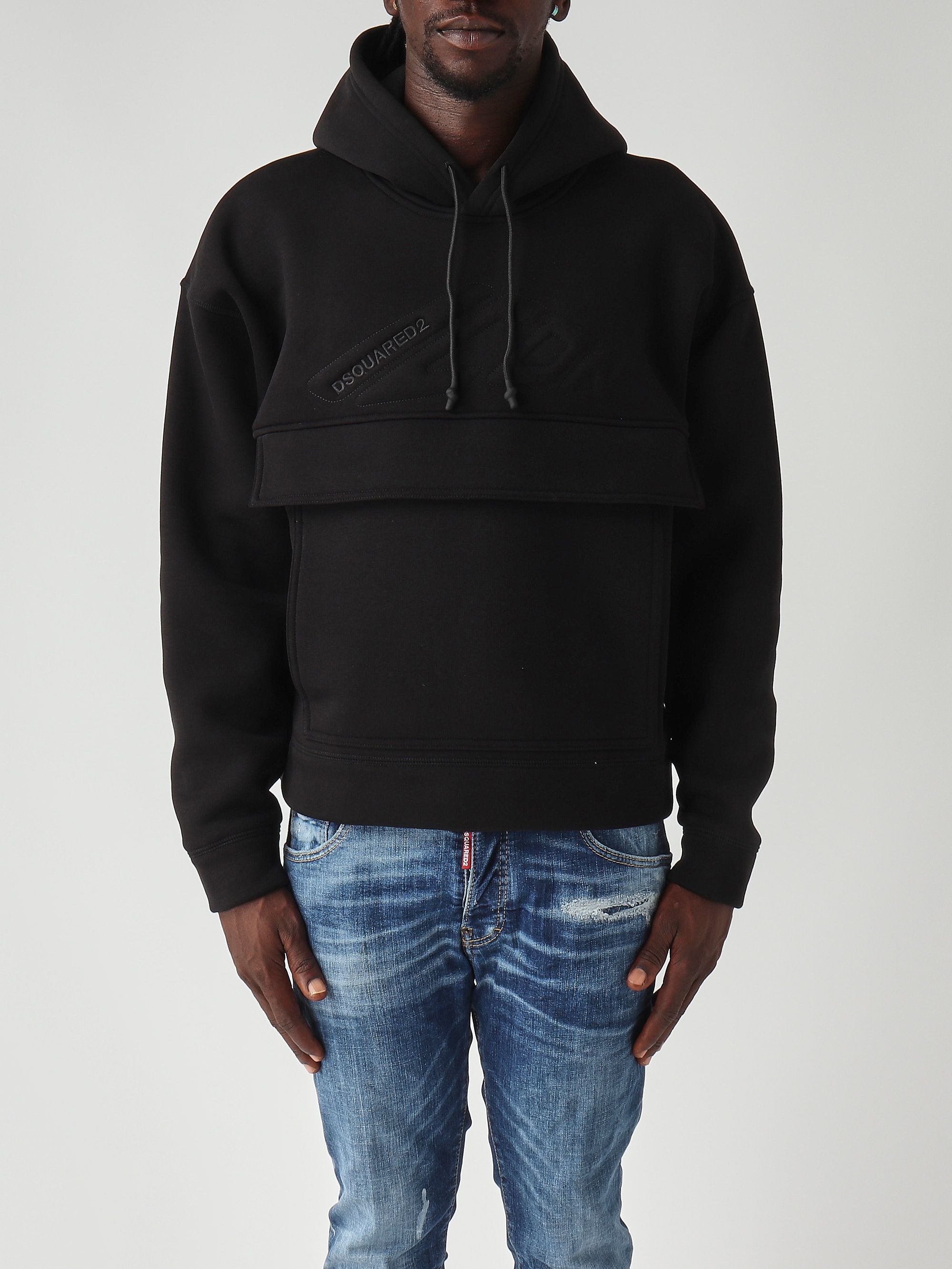 This loose-fit sweatshirt features a wide front flap at midriff, an adjustable drawstring hood, two front kangaroo pockets, and an embroidered Icon logo on the front.