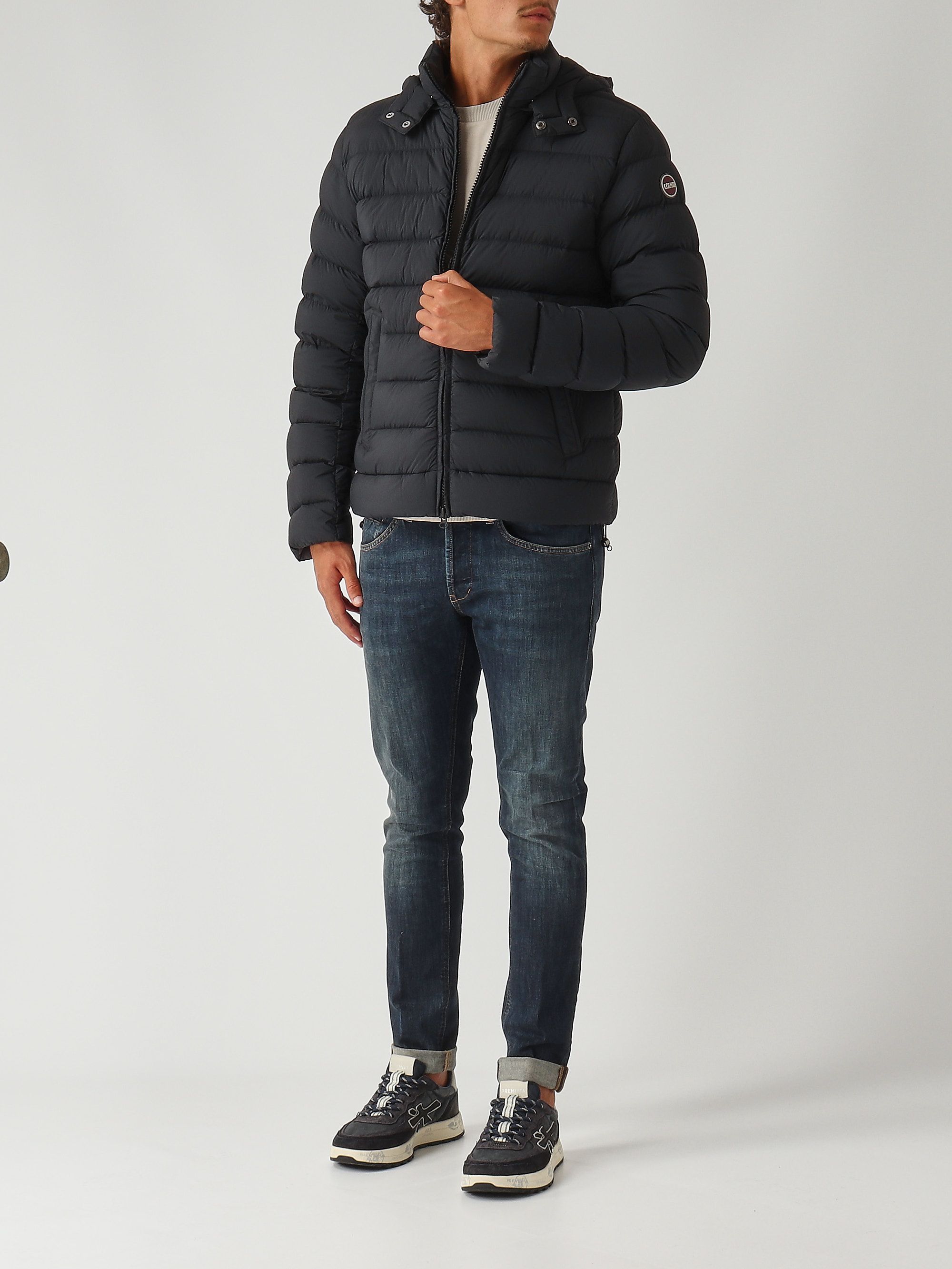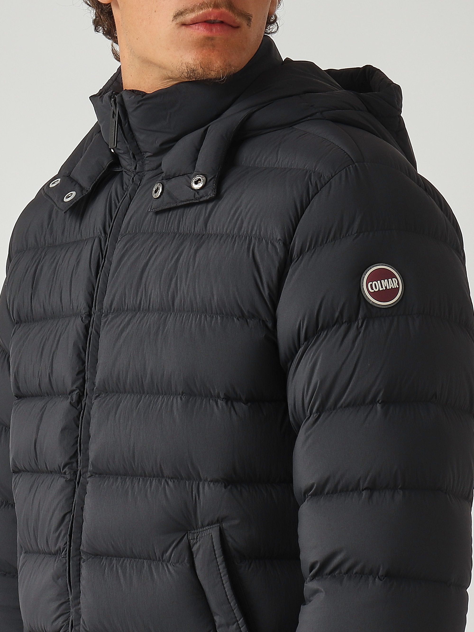 A timeless classic, this hooded down jacket is the perfect ally for winter: versatile and practical, it will elevate your outfits on every occasion. It features zippered side pockets, a drawstring at the bottom to adjust the fit, a zip closure, a removable hood, and a natural feather filling that provides the ideal warmth for cold climates and advanced heat insulation. The fabric also boasts a water-repellent V.DUV treatment.