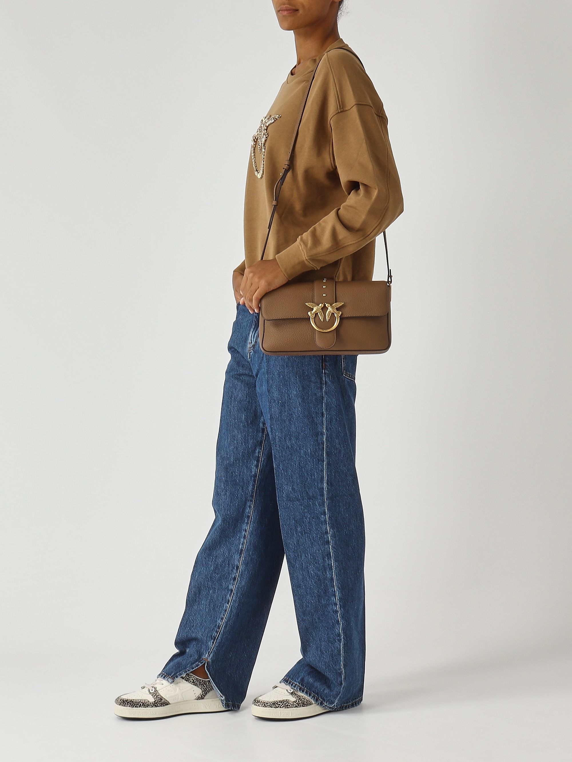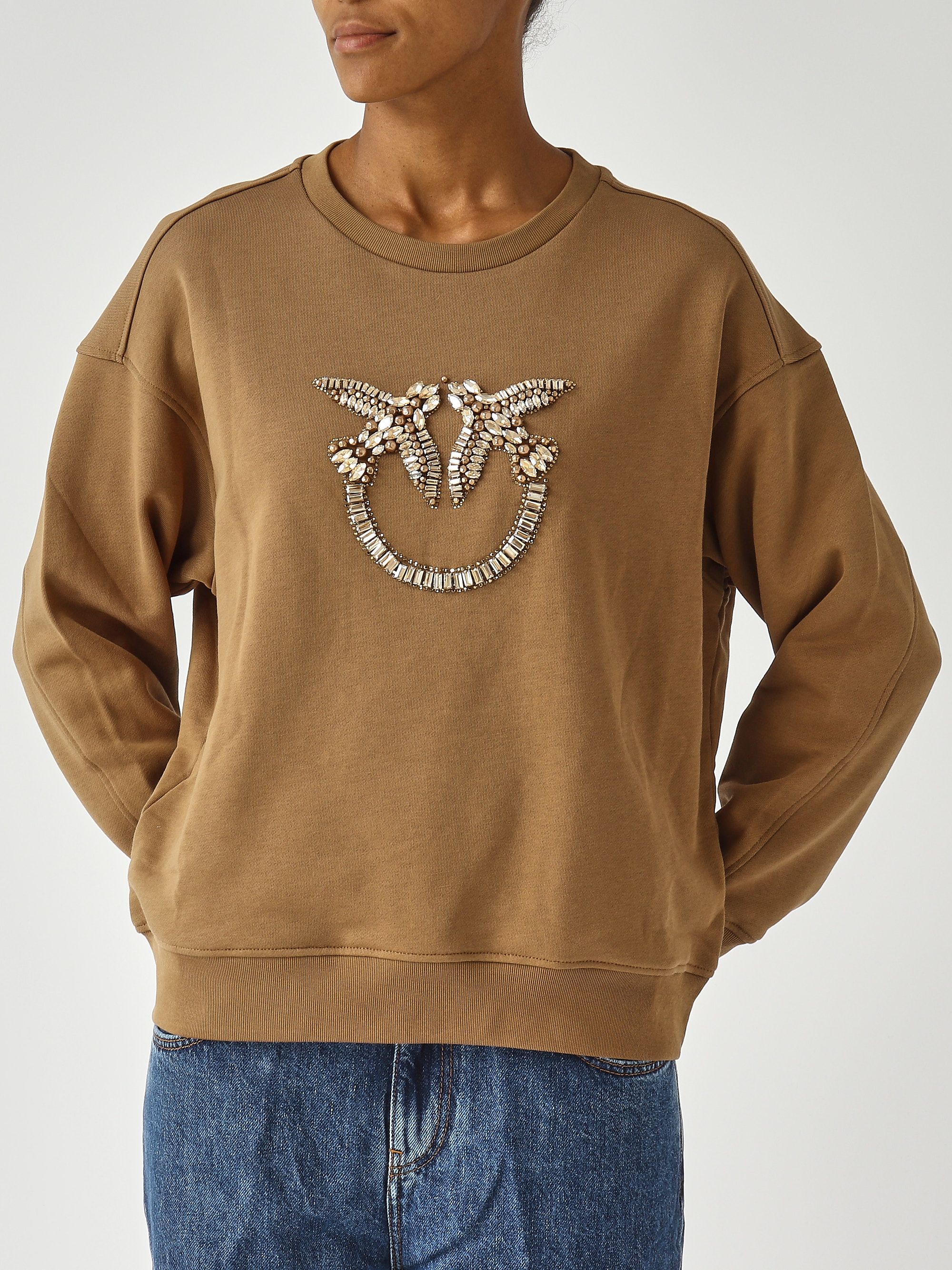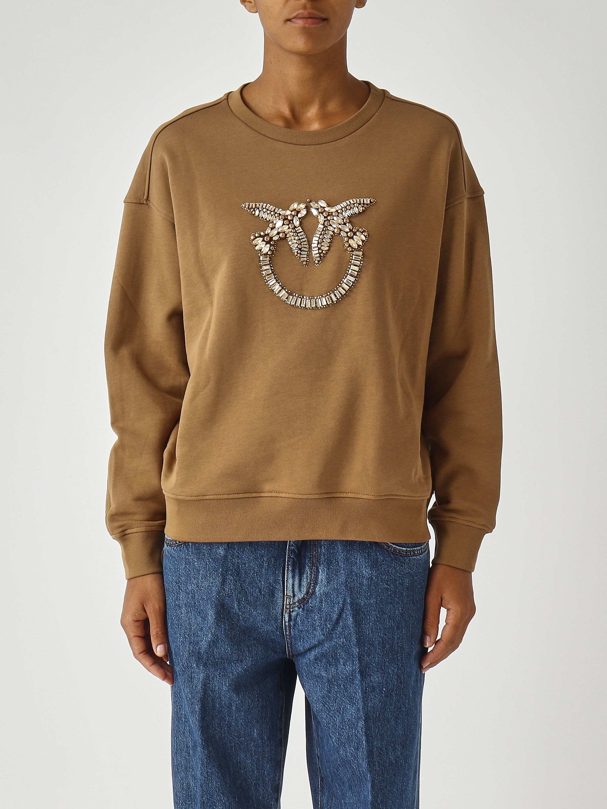 Ideal for casual days, this sweatshirt features a hand-made Love Birds logo embroidery at the center chest hand-embroidered using beads, baguette-cut crystal chains, and rhinestones of various shapes.