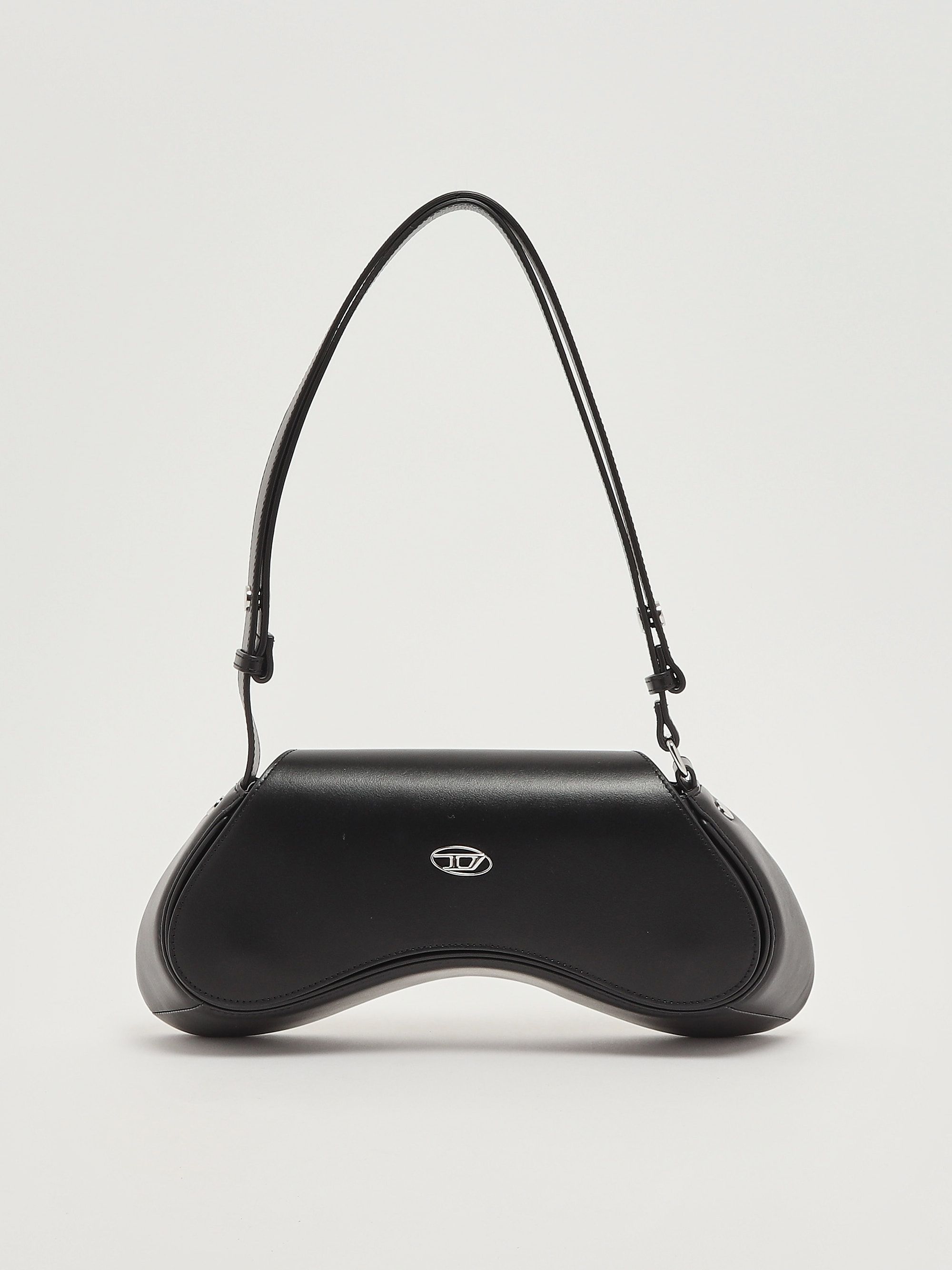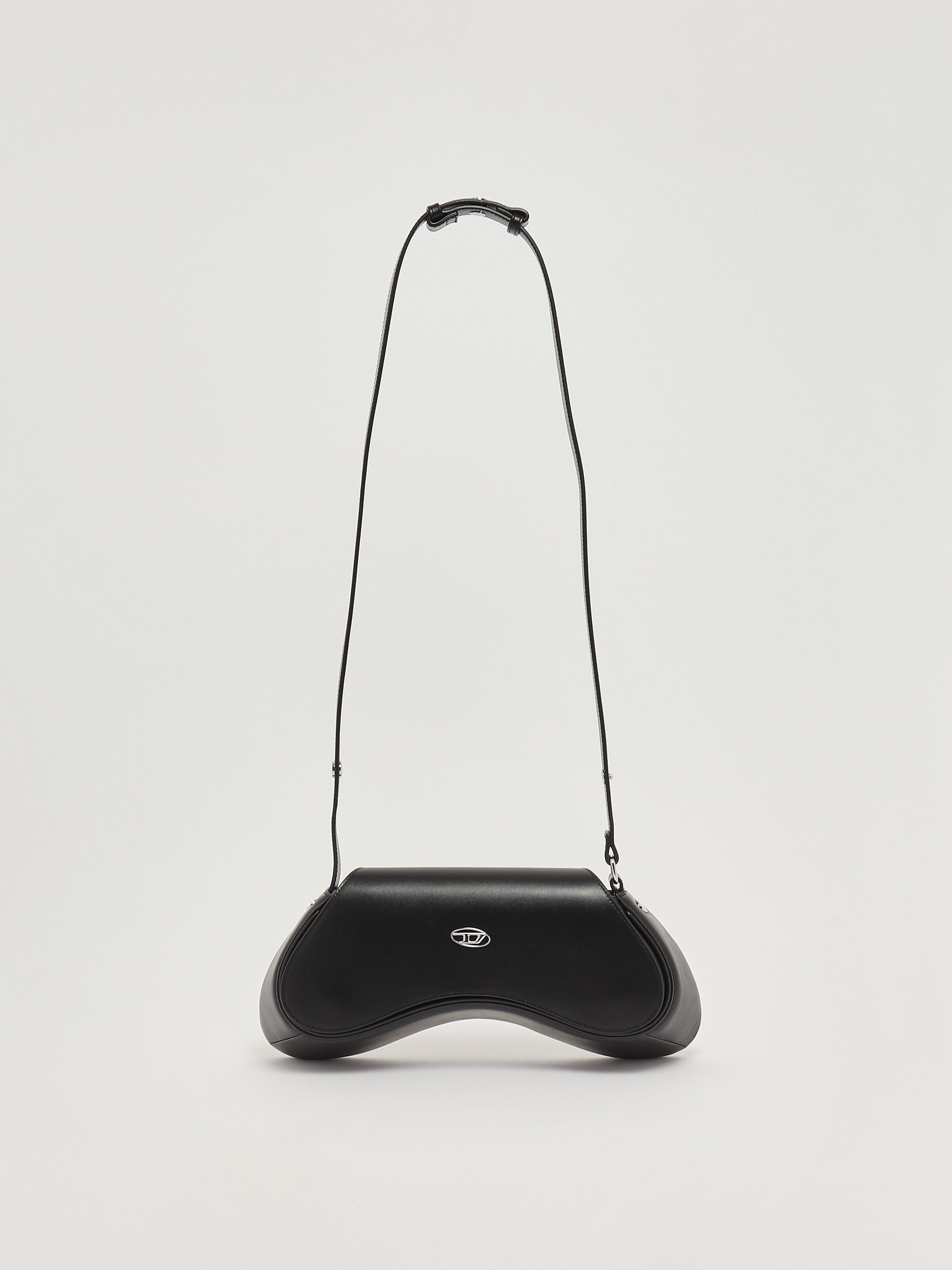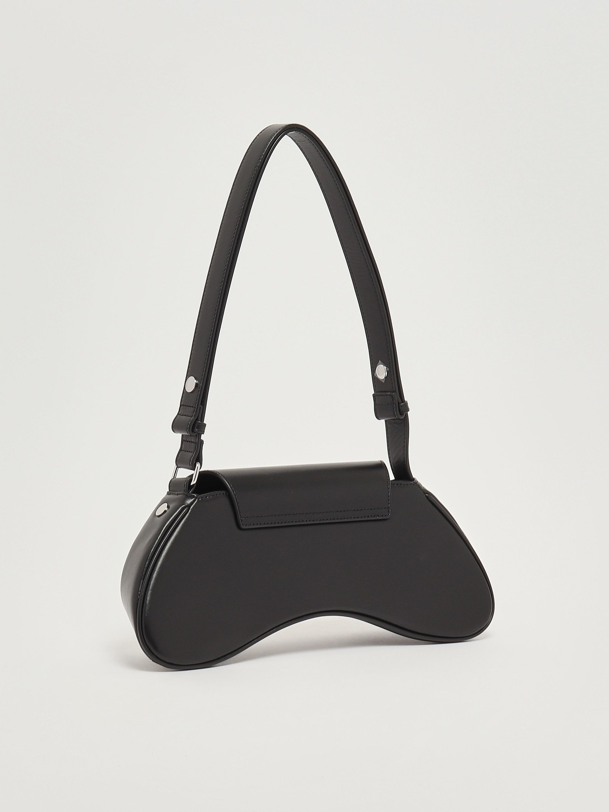 Unique in its kind, the structured design of this bag resembles a joystick (a feature from which it takes its name Play). Made from leather with a semi-glossy finish, it comes with an adjustable built-in shoulder strap, a flap and magnetic button closure, and an Oval logo detail on the front.