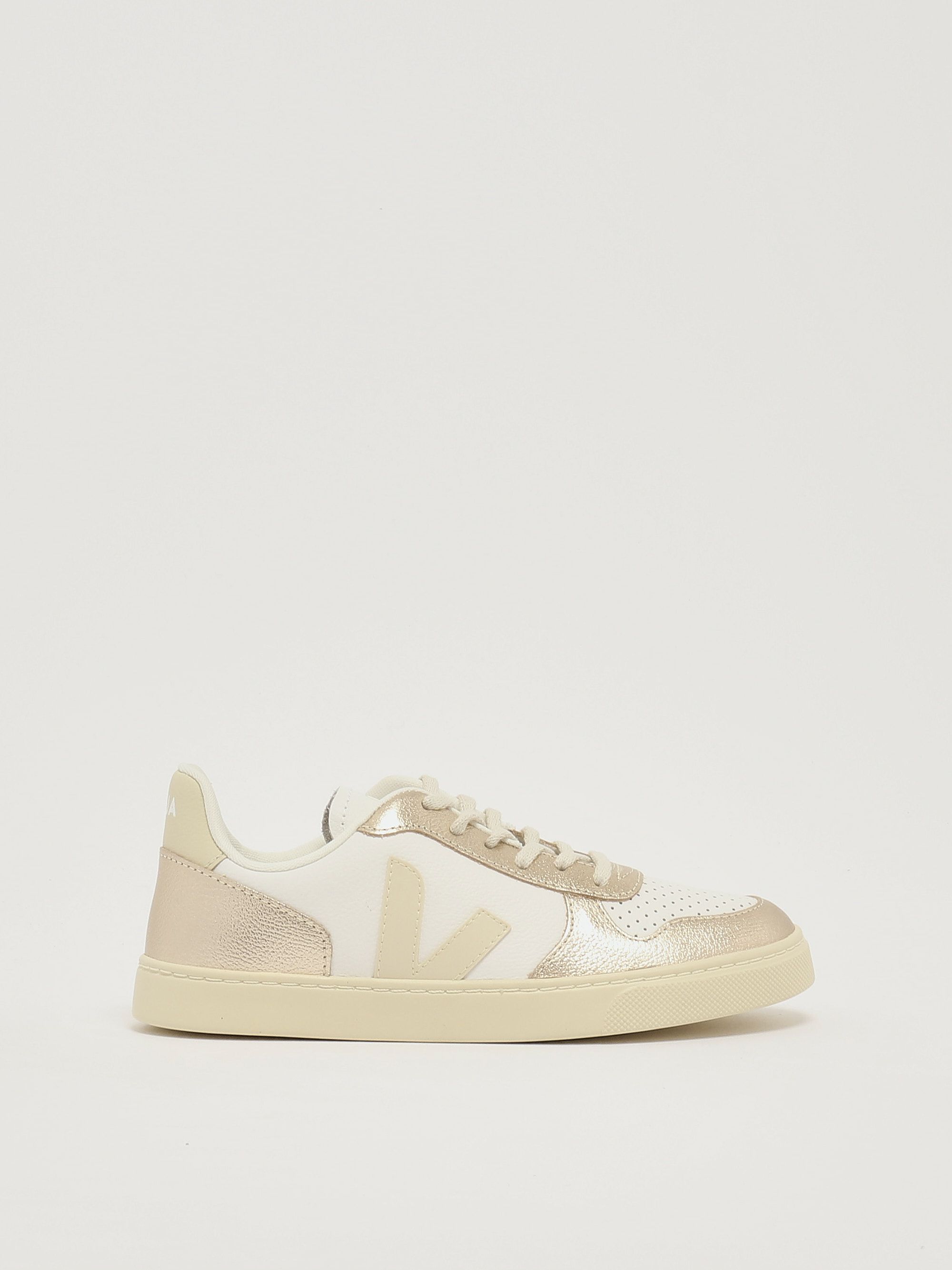 Trendy yet environmental friendly, the Small V-10 sneakers are drenched in detail that make them irresistible and incredibly glamorous. Made from chrome-free leather, they feature laminated leather details for a mirrored effect, a front lace-up closure, and a low but not flat sole for unparalleled comfort.