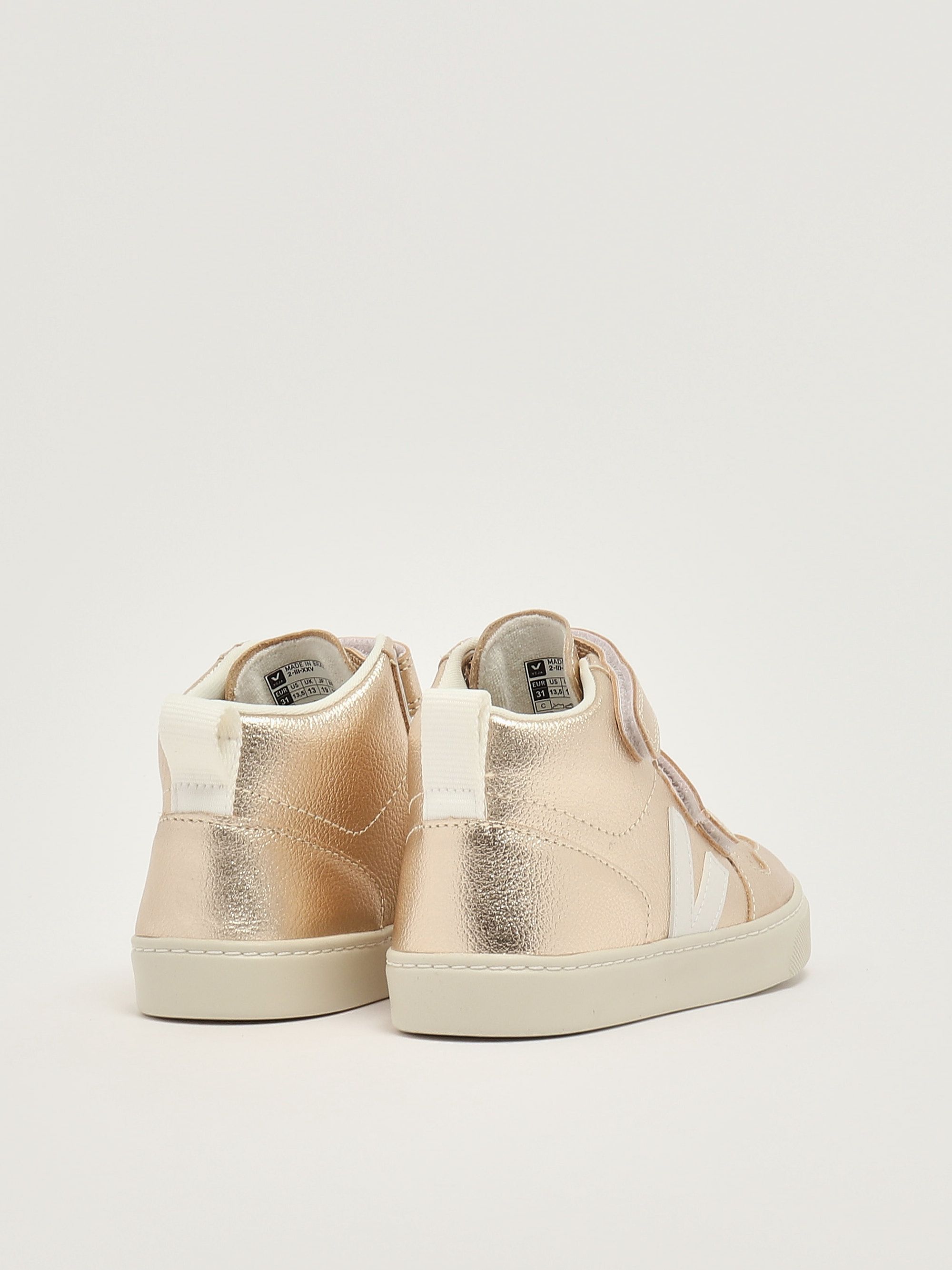 Made from laminated grained leather, these sneakers feature a front closure with straps up to the ankle, a low but not flat sole, and a perforated round toe.