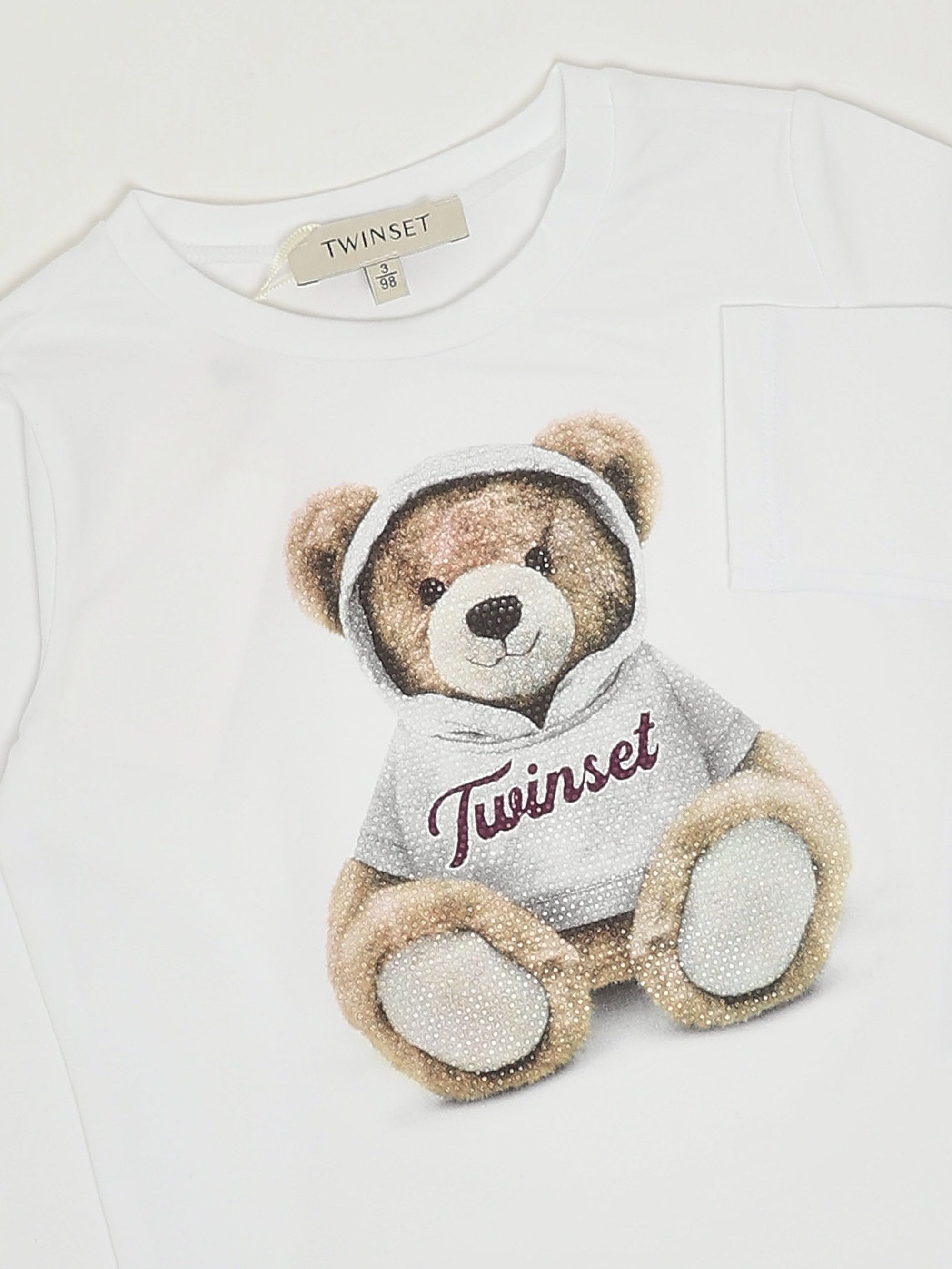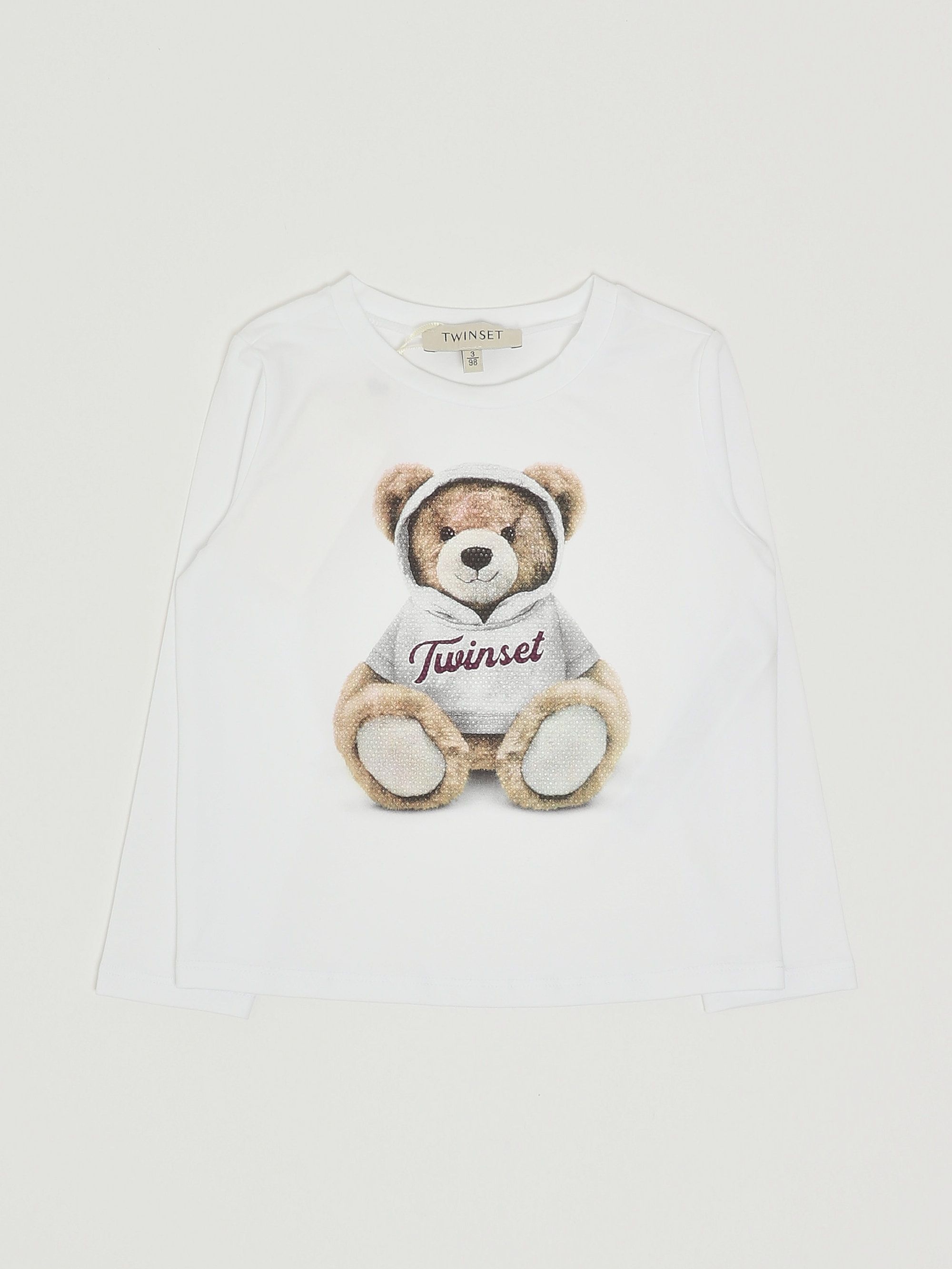 This long-sleeved crew-neck T-shirt is made from cotton with a Teddy Bear print and logo on the front.