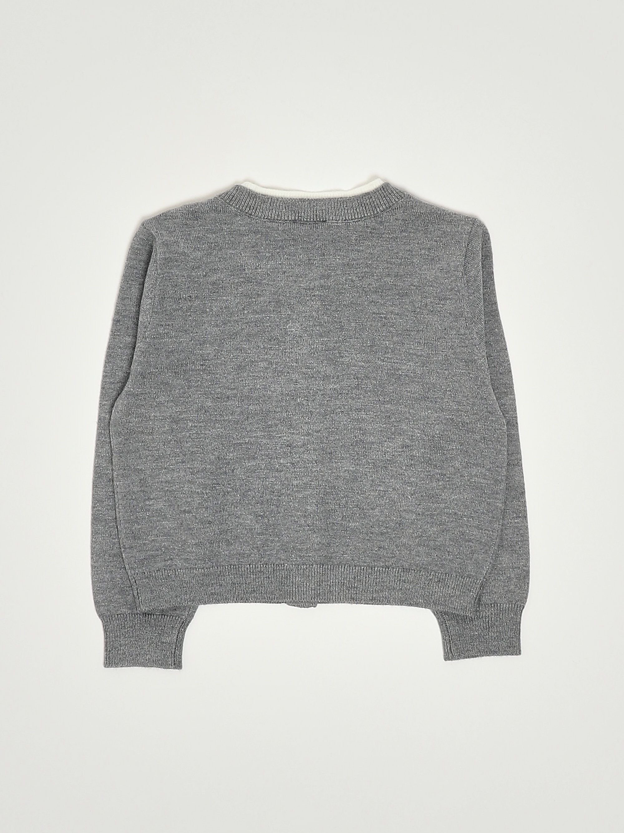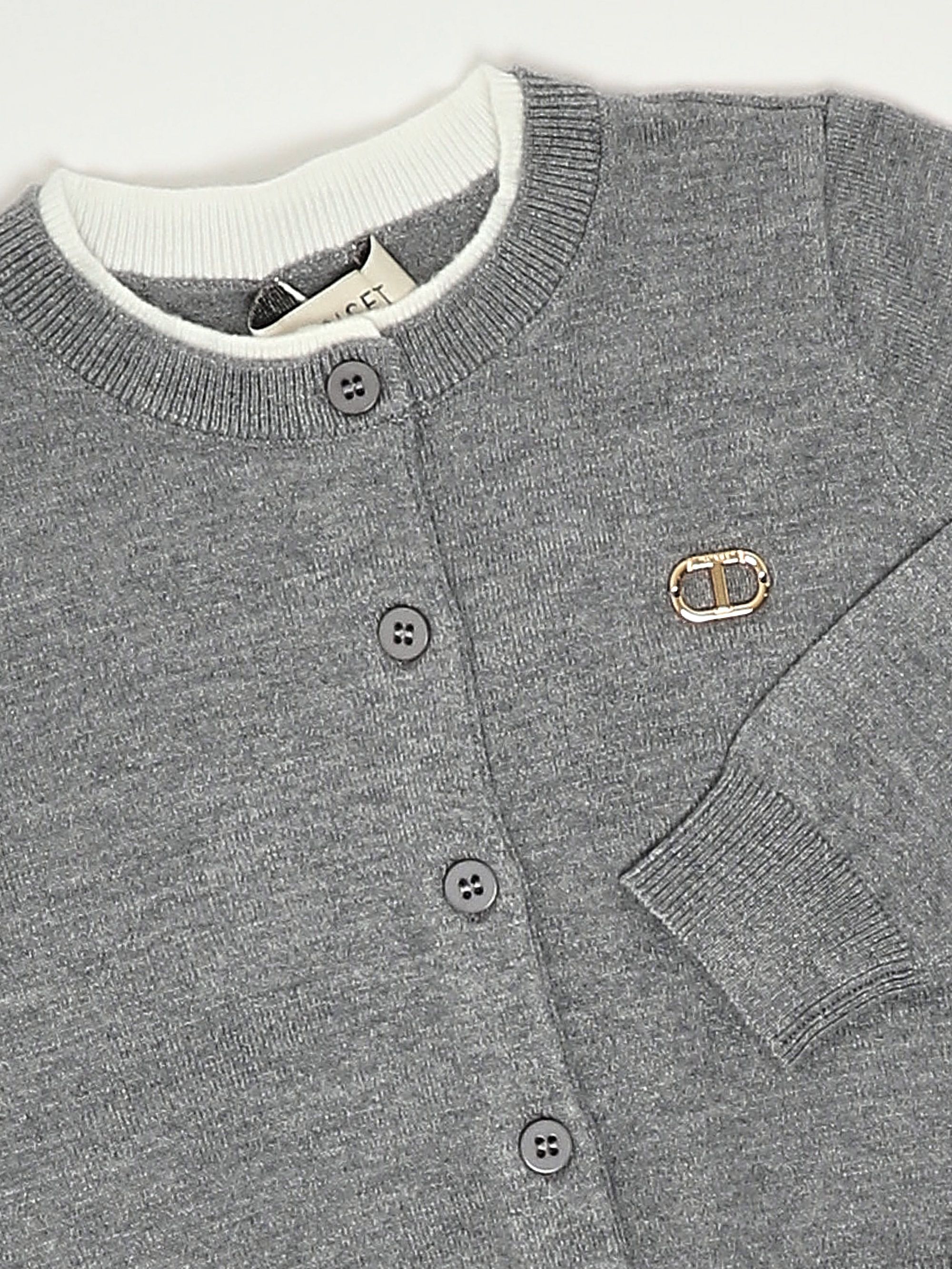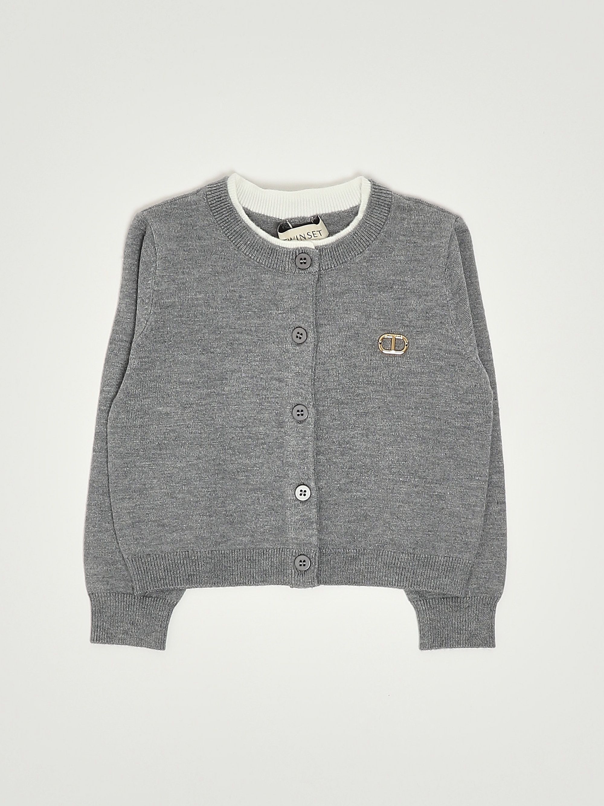Made from a viscose blend, this cardigan features a button closure, ribbed hem, crew neck and cuffs, a gold metal logo detail on the left chest, and a collar with contrasting-color trim.