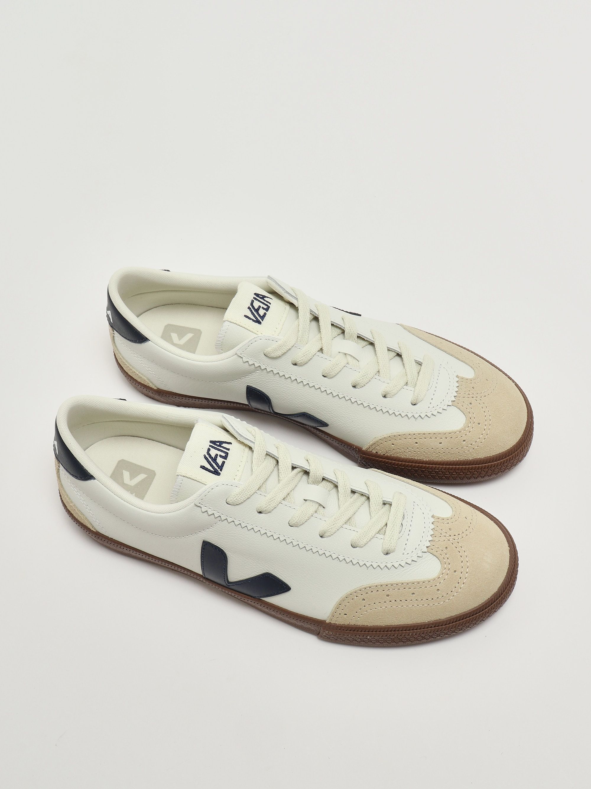 Made from O.T. (Organic Traced) leather, the Volley sneakers are inspired by Brazilian volleyball shoes from the 1970s. They feature super stylish details, including a front closure with organic cotton laces, a perforated suede round toe, contrasting color patches, and a chocolate-toned Eva rubber sole providing a comfortable, cushioned fit.