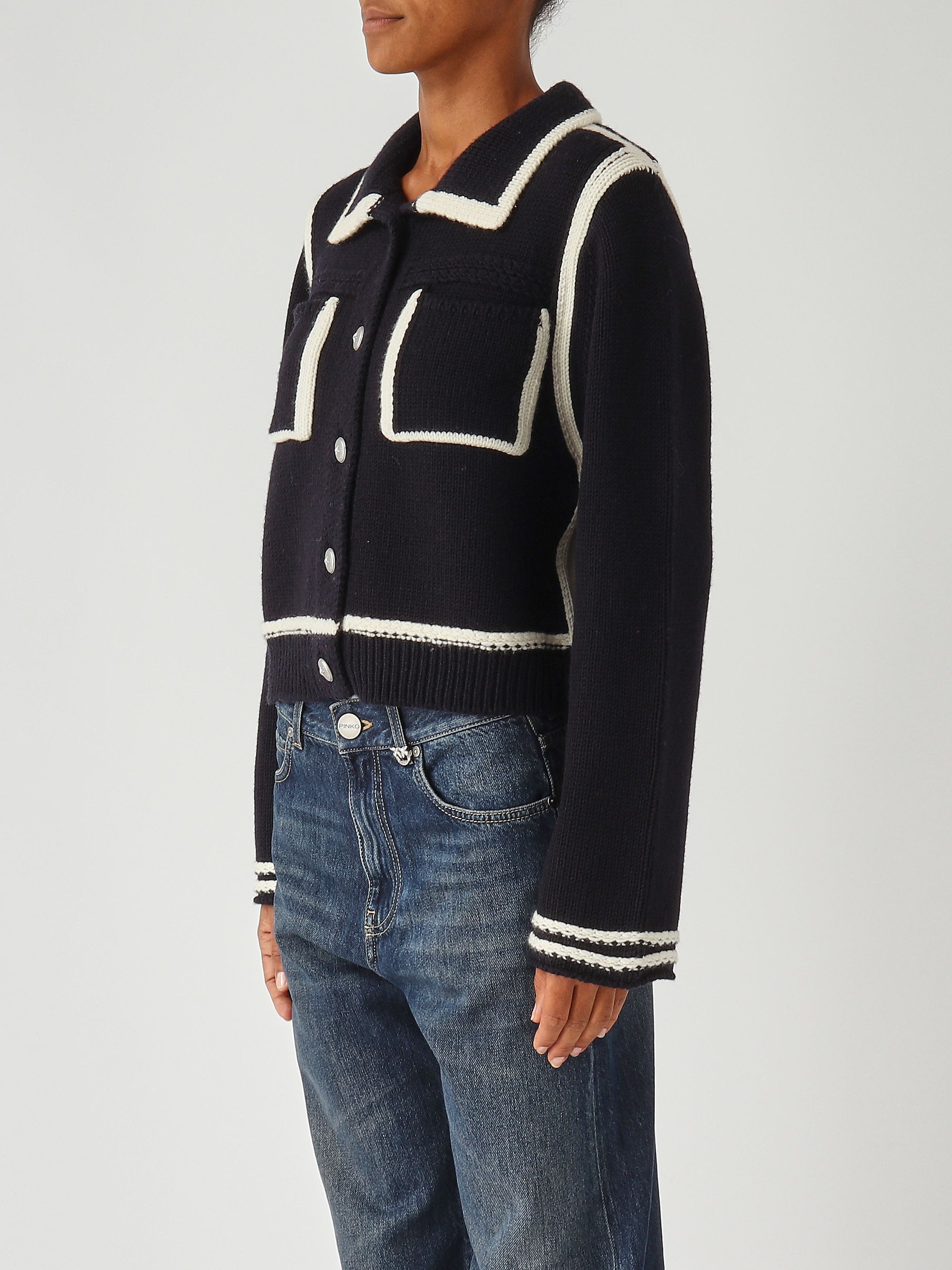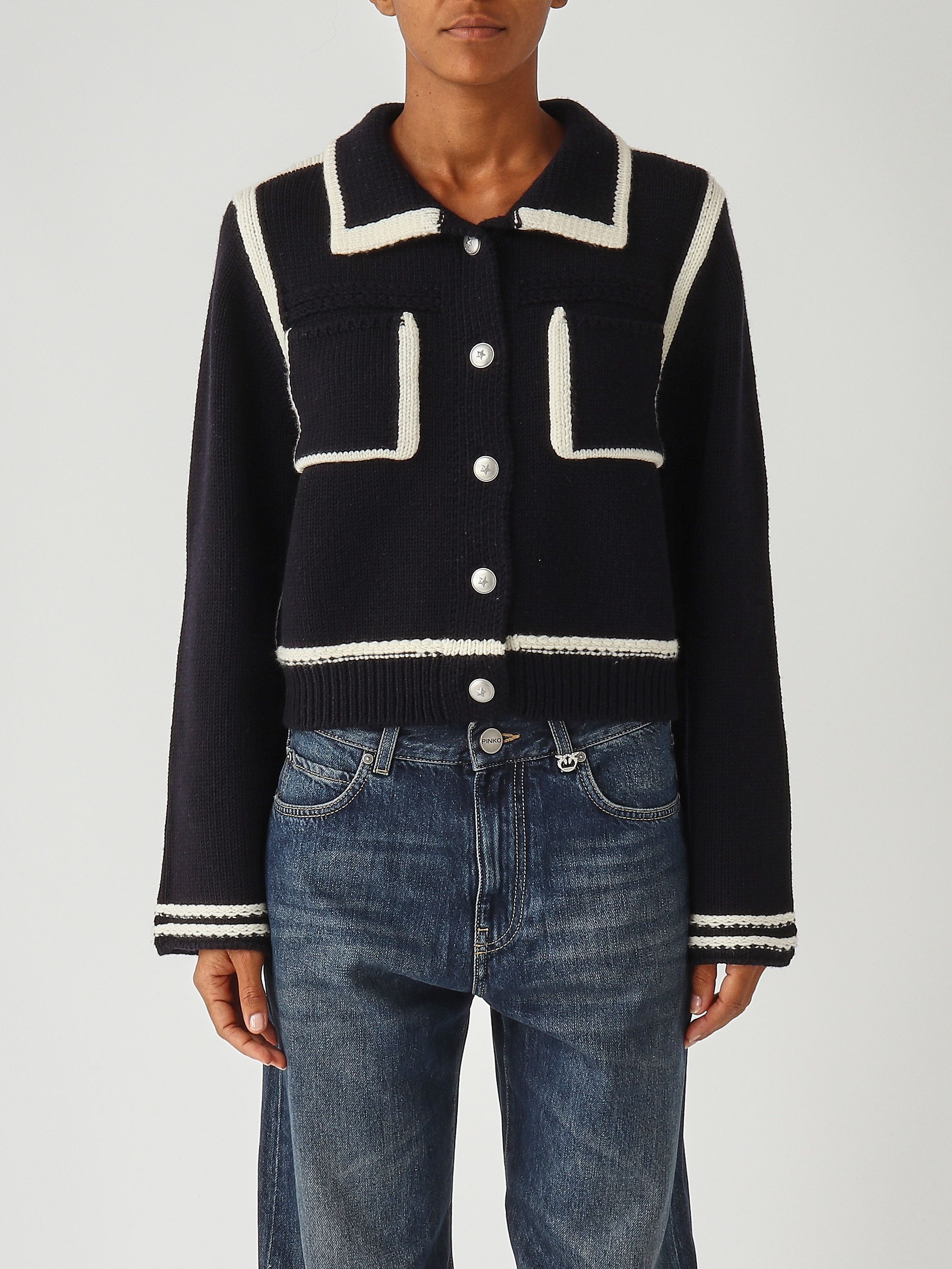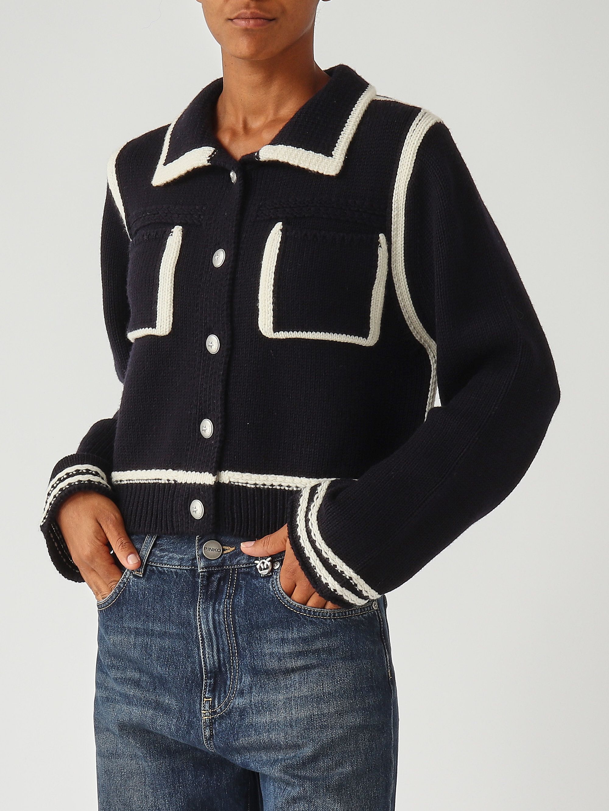Pratique, original et tendance, ce cardigan de style preppy est fabriqué en douce laine mérinos. Il se démarque par un fil contrasté qui met en évidence les poignets, le carré, l'ourlet, le col et les poches avant.