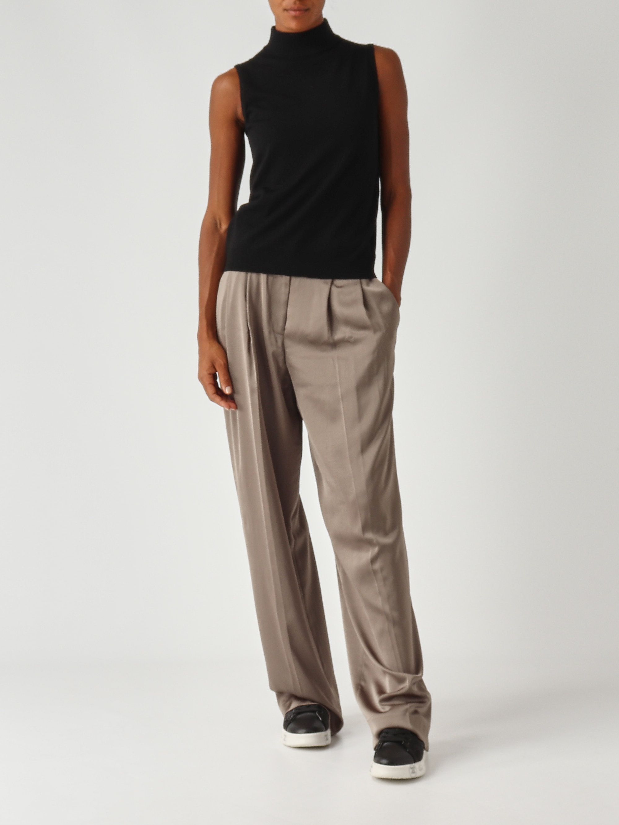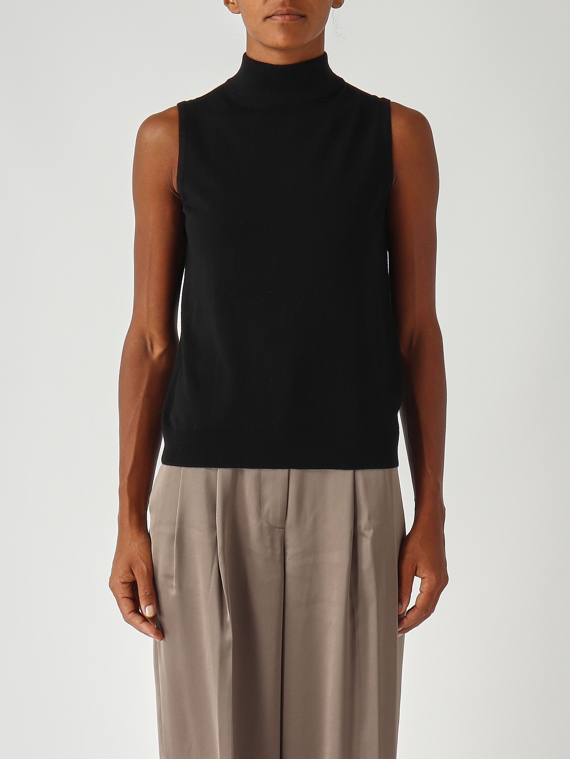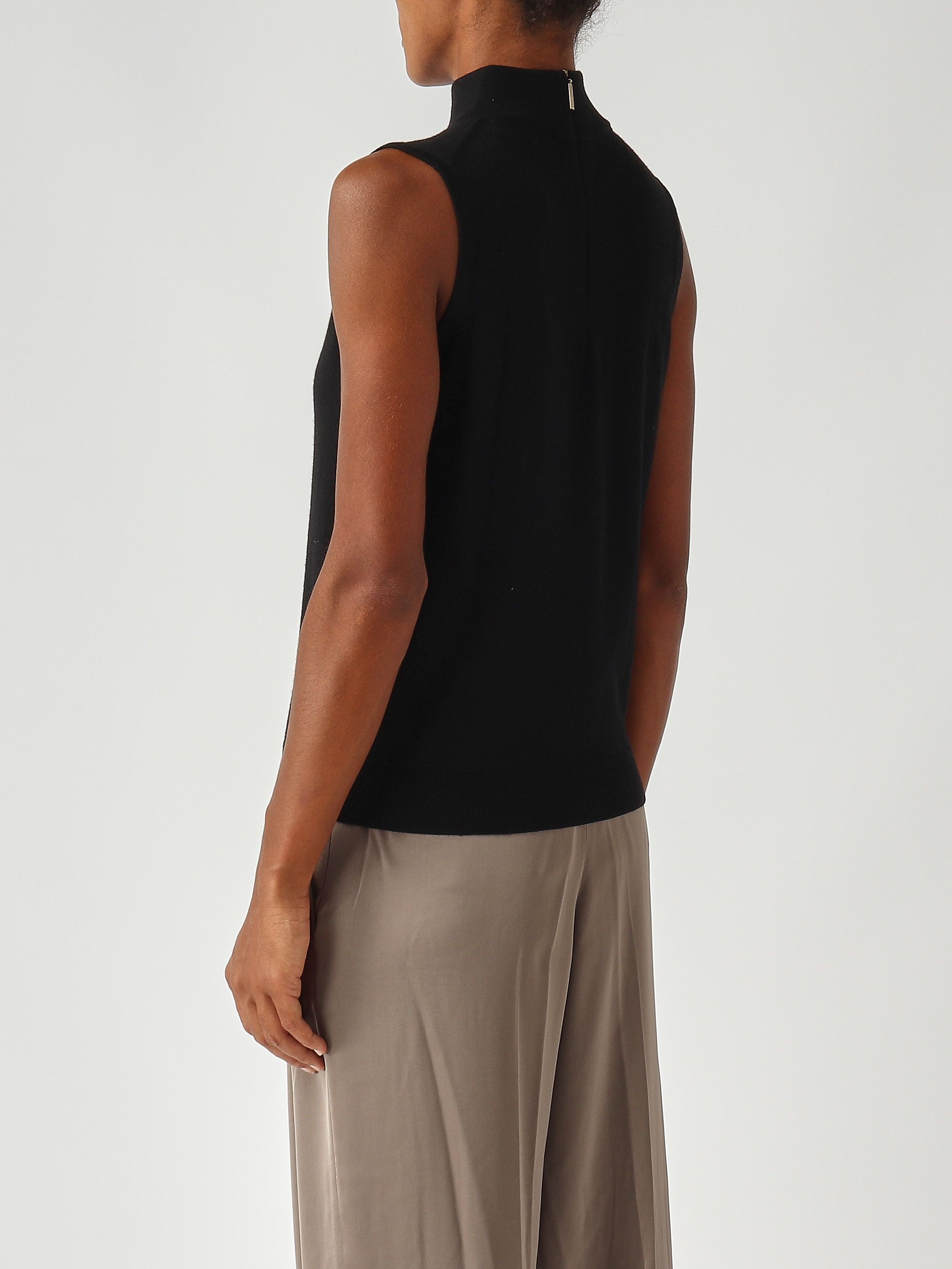 Les collections sont agrémentées de lignes épurées, coupes élégantes, mélange de classique et de moderne. Chaque pièce est issue de créations polyvalentes, idéales aussi bien pour la vie citadine que pour les escapades de luxe. Ce pull en laine mérinos sans manches présente un ourlet côtelé, une encolure fantaisie et une fermeture à glissière au dos.