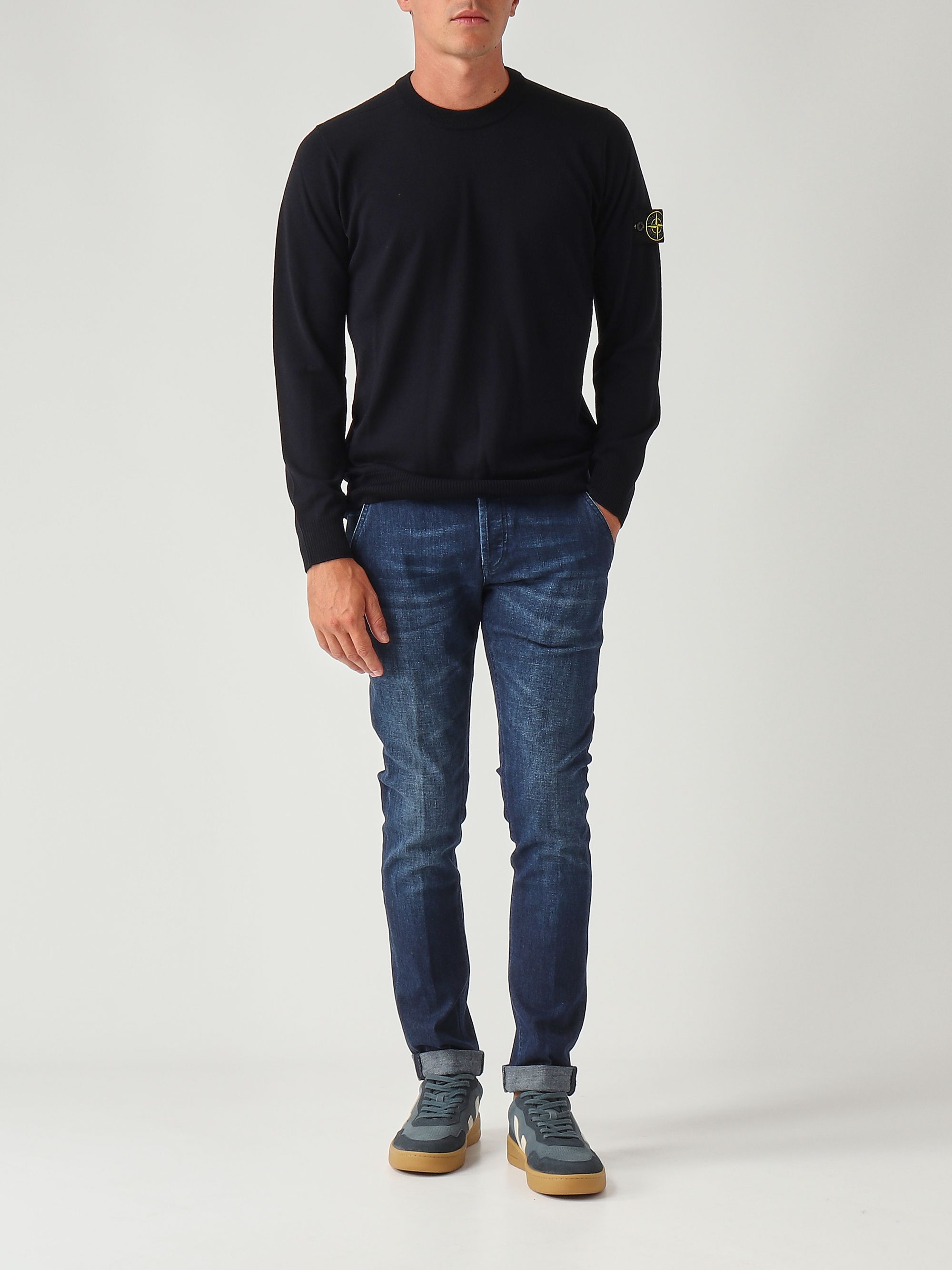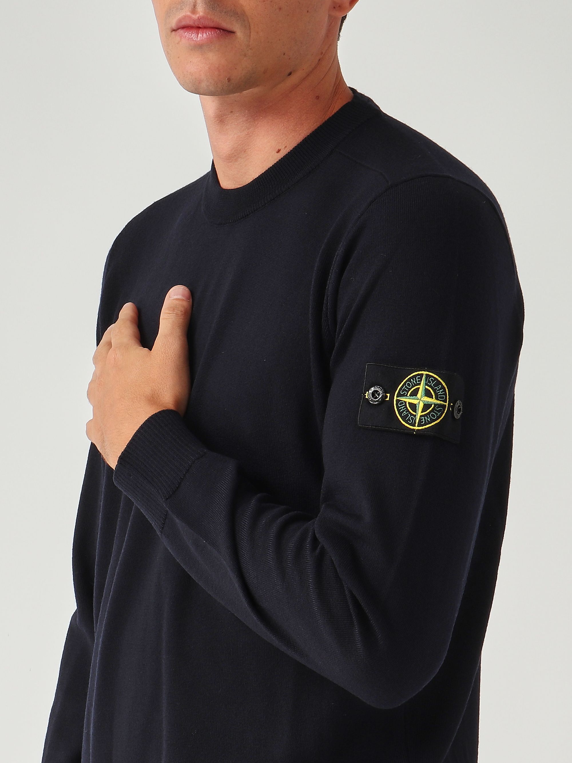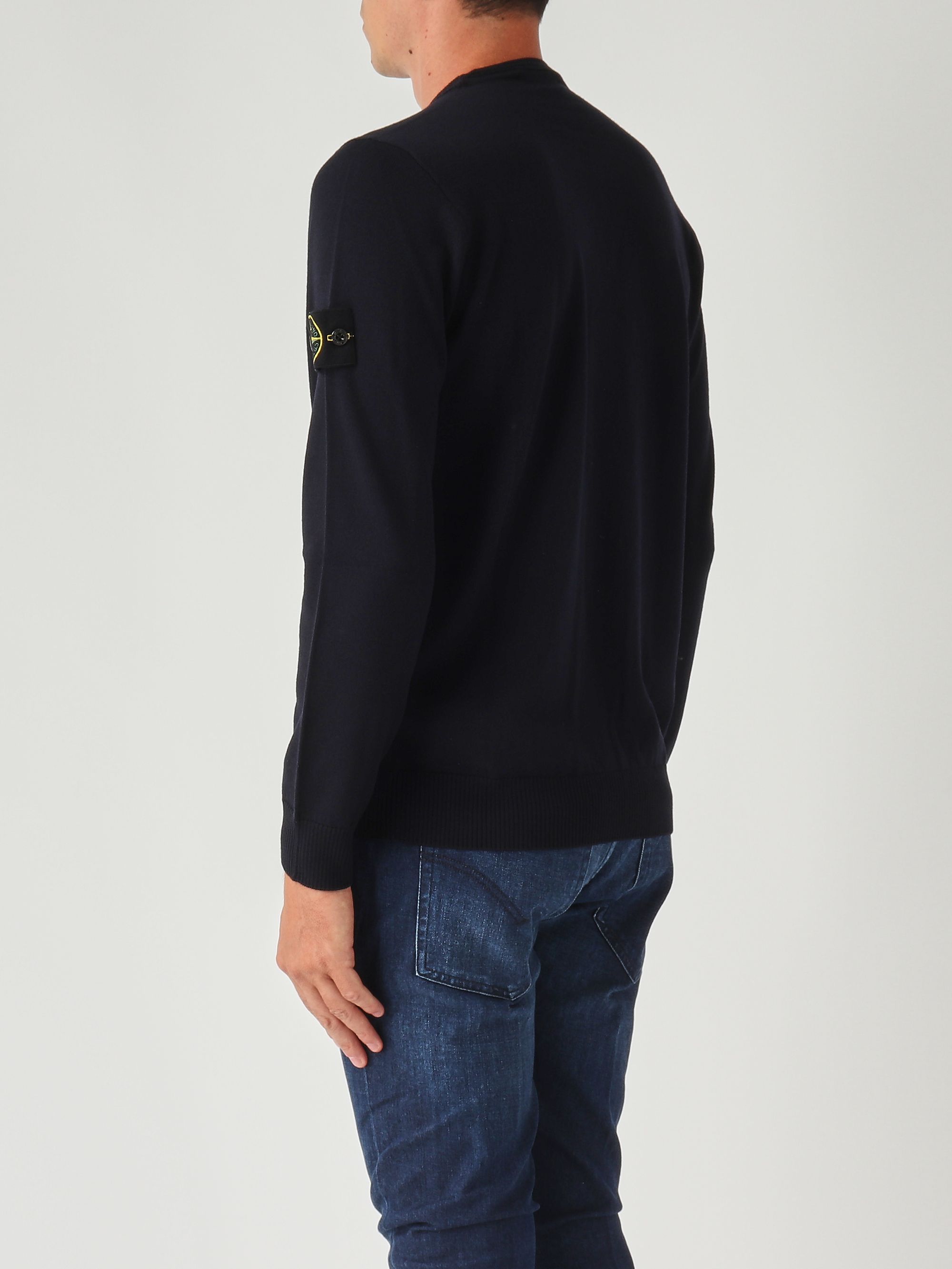 Confectionné en pure laine légère RWS (Responsible Wool Standard), ce pull affiche une jauge de 14, ce qui implique que le fil de laine utilisé est de très haute finesse. Il présente un col ras du cou, un ourlet, des poignets et un col côtelés, ainsi qu'un badge Stone Island sur la manche gauche.