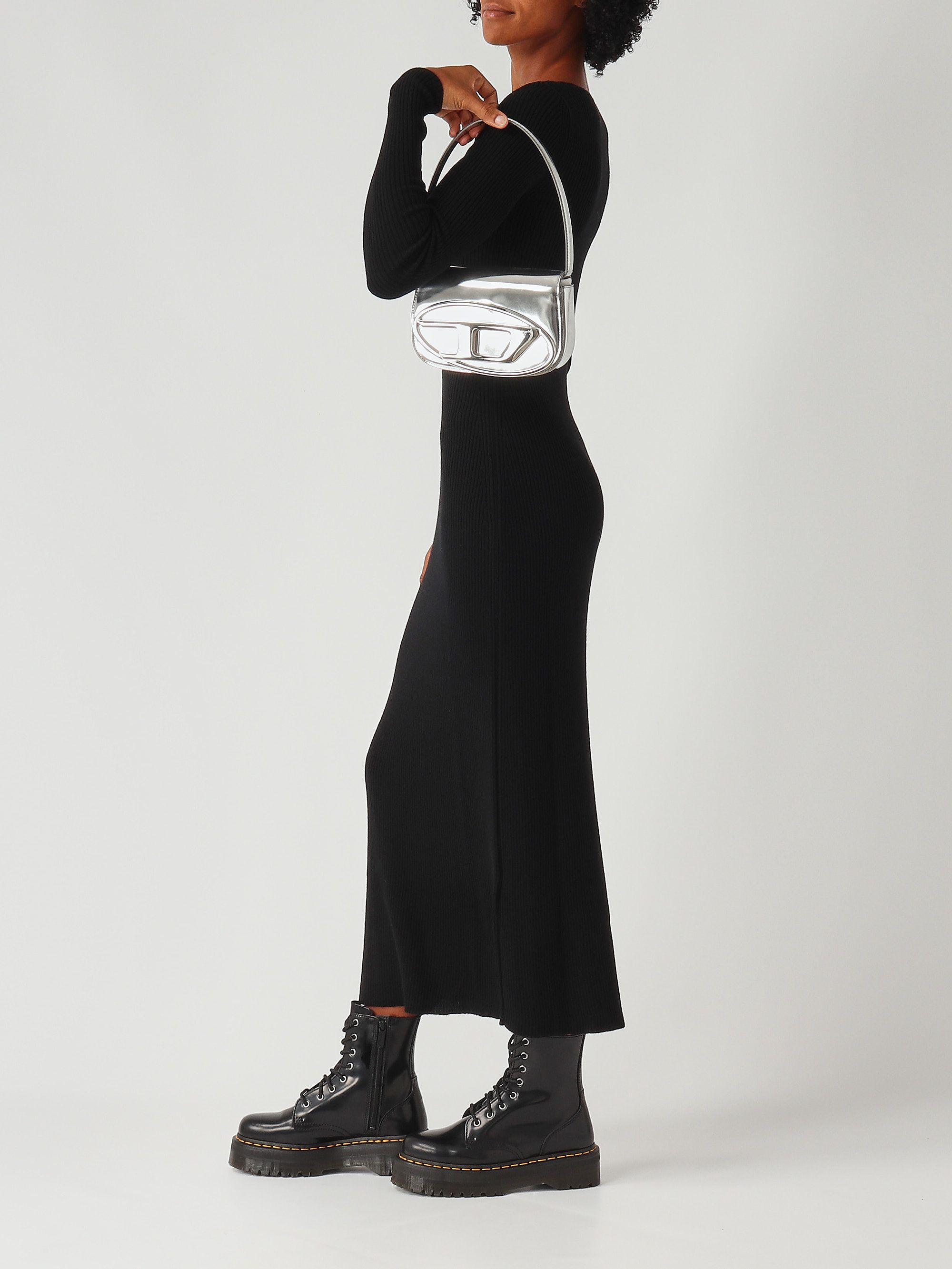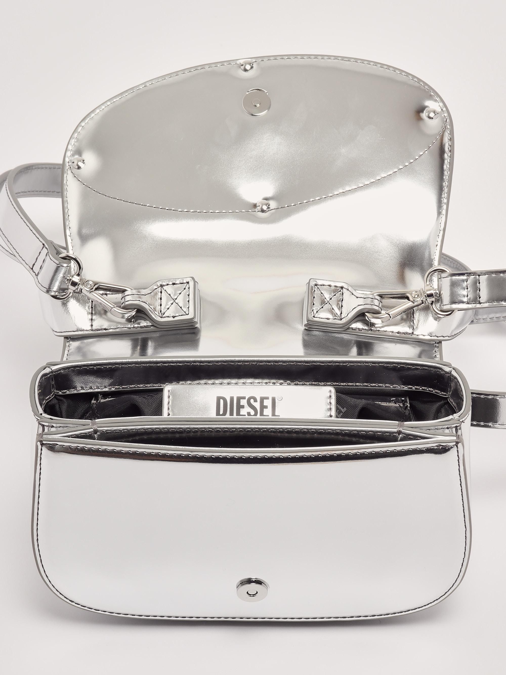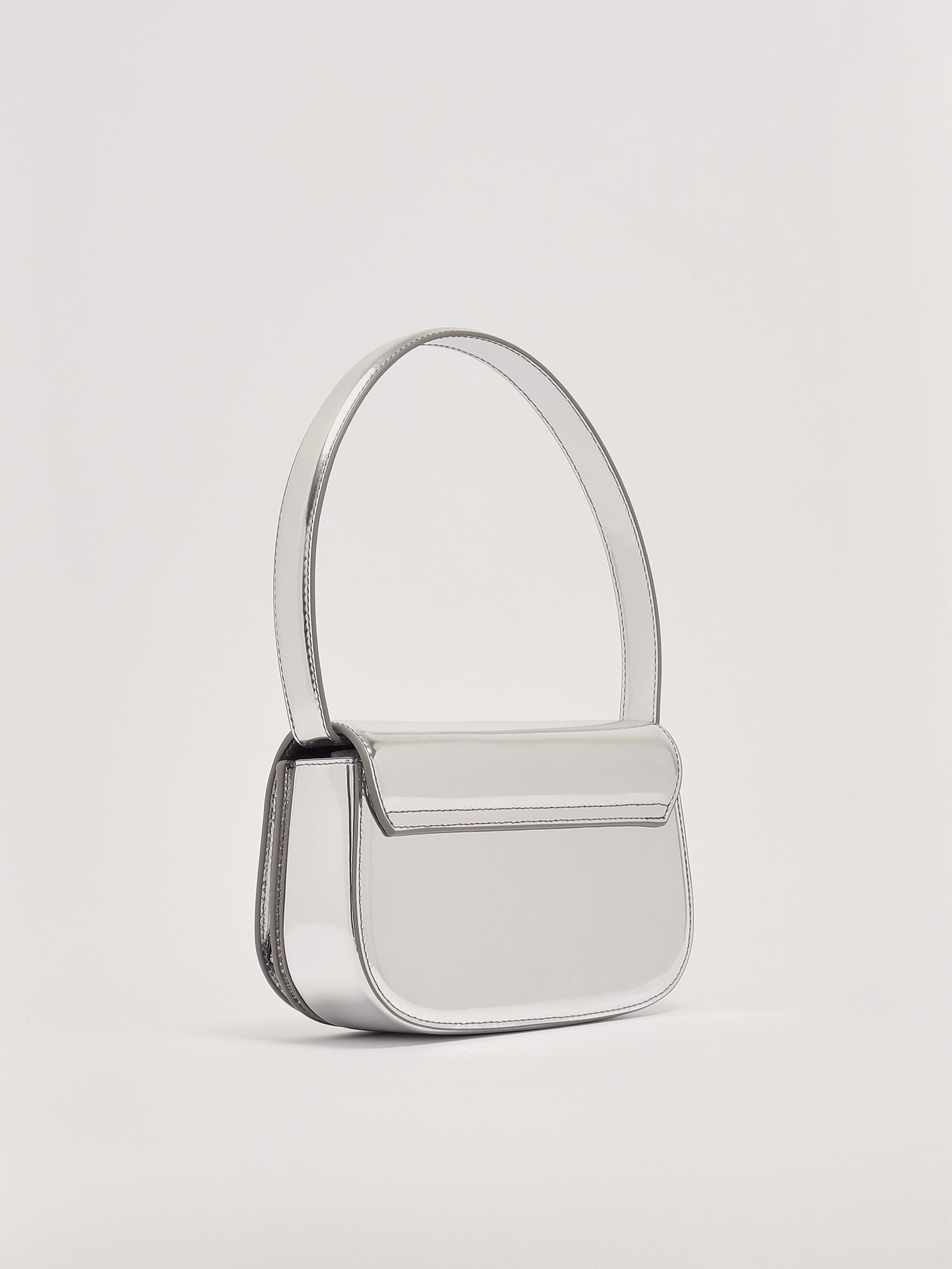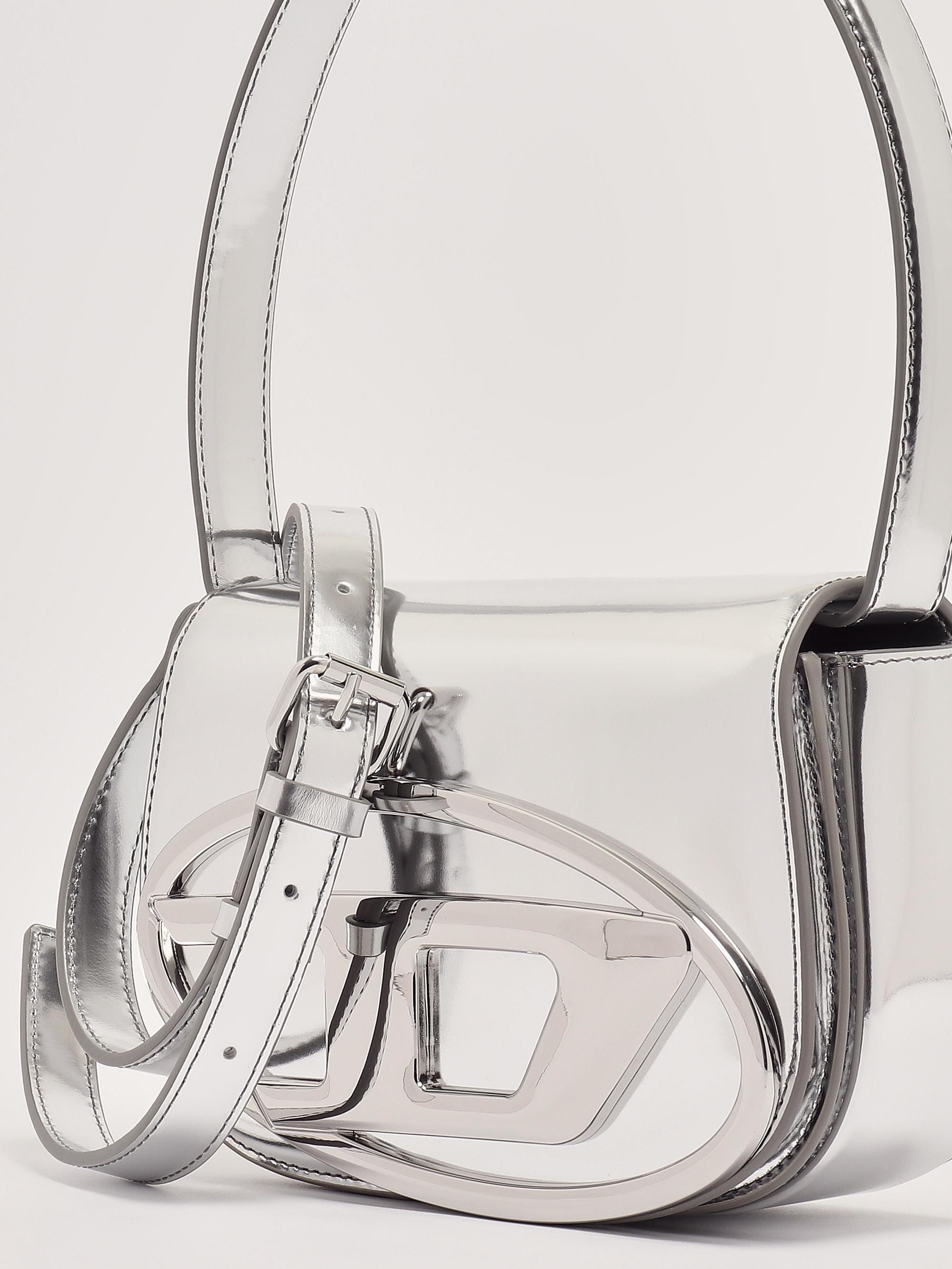 Le sac 1DR est conçu comme un accessoire compact mais à fort impact visuel. Confectionné en cuir avec une finition laminée/métallisée qui capte la lumière, il présente des détails qui reflètent les symboles de la marque : une fermeture à rabat avec bouton magnétique, une plaque métallique émaillée avec le logo « Oval D », symbole distinctif de Diesel, une large anse et une bandoulière amovible pour offrir davantage d’options de style et de port.