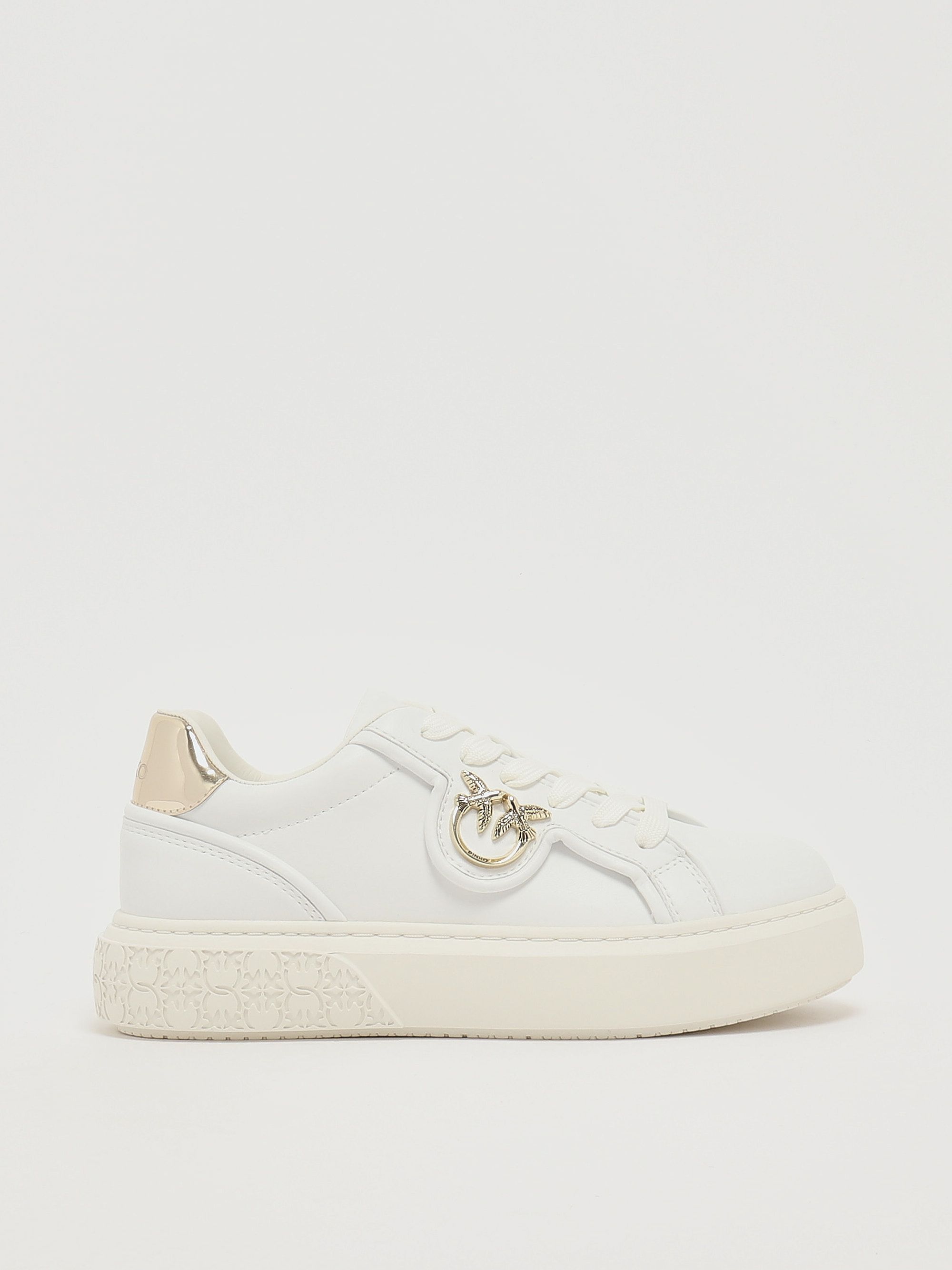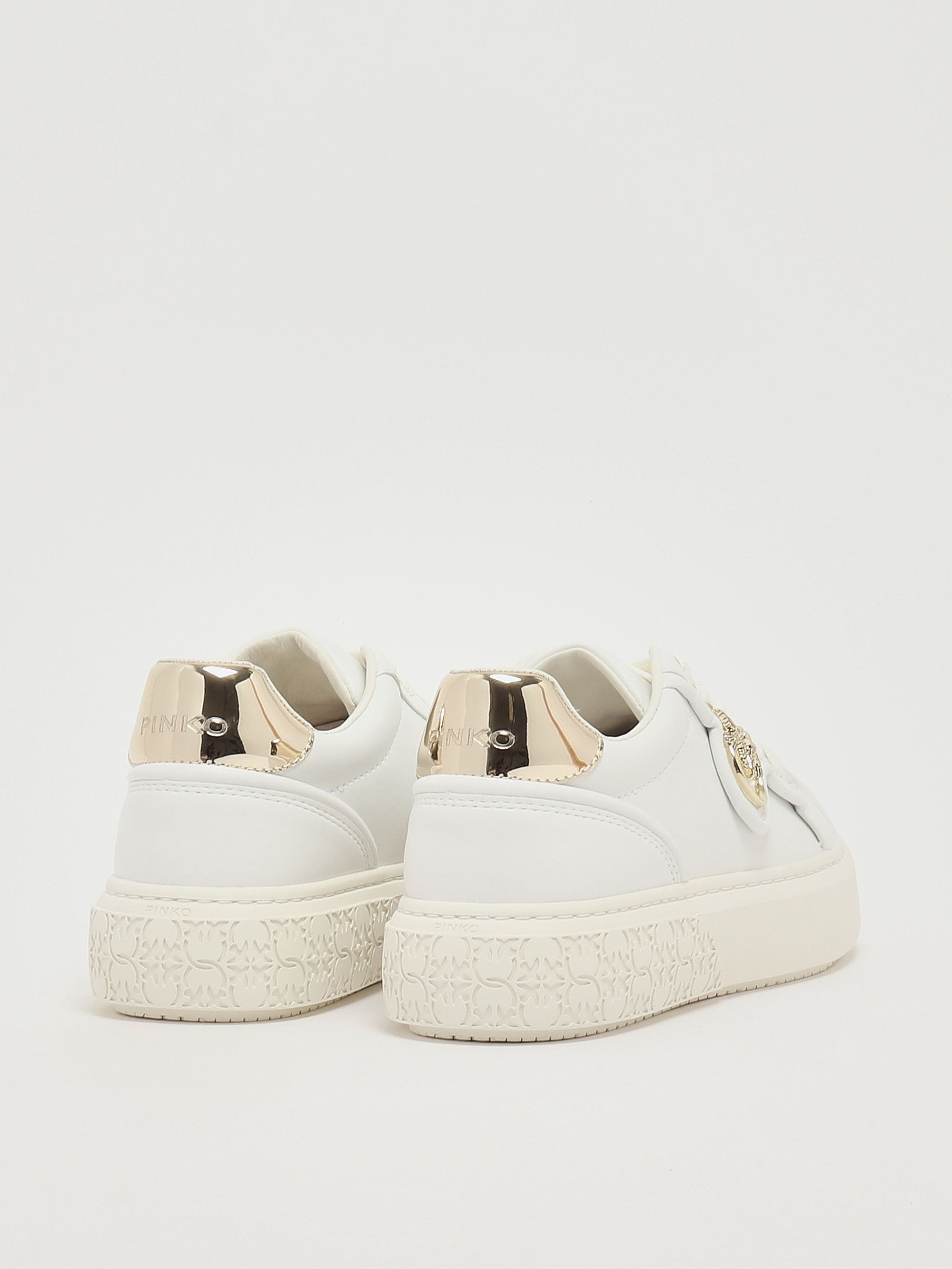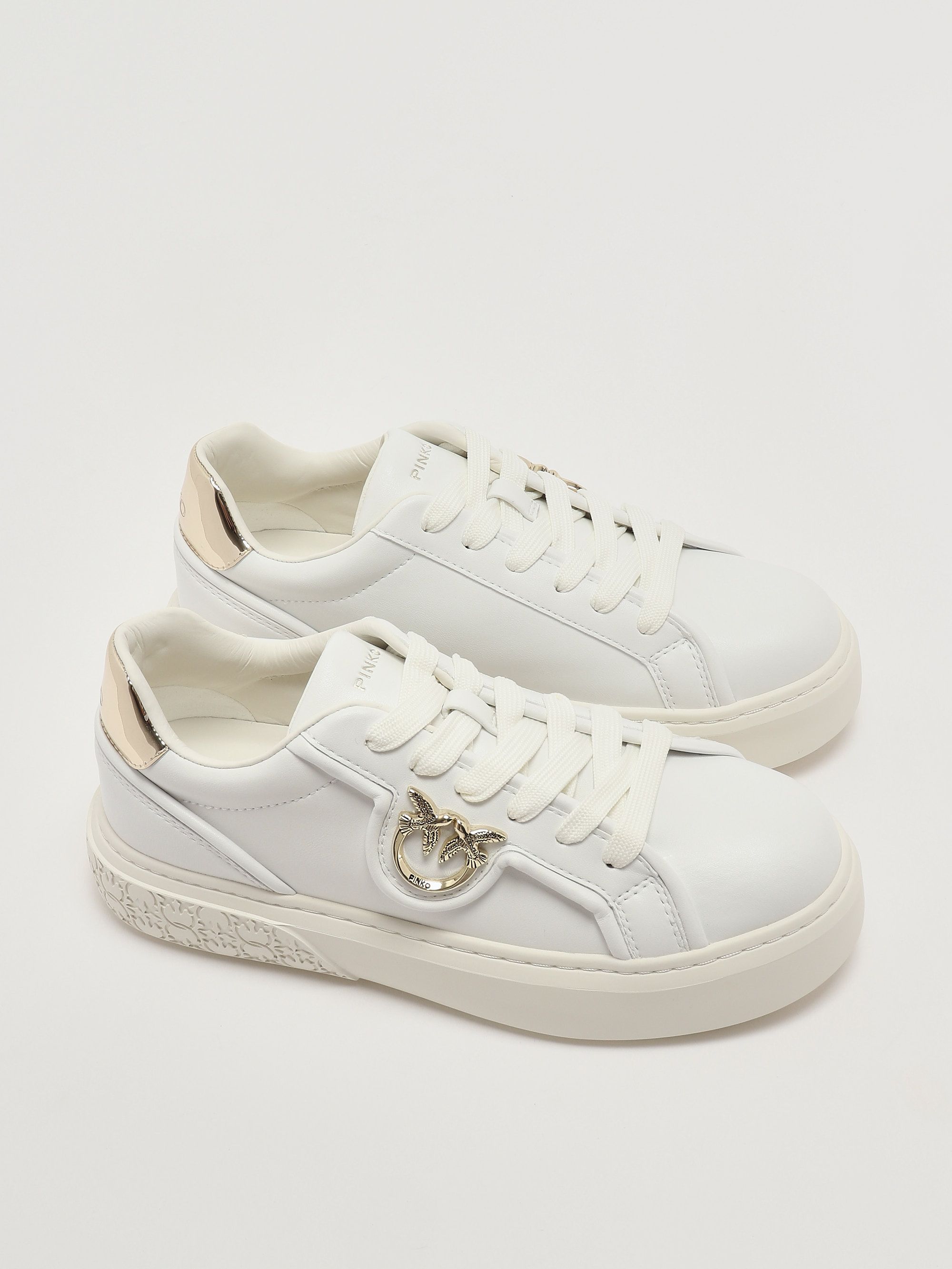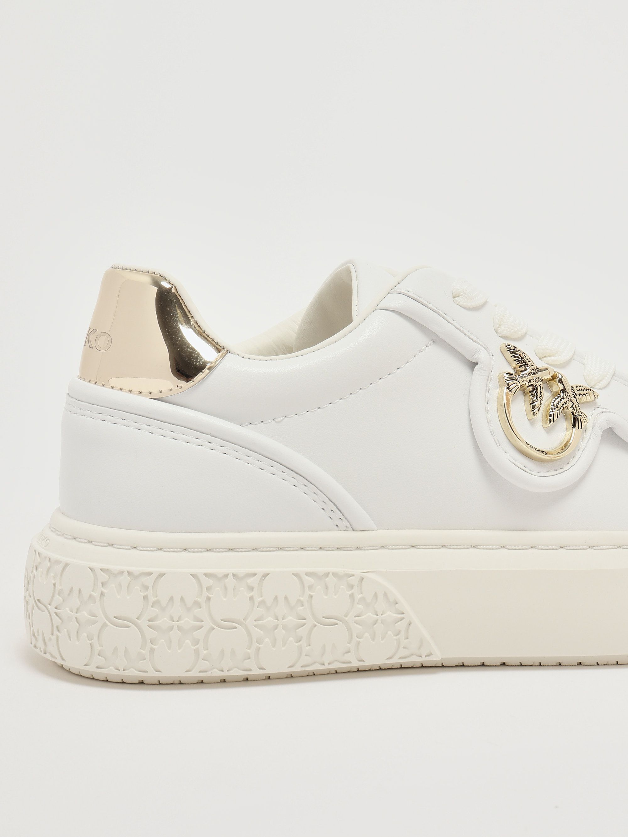Ces baskets en cuir sont dotées d'une fermeture à lacets sur le devant, d'une semelle compensée, d'un talon à effet miroir et de logos sur le dessus et la semelle.