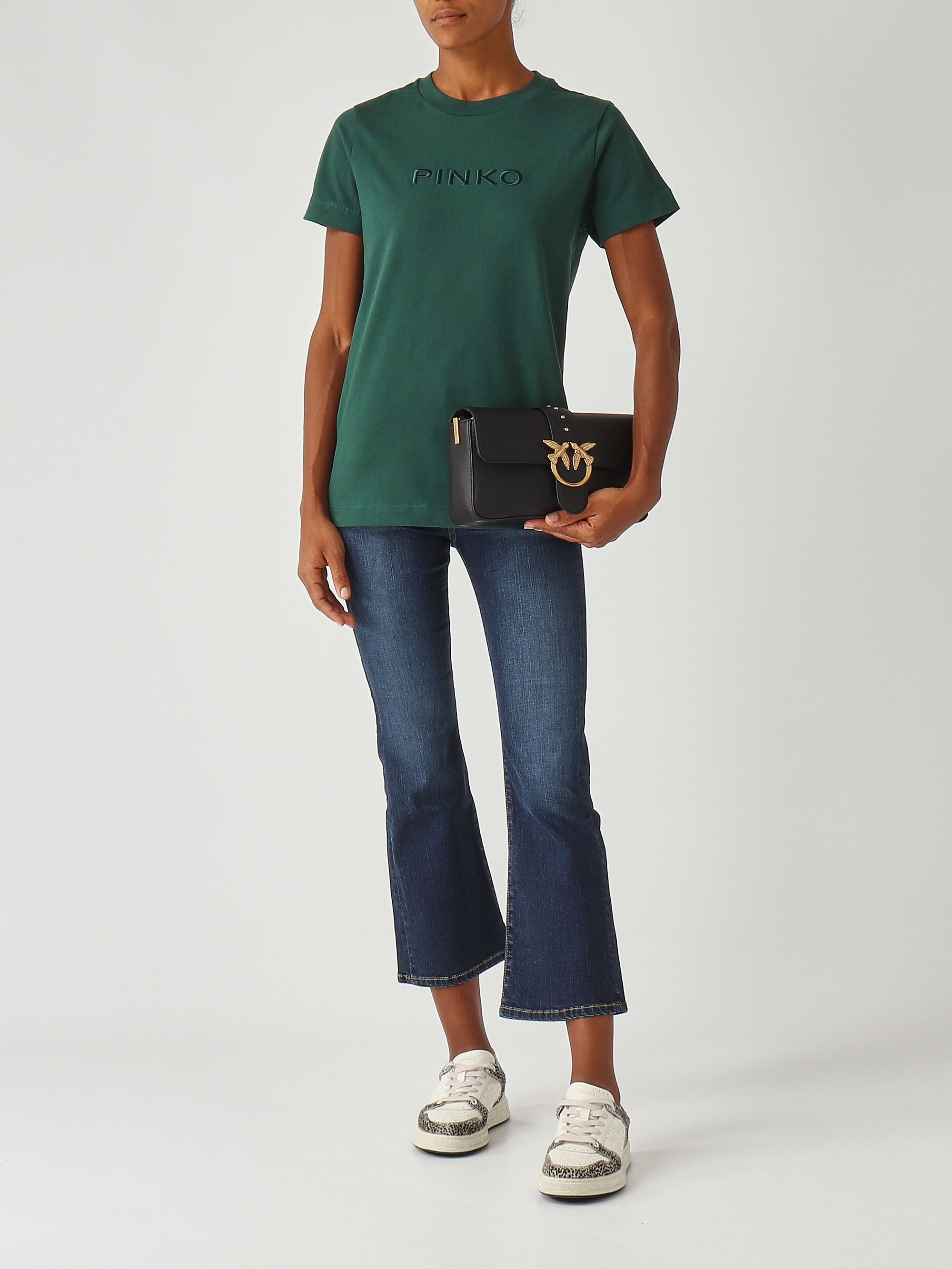 Les t-shirts ne peuvent jamais manquer dans la garde-robe de toutes les saisons. Idéale pour les tenues basiques et décontractées, Pinko propose sa version avec le logo brodé au centre de la poitrine.