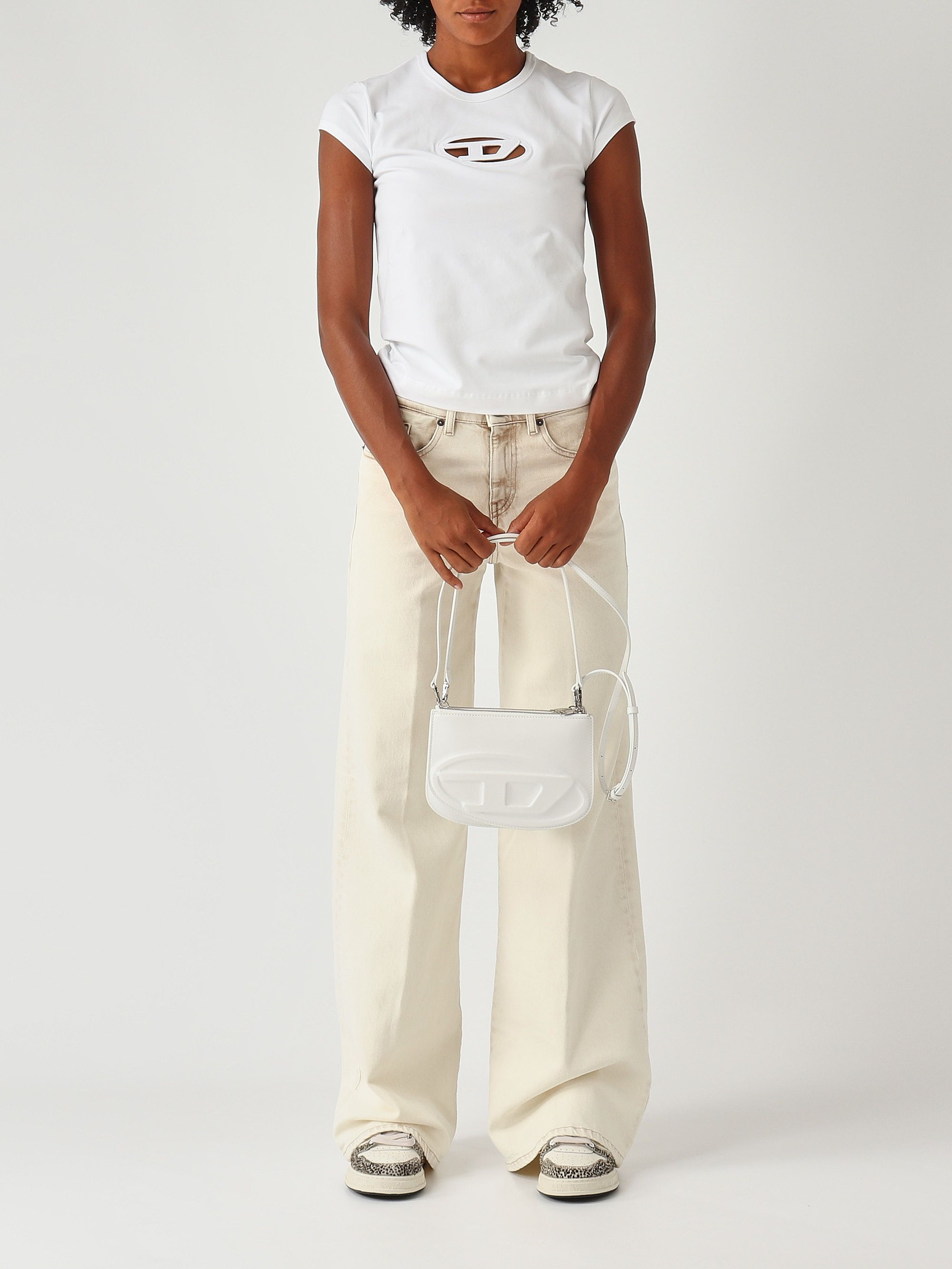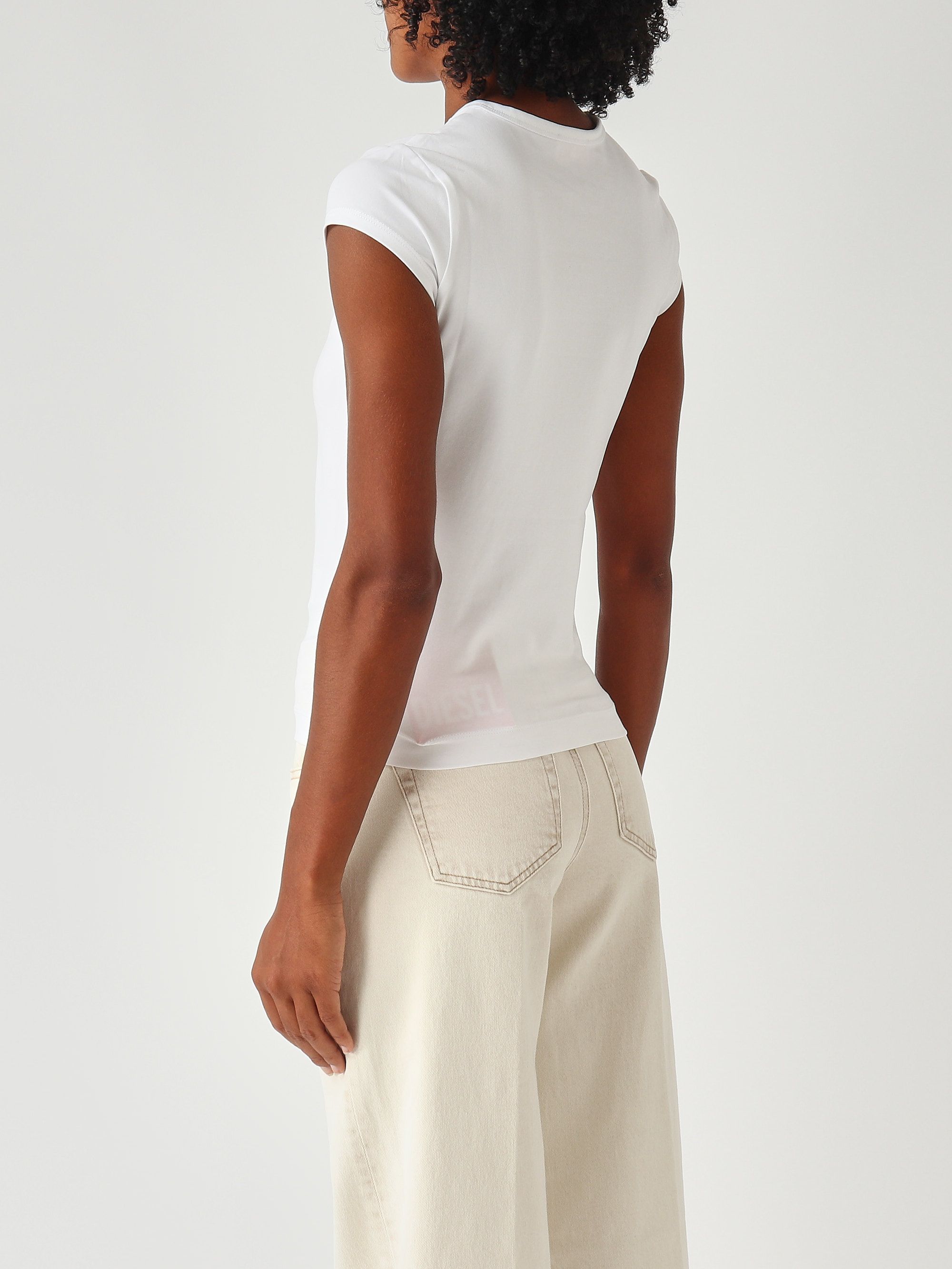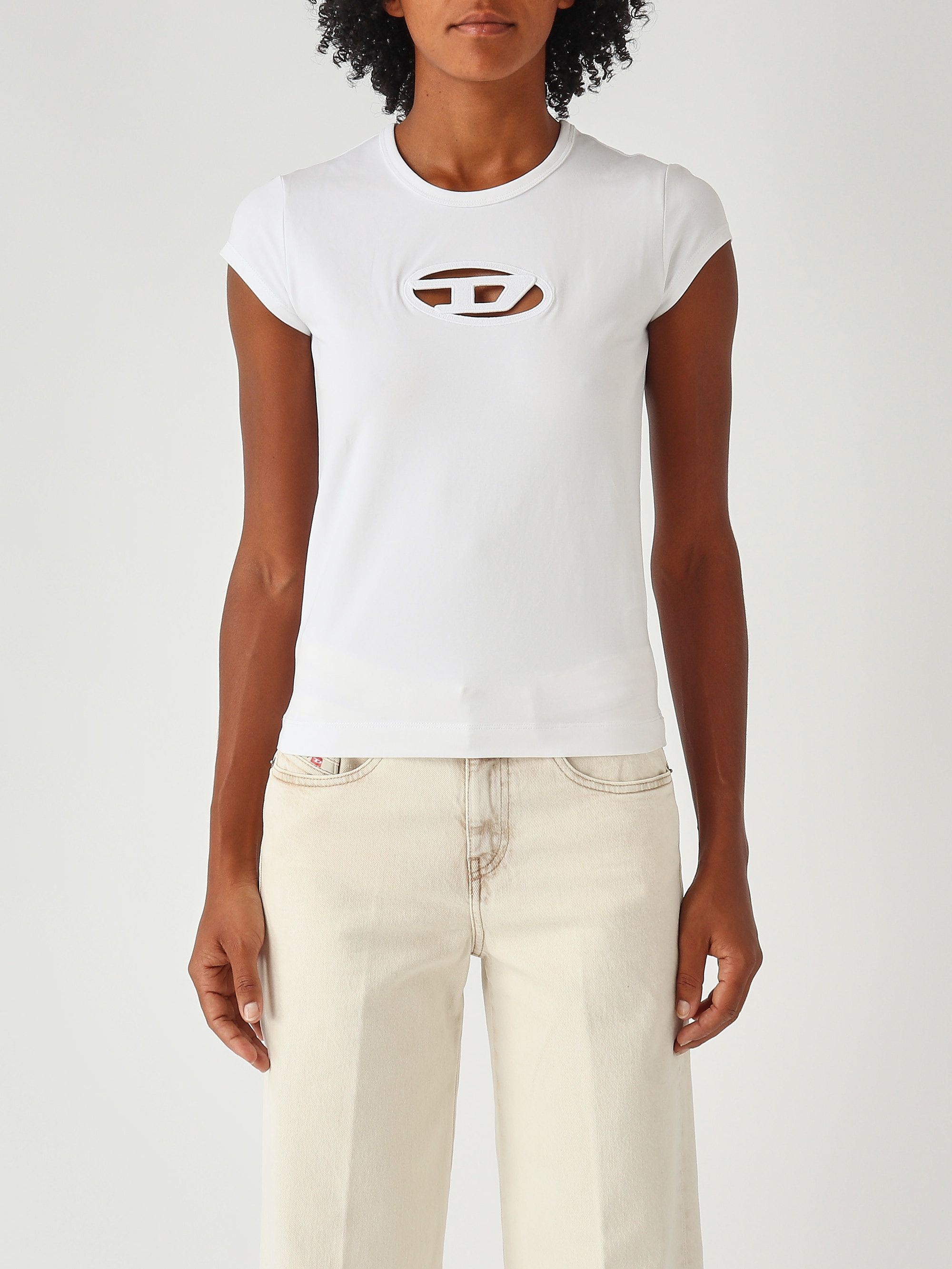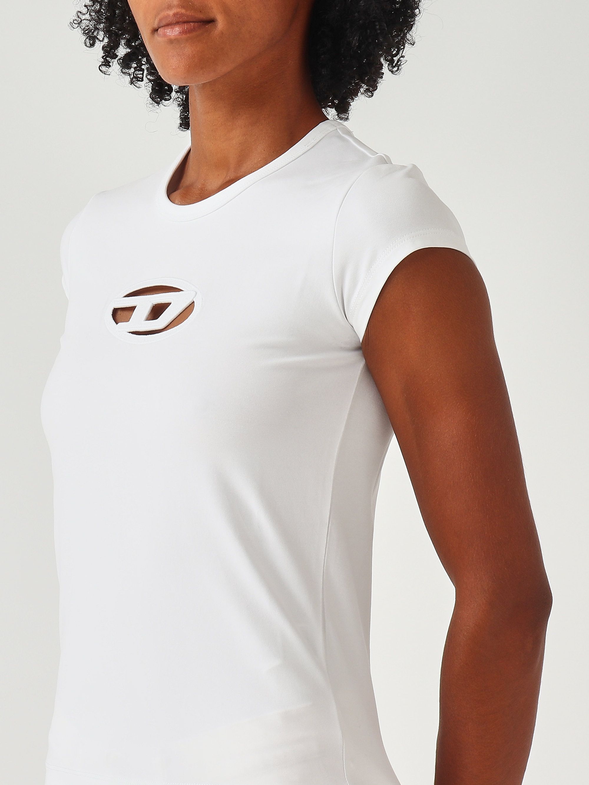 Ce t-shirt slim se démarque par le logo Oval-D peekaboo sur la poitrine, réalisé à l'aide d'une technique de découpe au laser et de broderie.