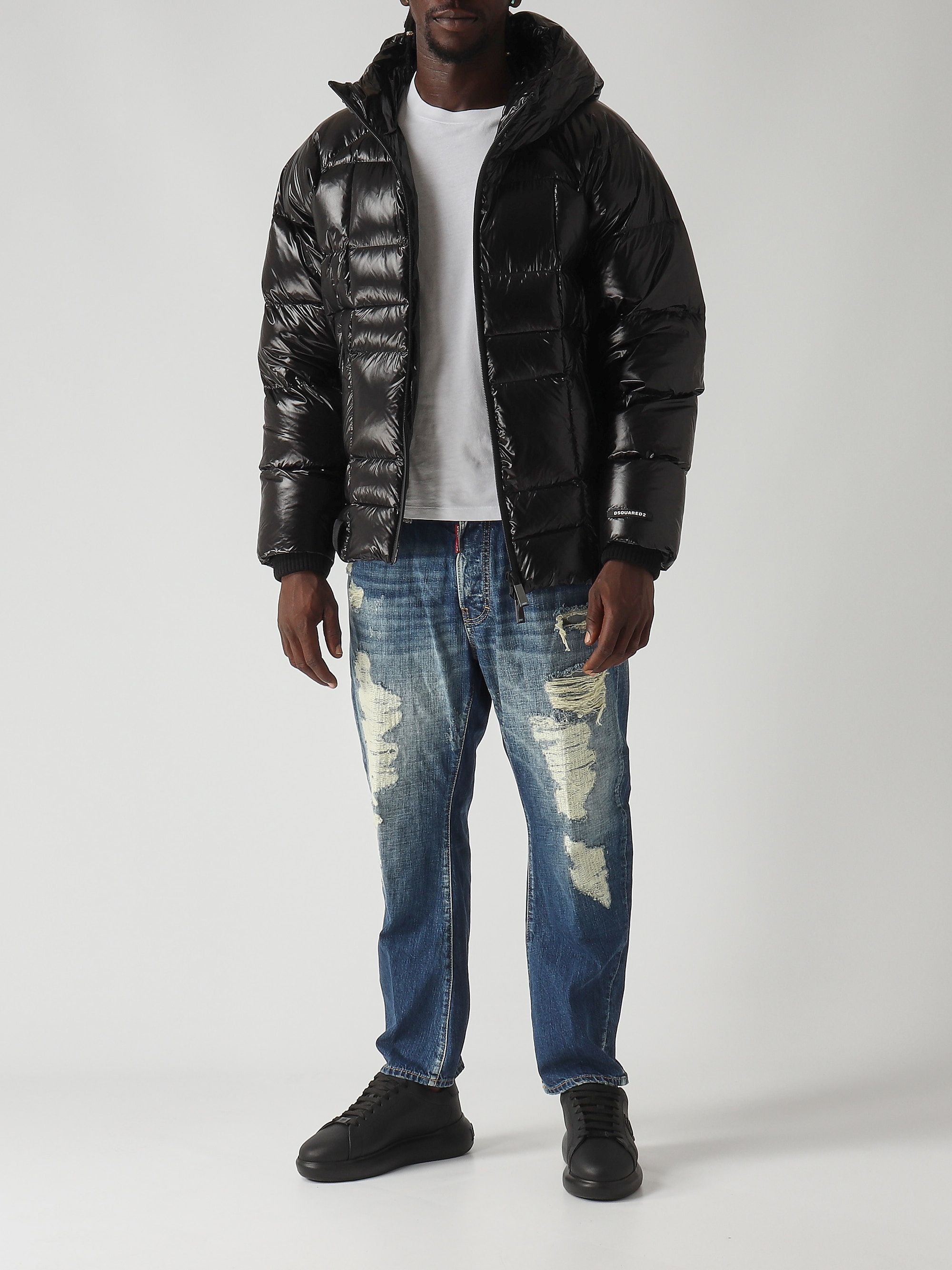 Elle présente une coupe décontractée, une fermeture à glissière double curseur, un cordon de serrage à l'ourlet pour ajuster la coupe, une capuche réglable, deux poches zippées sur le devant et des emmanchures terminées par de larges bordures côtelées extensibles.