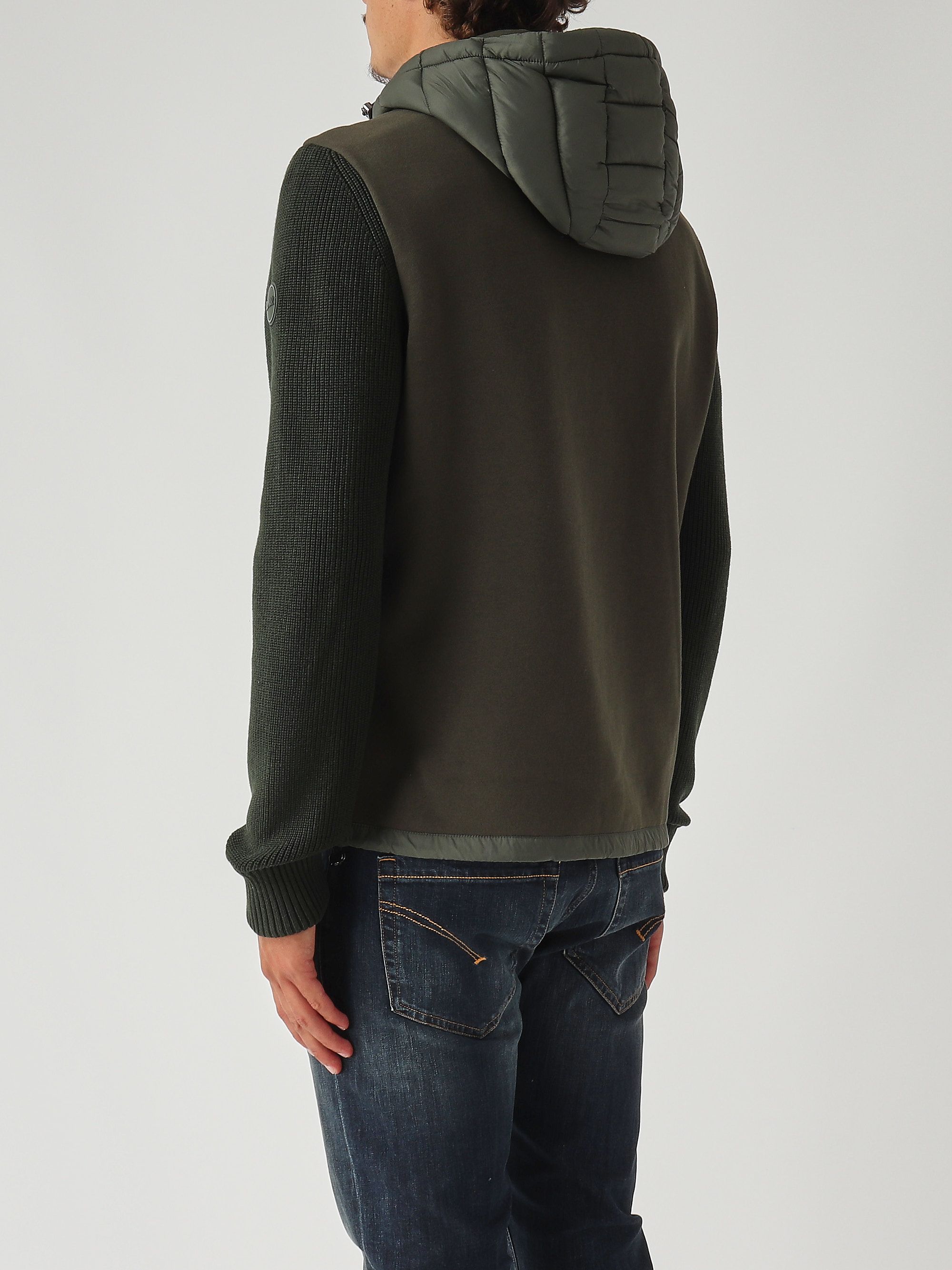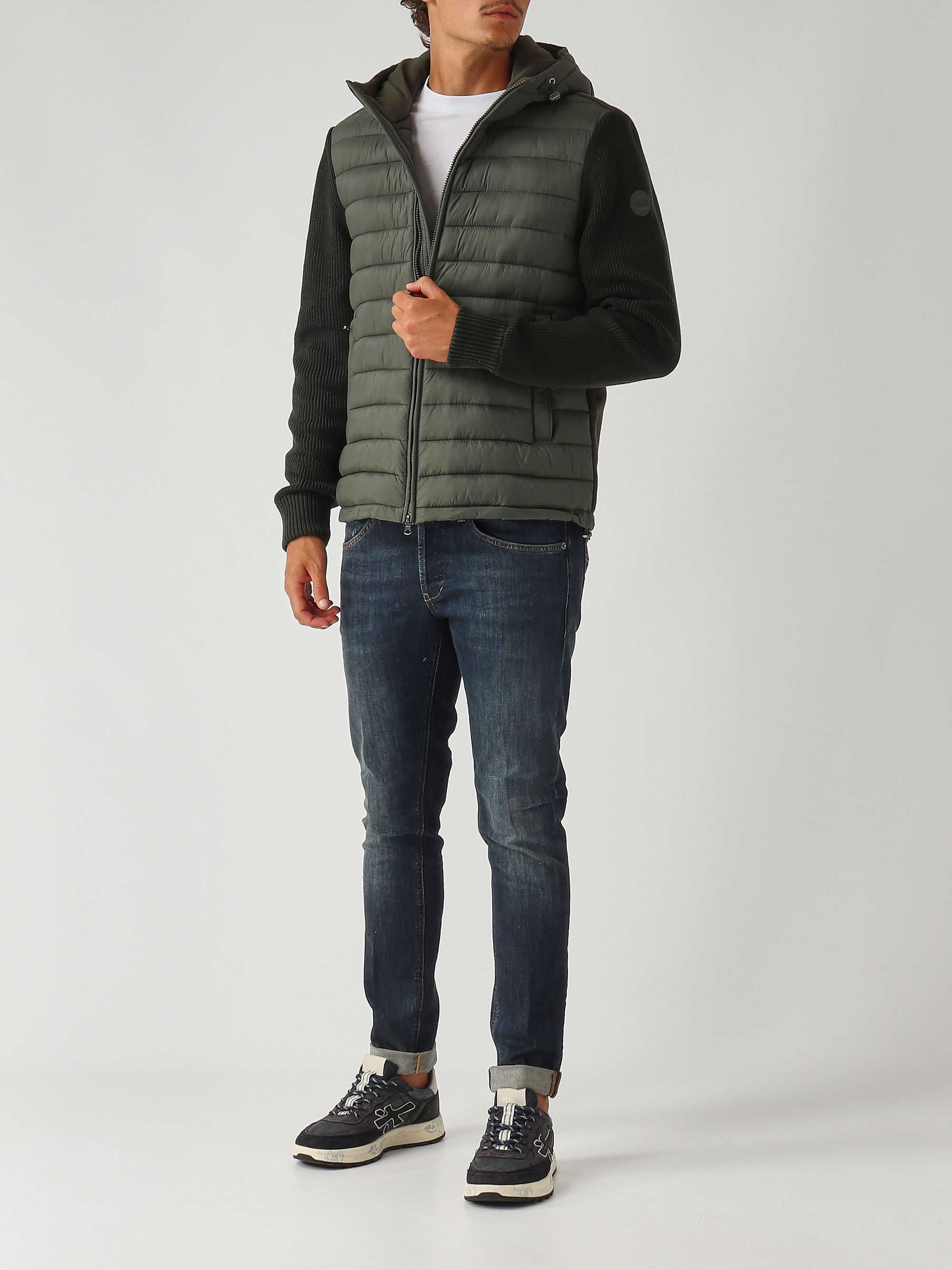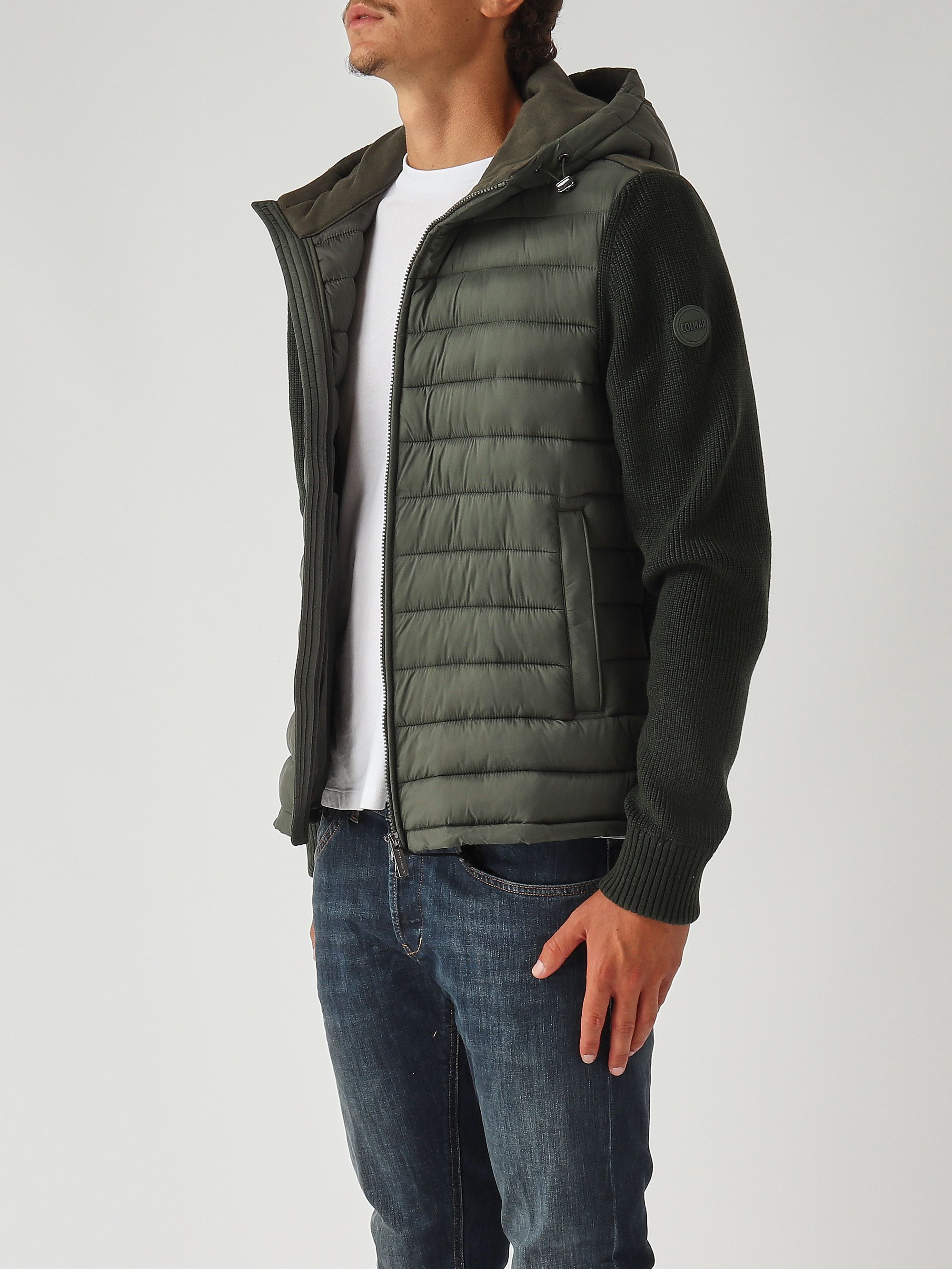 Elle combine un rembourrage matelassé à l'avant avec des inserts en tricot et en polaire pour un look unique, une fermeture à glissière, des poches avant affleurantes et une capuche avec cordon de serrage élastique.