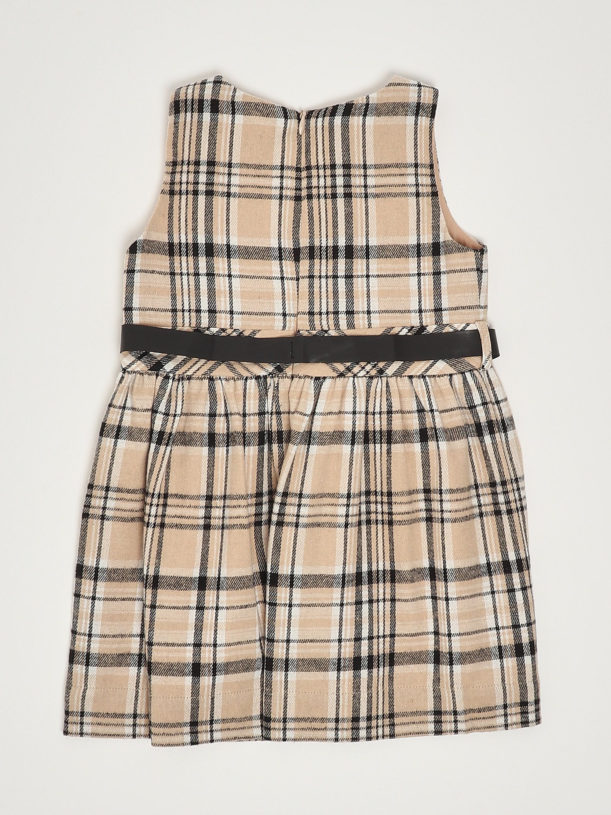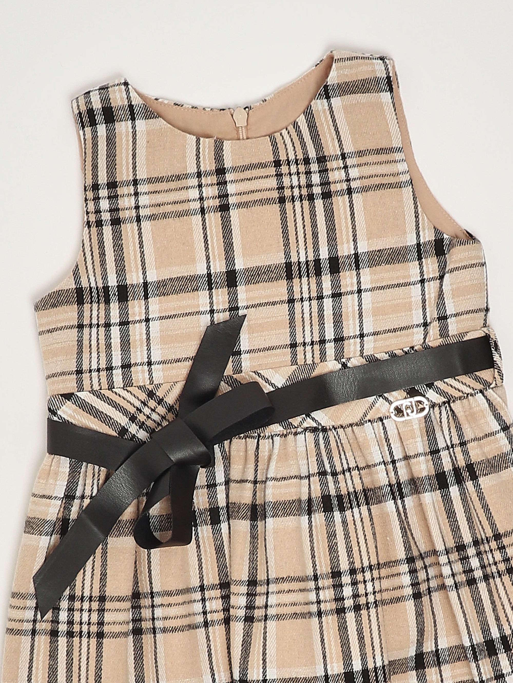 Questo abito smanicato girocollo in misto cotone vanta una fantasia check, una chiusura con zip sul retro e una cintura abbinata con fiocco.