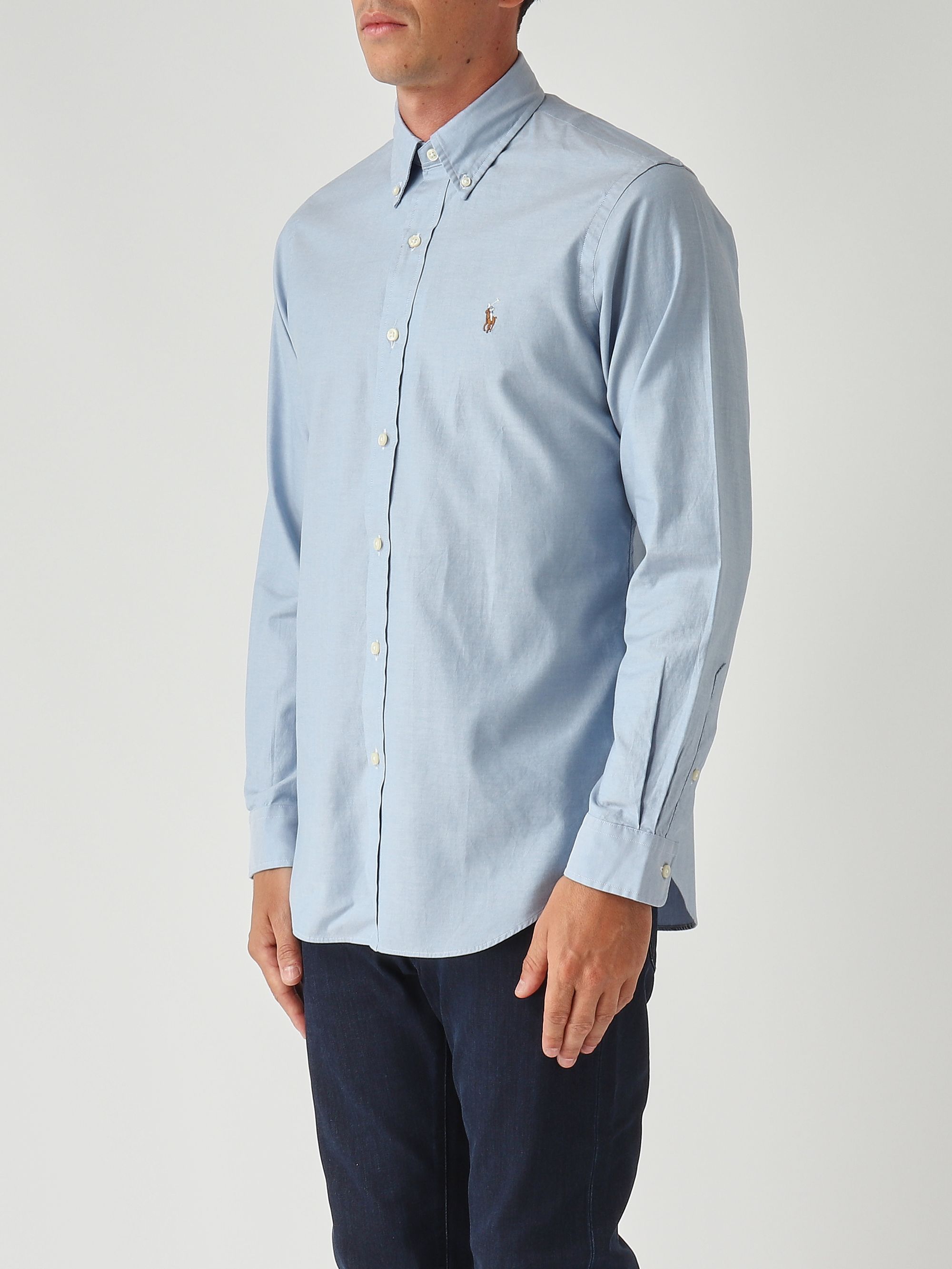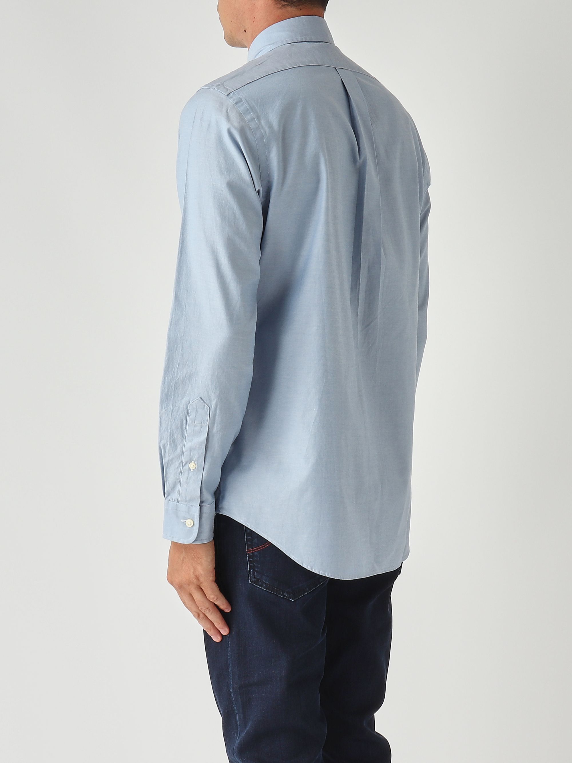 Realizzata in cotone Oxford stretch, un tessuto a quadrettatura grezza ma leggera al tatto, resistente e morbida, questa camicia vanta una vestibilità custom fit che si adatta al corpo in modo più specifico rispetto alle taglie standard, ma più comoda di un fit slim o aderente. Si presenta con un orlo stondato, pinces posteriori, collo button down e bottoni ai polsi.