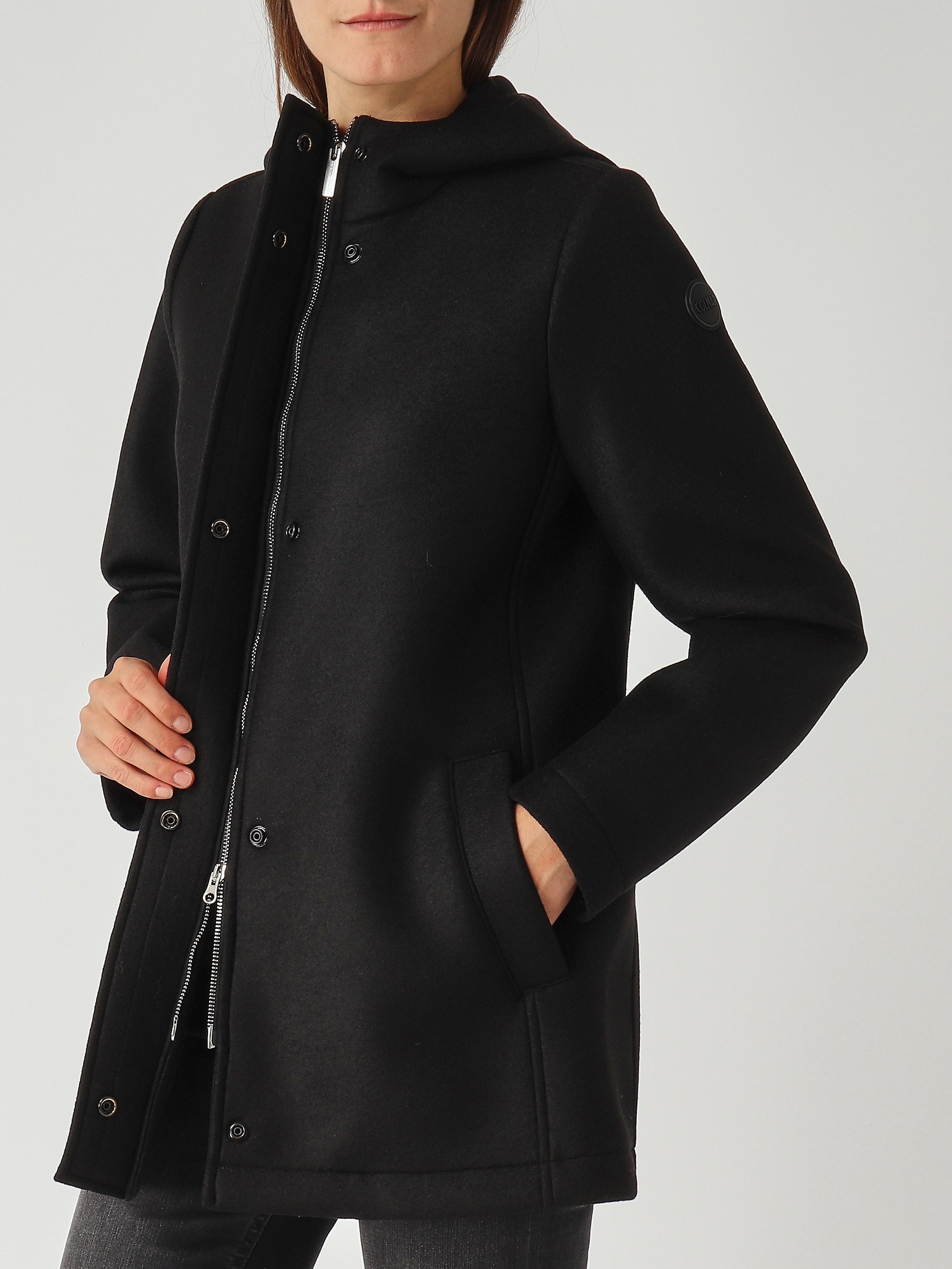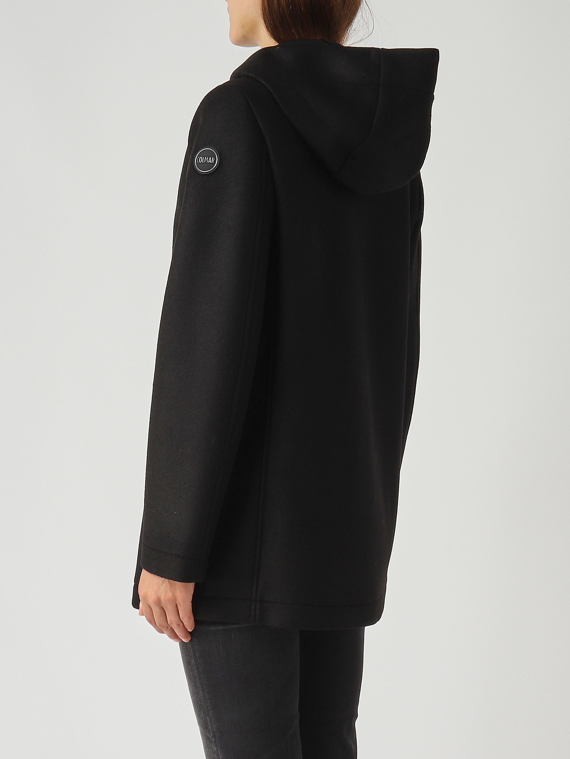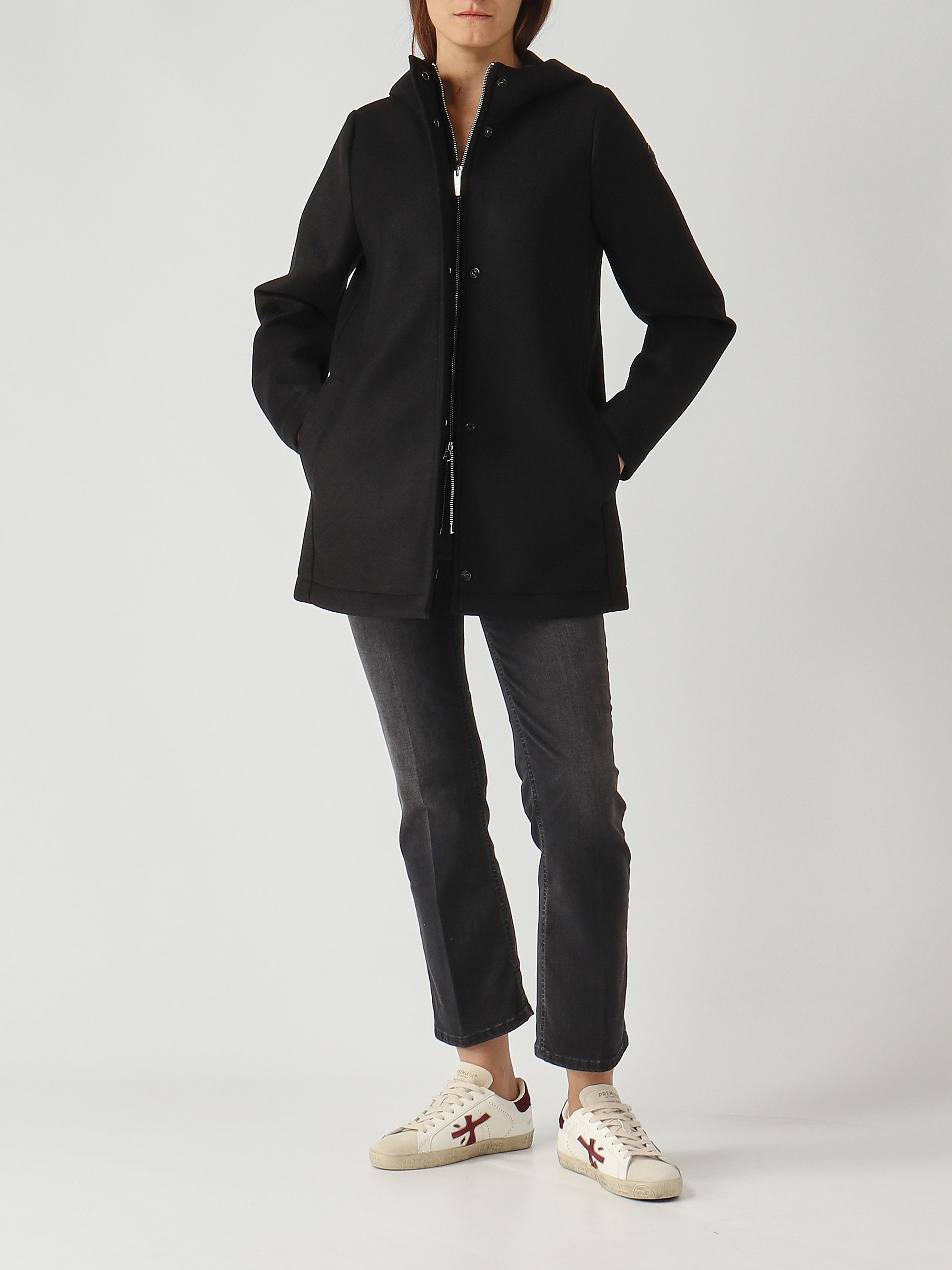Elegante ma funzionale, questo cappotto dalle linee sciancrate offre praticità e comfort nelle fresche giornate tra autunno e inverno. Realizzato in panno di misto lana stretch, si presenta con cappuccio fisso, una chiusura con zip e bottoni coperti da patta e tasche oblique a fessura sul davanti.