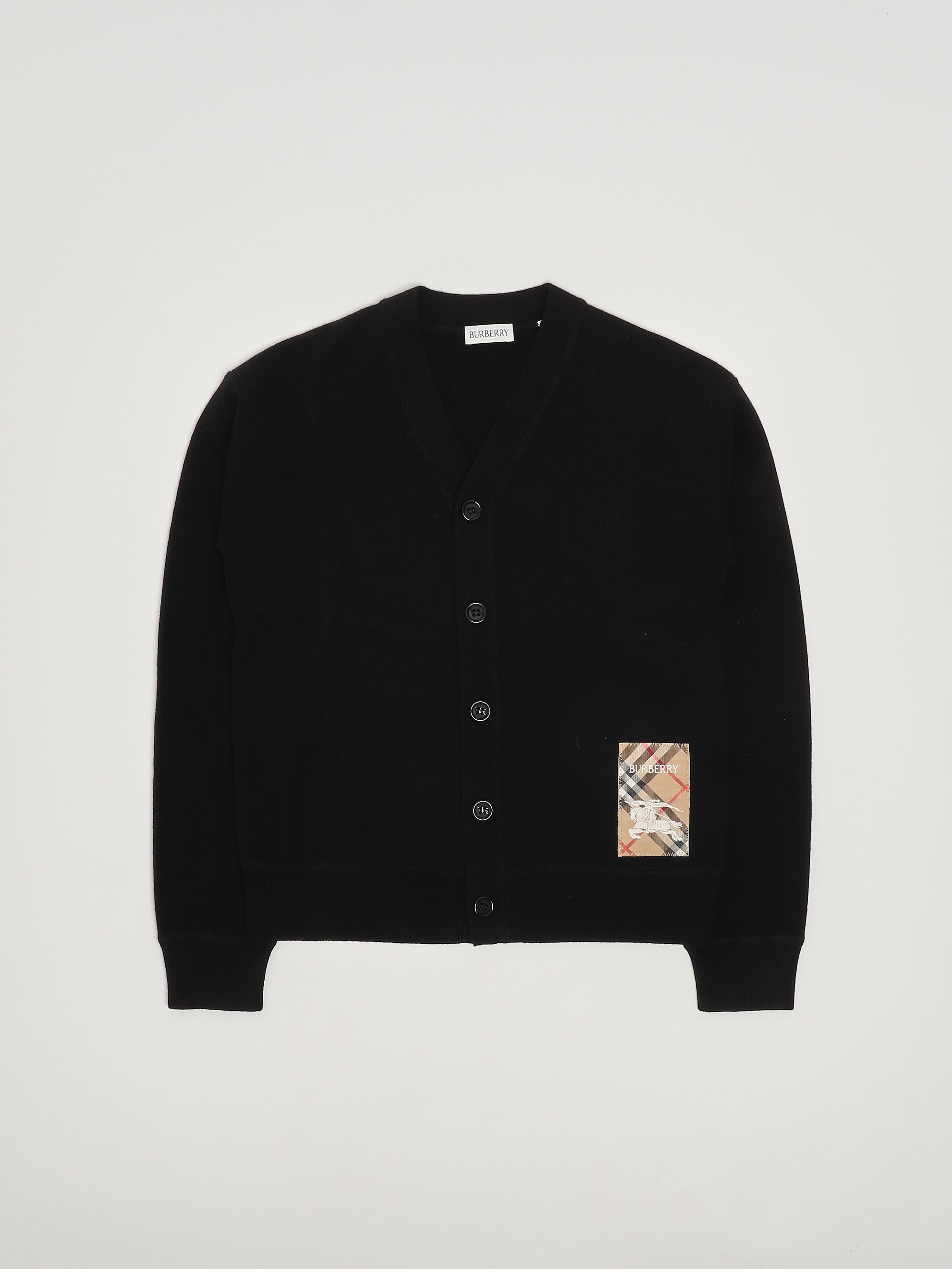 Realizzato in morbida lana, il cardigan Romie Burberry presenta una chiusura con bottoni, scollo a V e applicazione check con iconico logo Equestrian ricamato a contrasto.