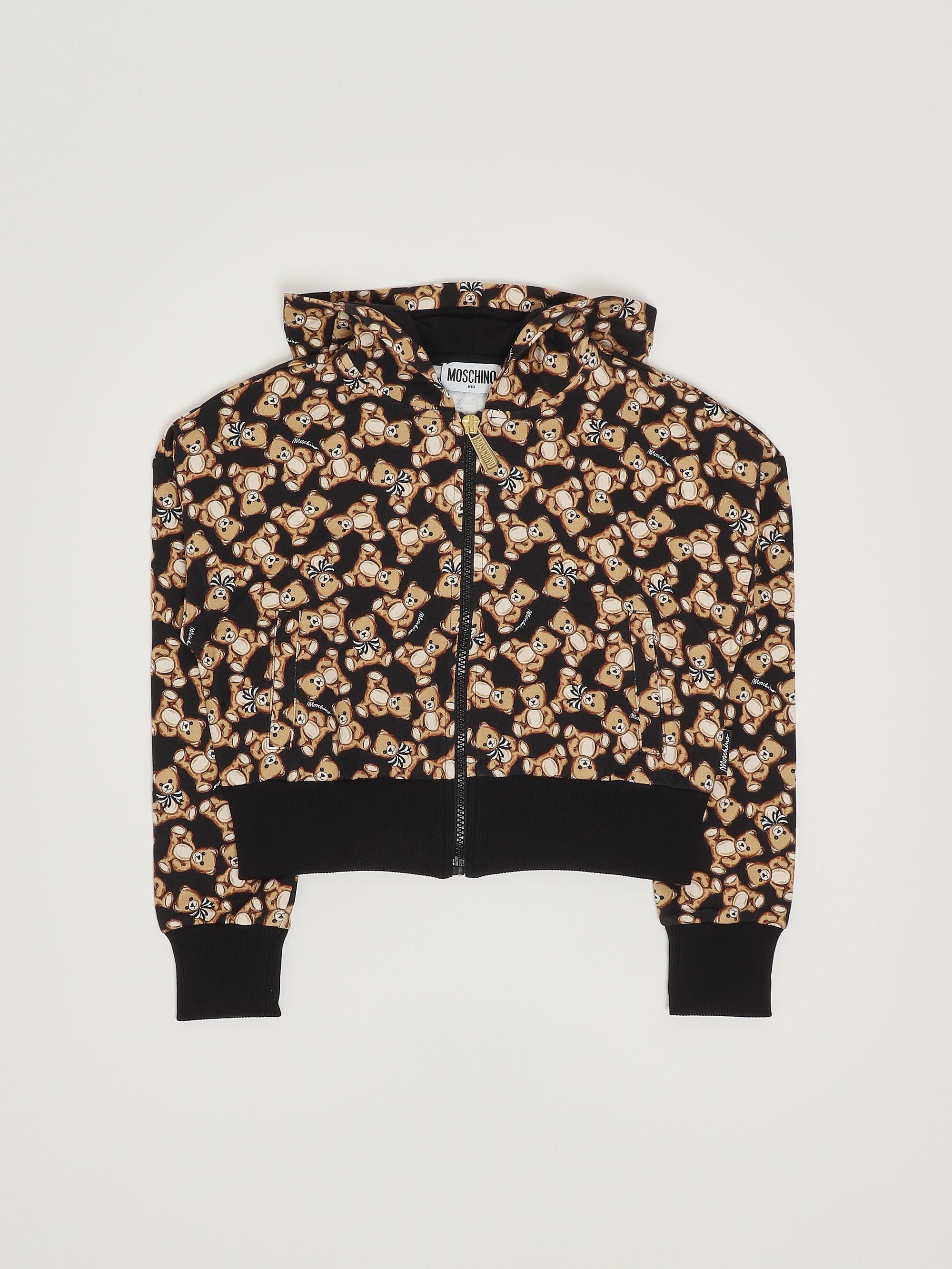 Questa felpa con cappuccio in cotone stretch si presenta con orlo e polsini a costine, una chiusura con zip e due tasche anteriori a fessura.