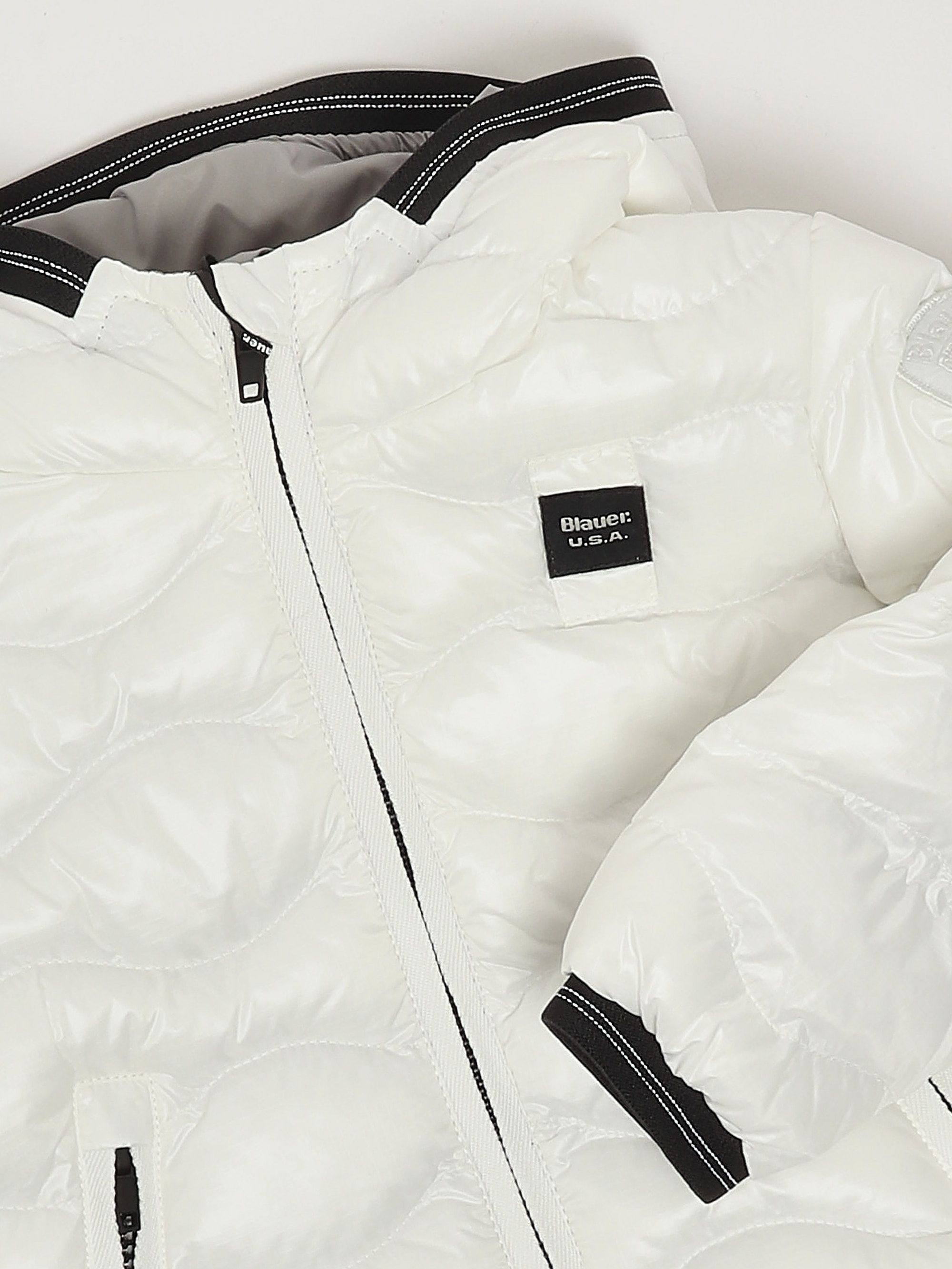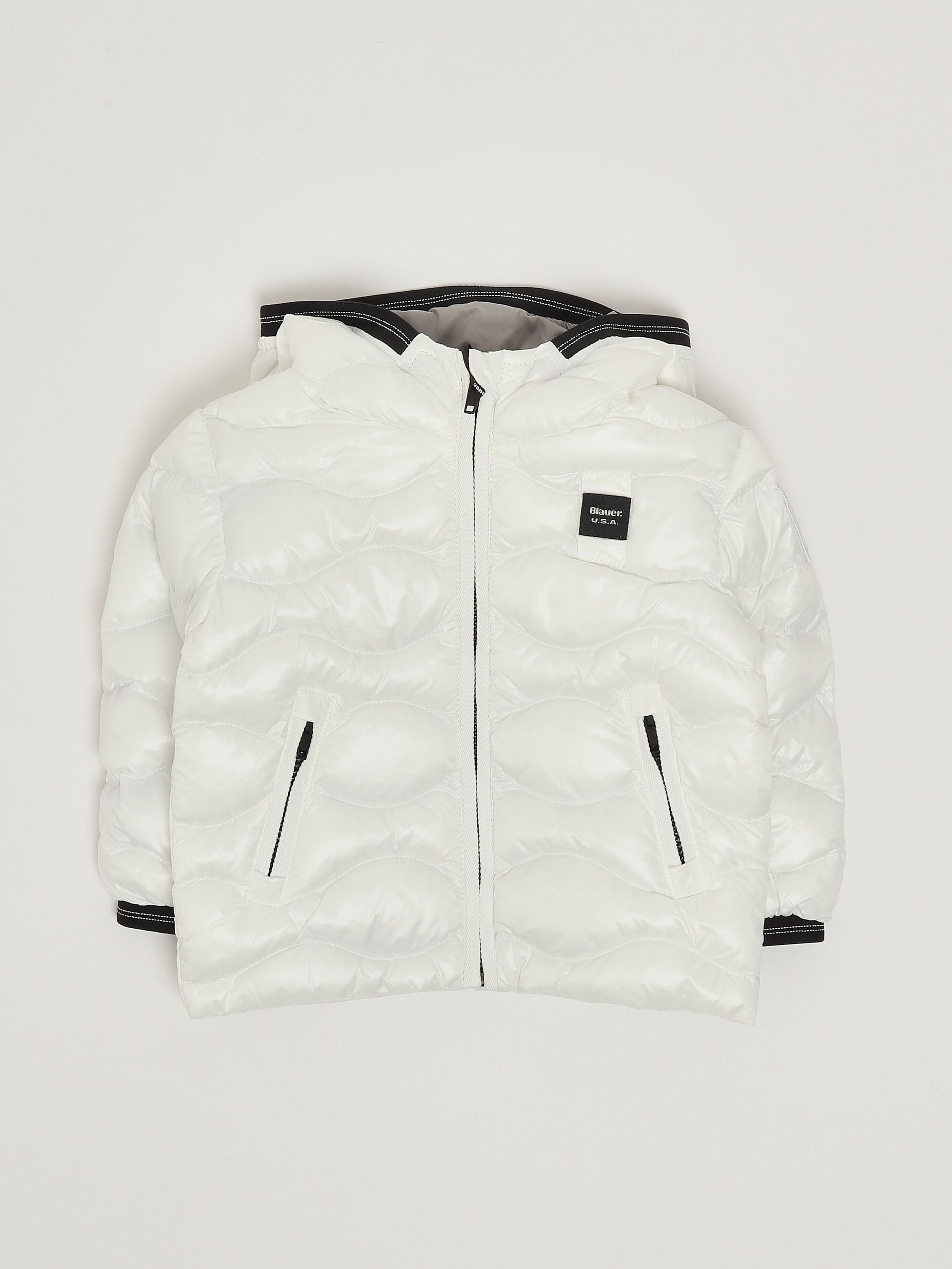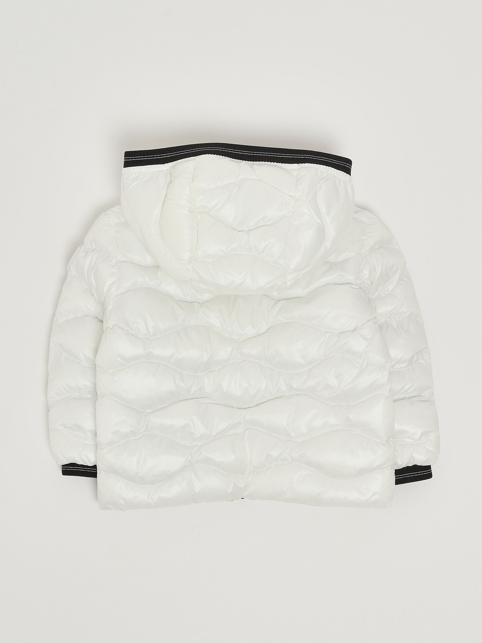 Un capo dinamico e glamour per proteggere il tuo bimbo dai primi freddi autunnali. Realizzato in nylon, questo giubbotto presenta un design con trapuntatura a onde, polsi e orli elasticizzati, una chiusura con cerniera, un cappuccio fisso e due tasche laterali con zip.
