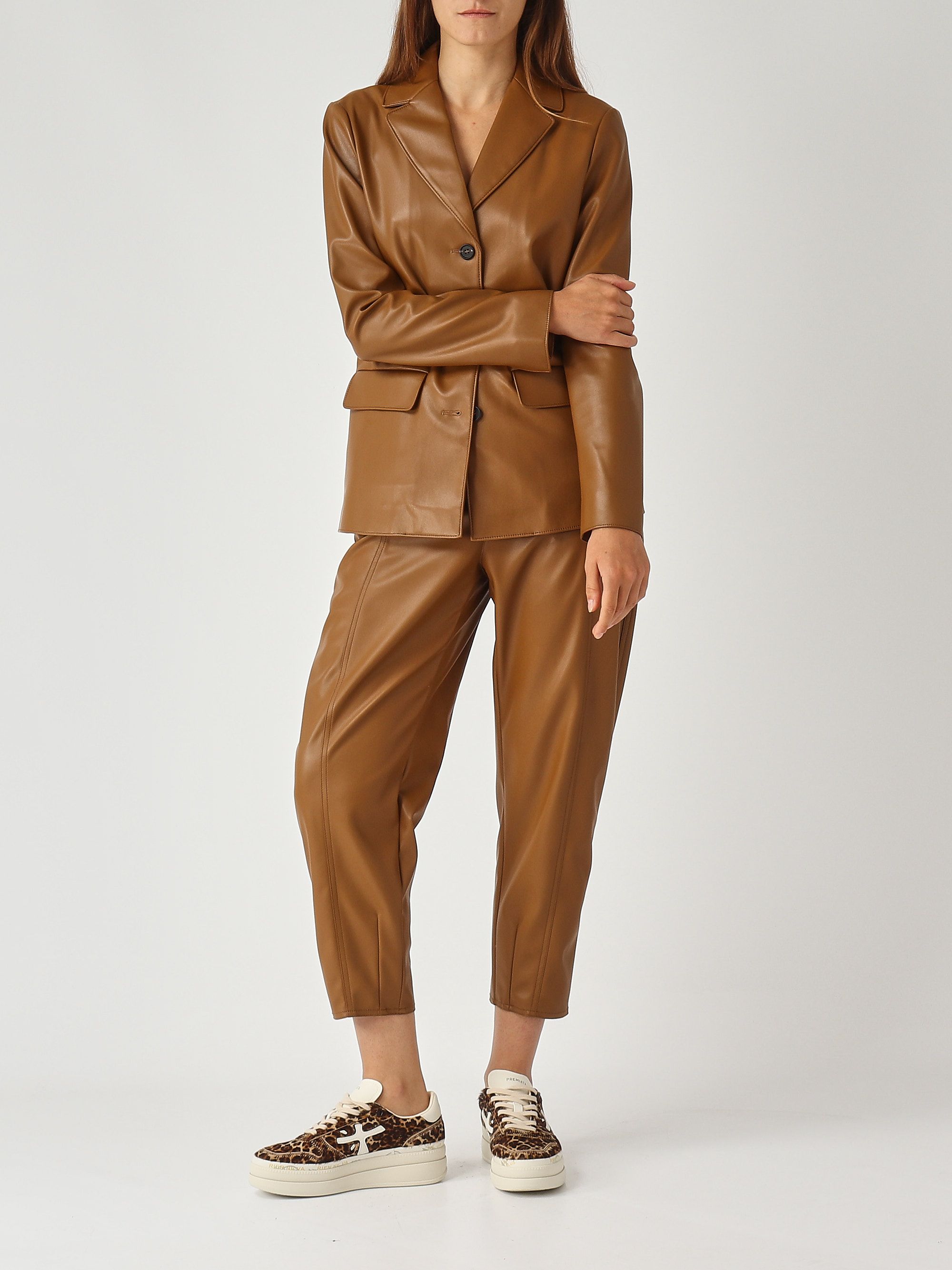 Ha una chiusura con bottone e zip, tasche anteriori a filo cucitura e tasche posteriori applicate con salpa logata, abbinalo alla giacca coordinata per un look di tendenza.