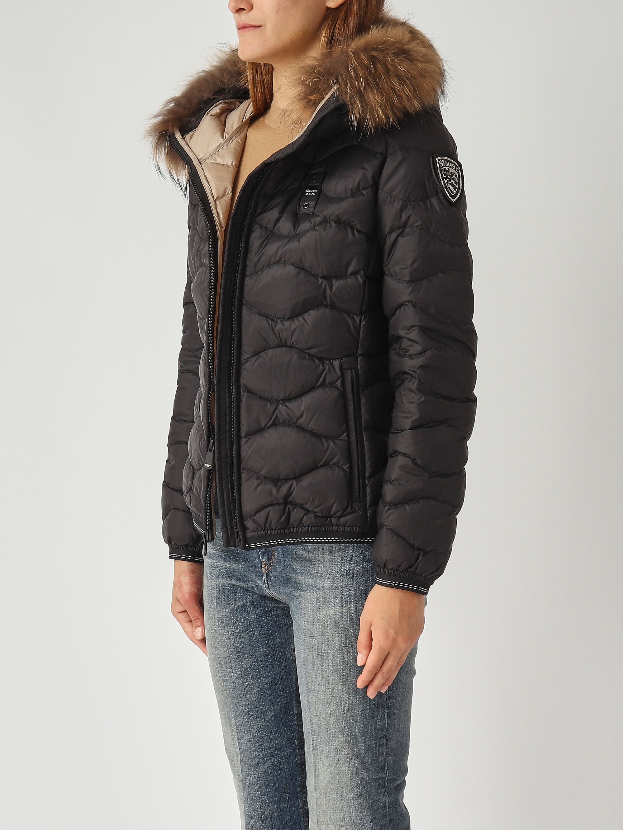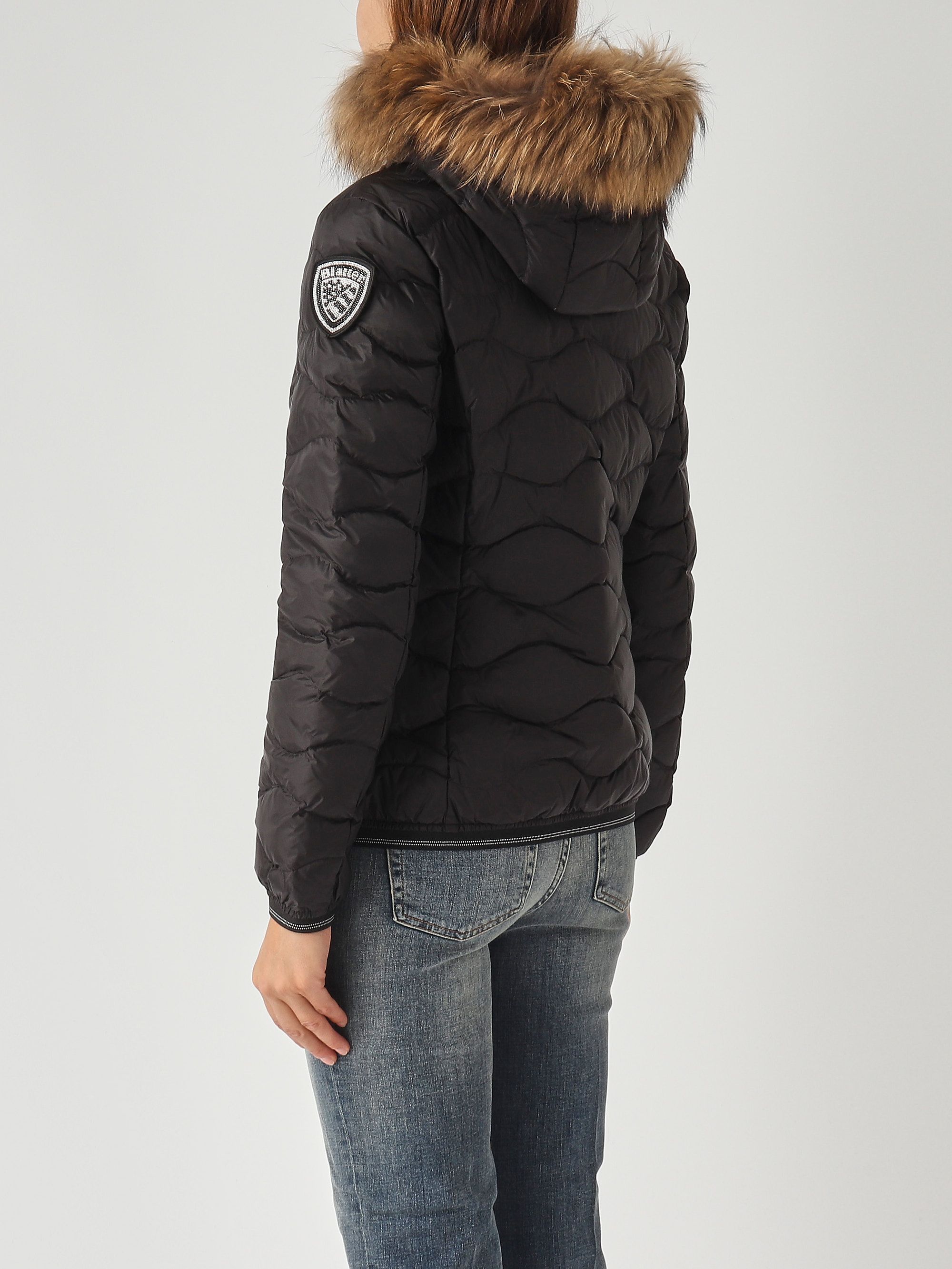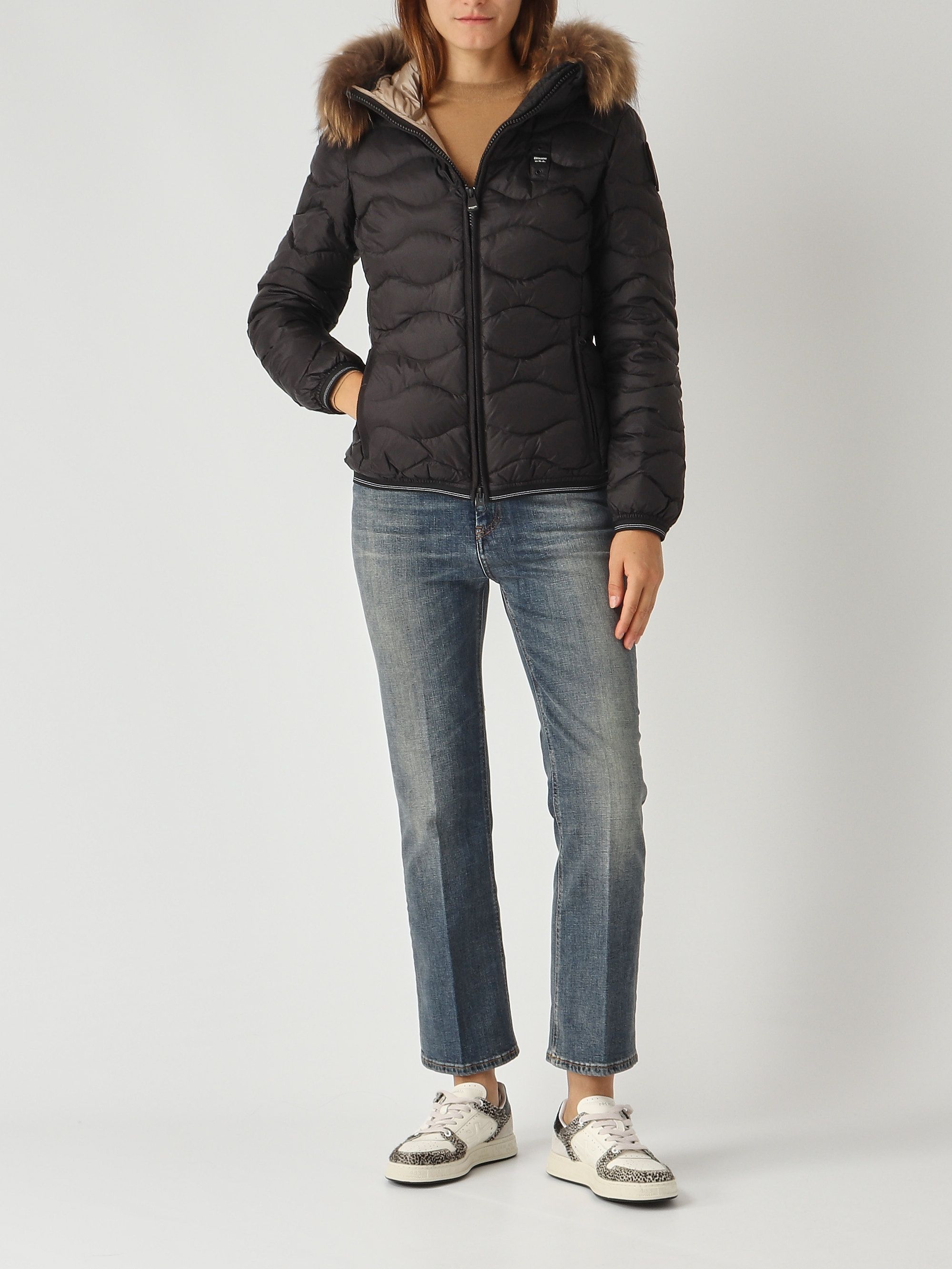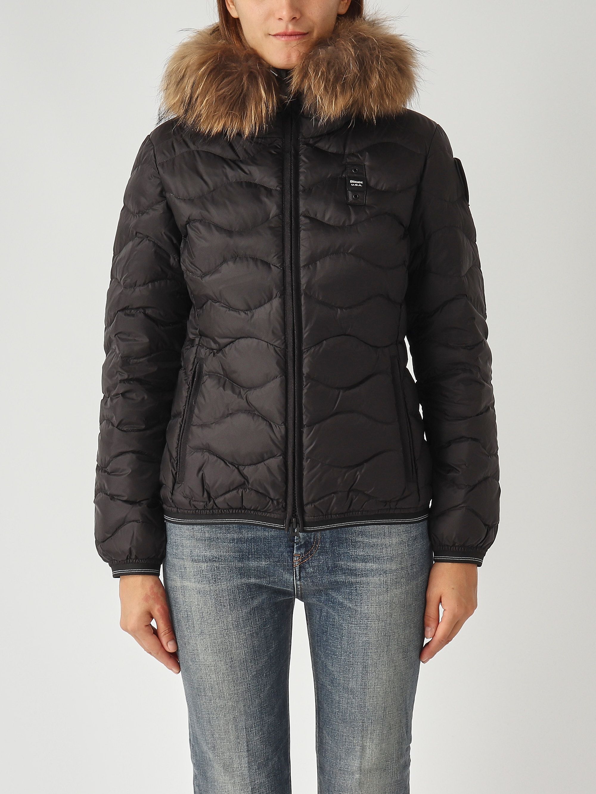 Realizzato in nylon con trapuntatura a onde orizzontali, è caratterizzato da un taglio svasato e aderente, un'imbottitura naturale, calda e non ingombrante.
