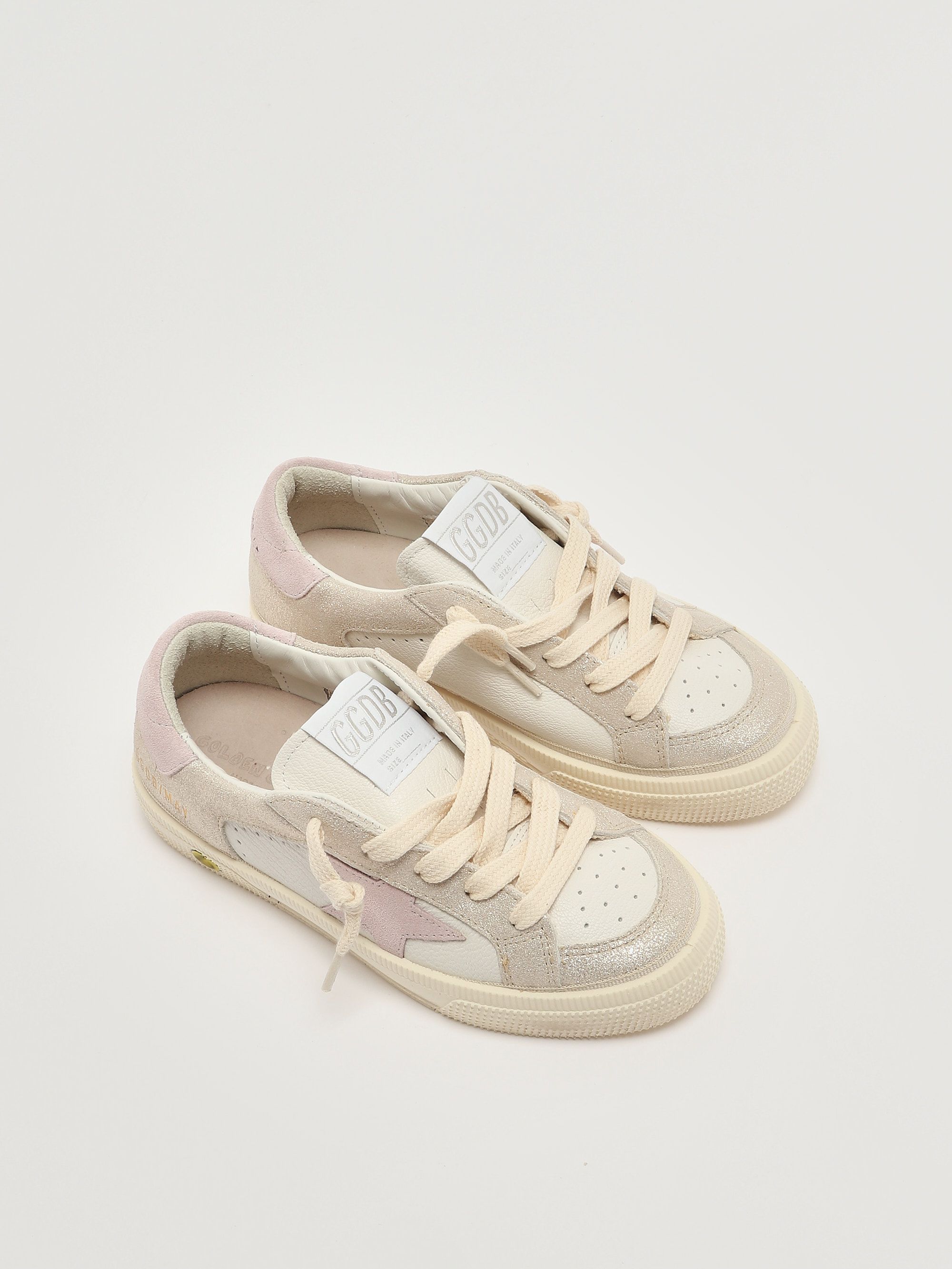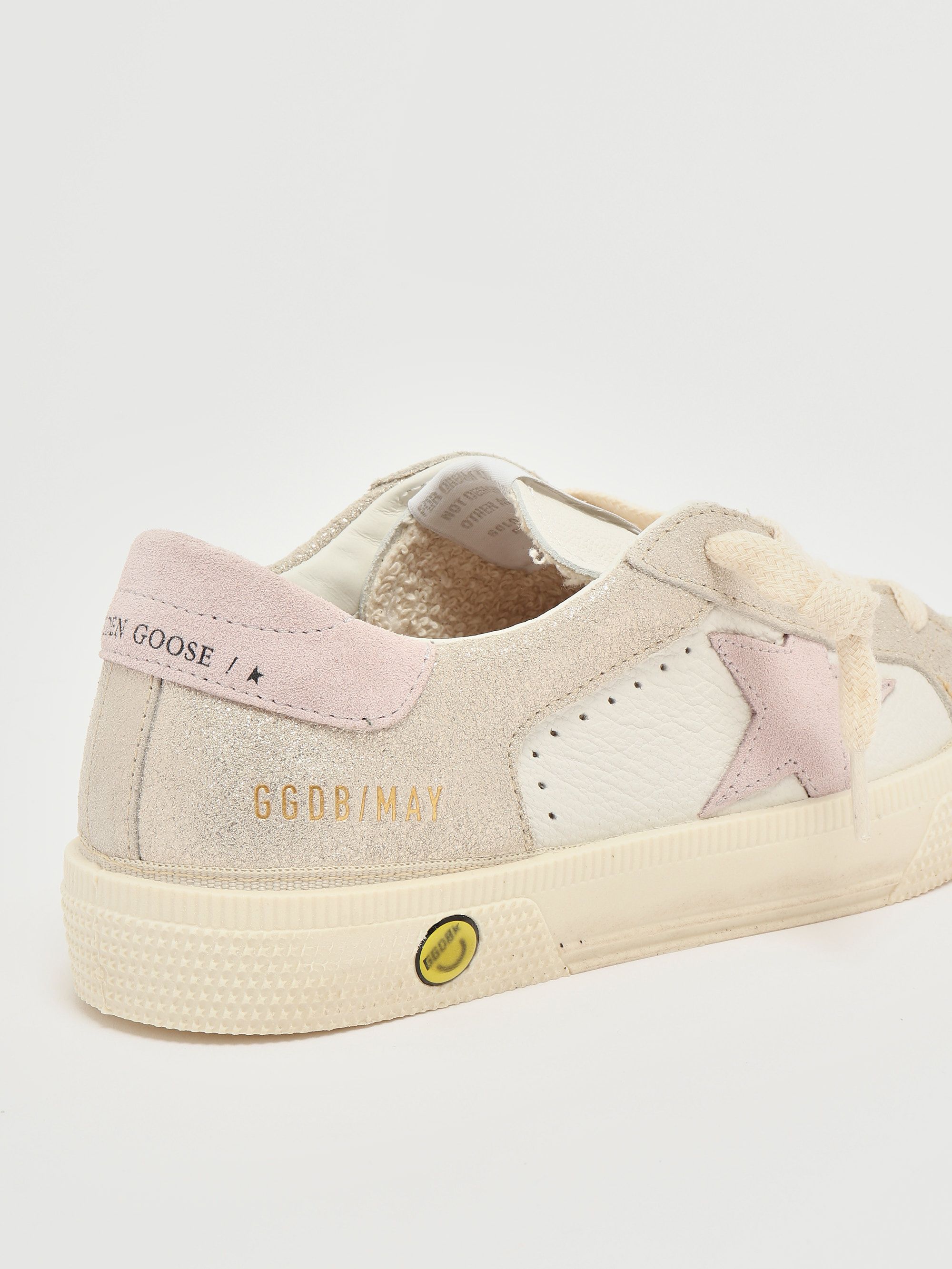 Realizzate in un mix di pelle nappa e scamosciata, le sneakers May presentano una chiusura frontale con lacci e una tomaia multicolor.