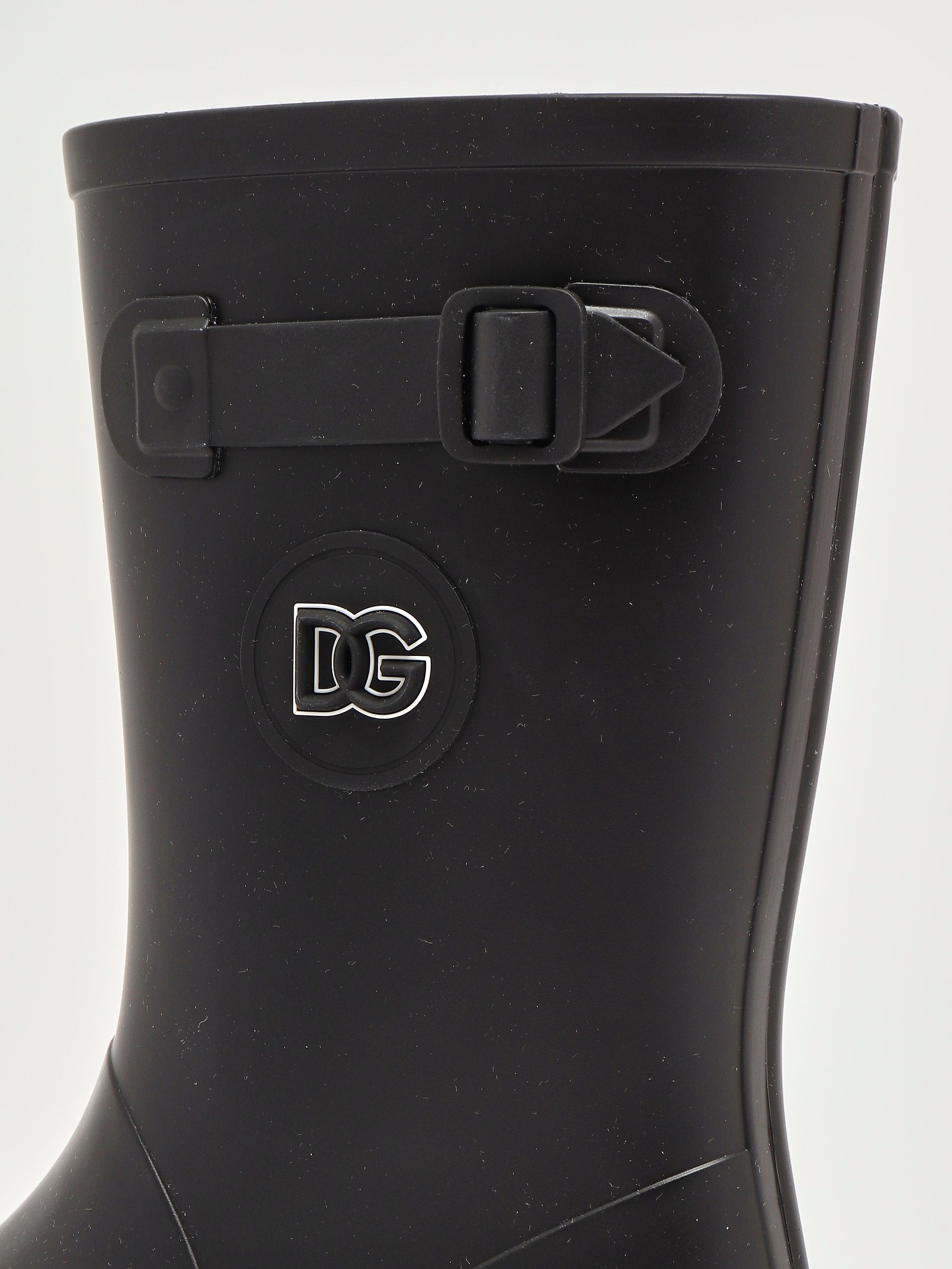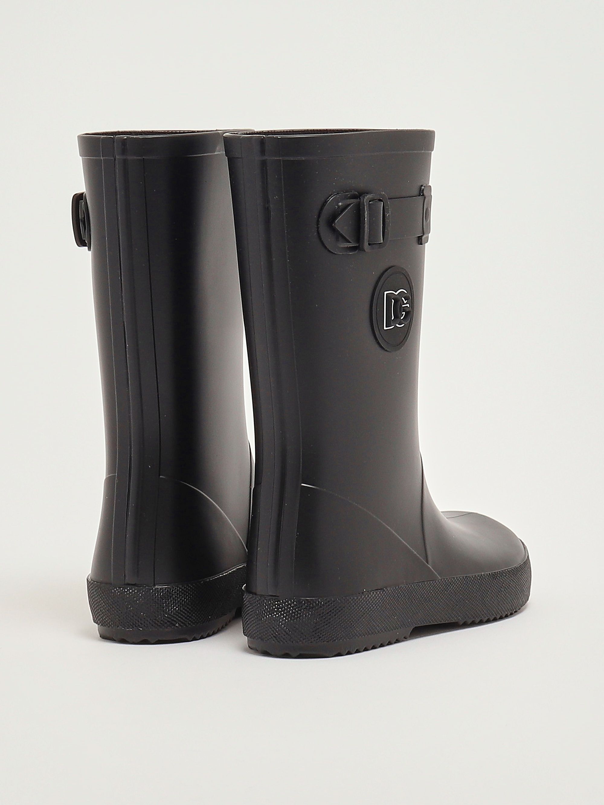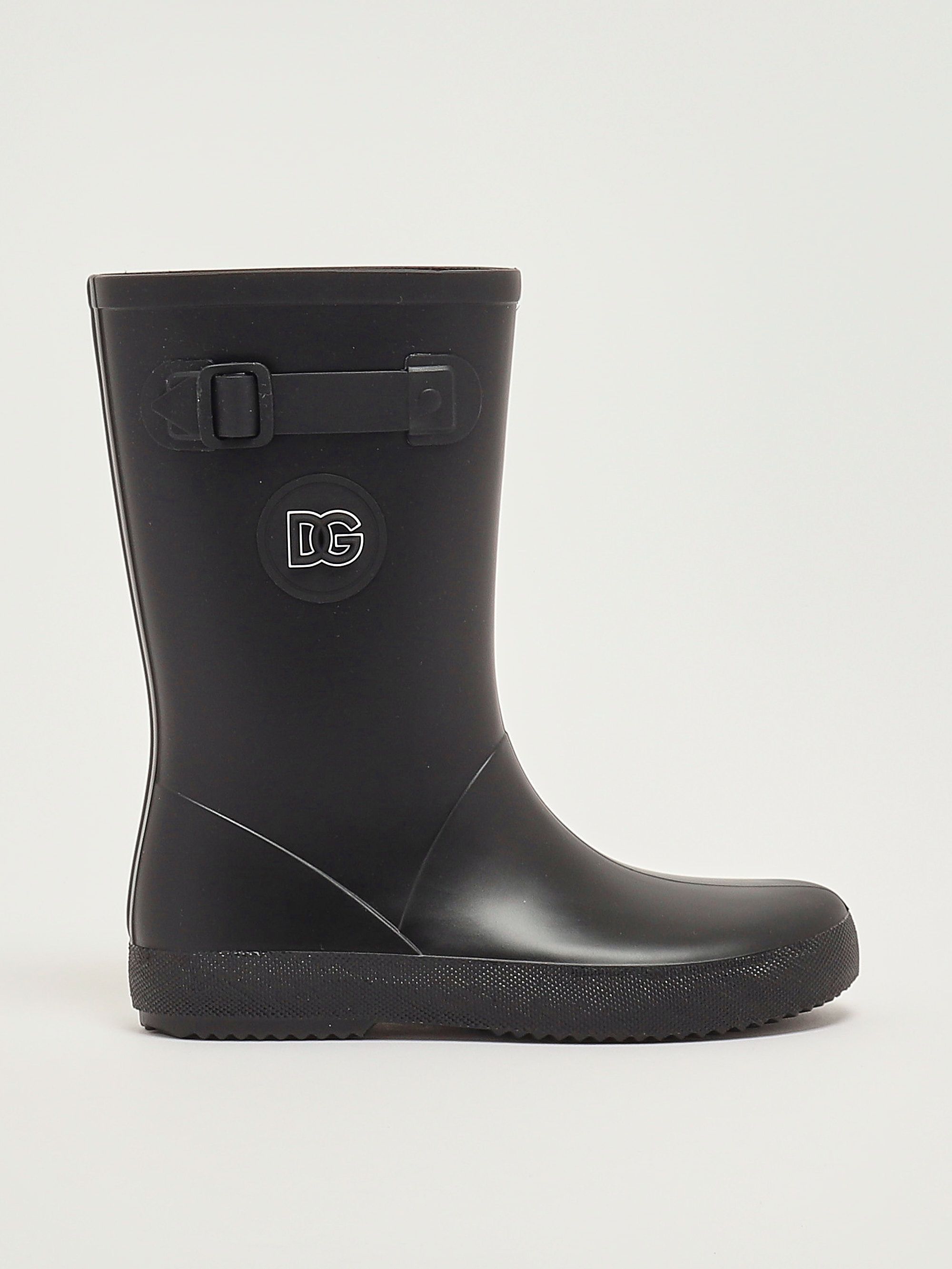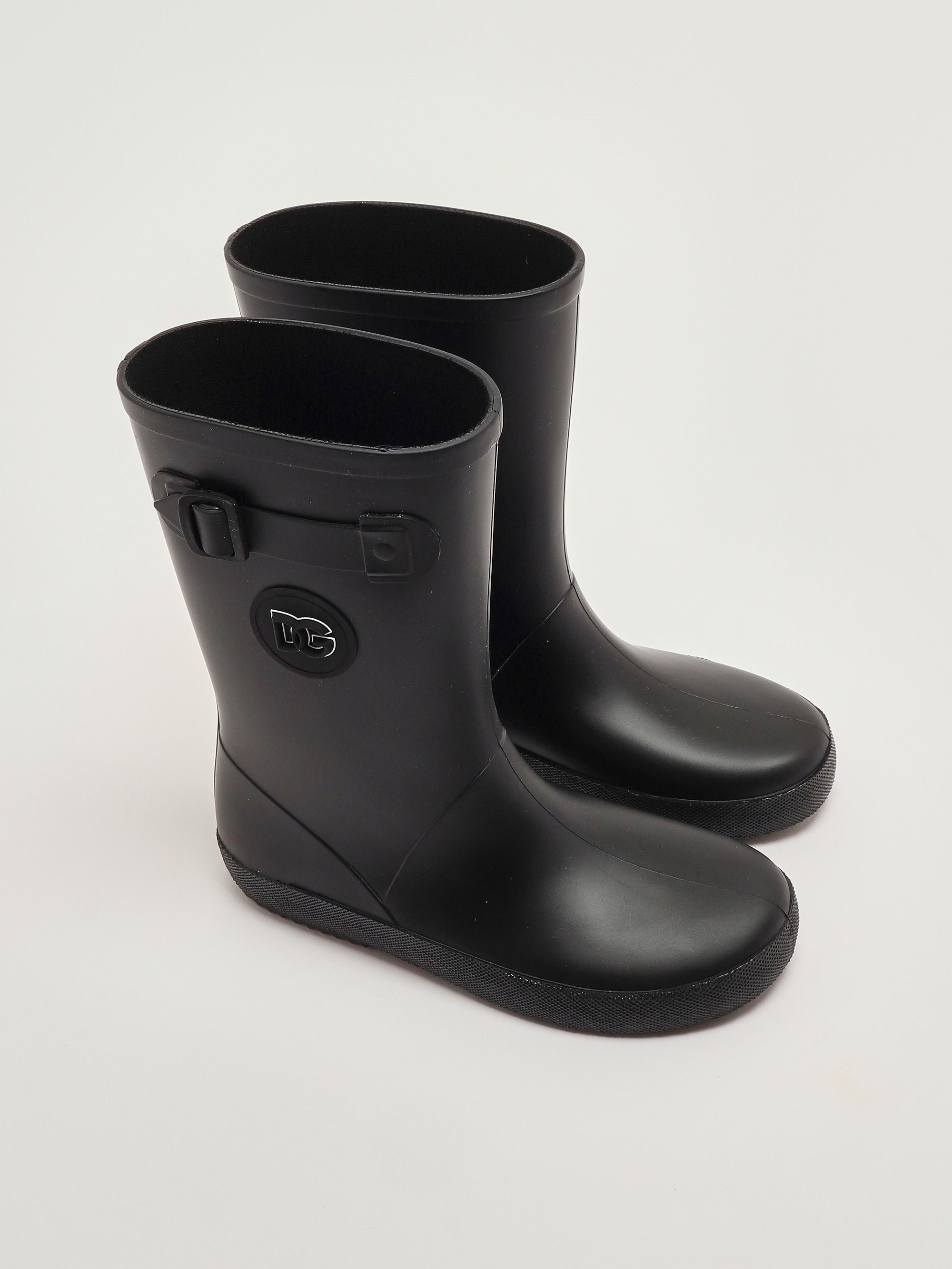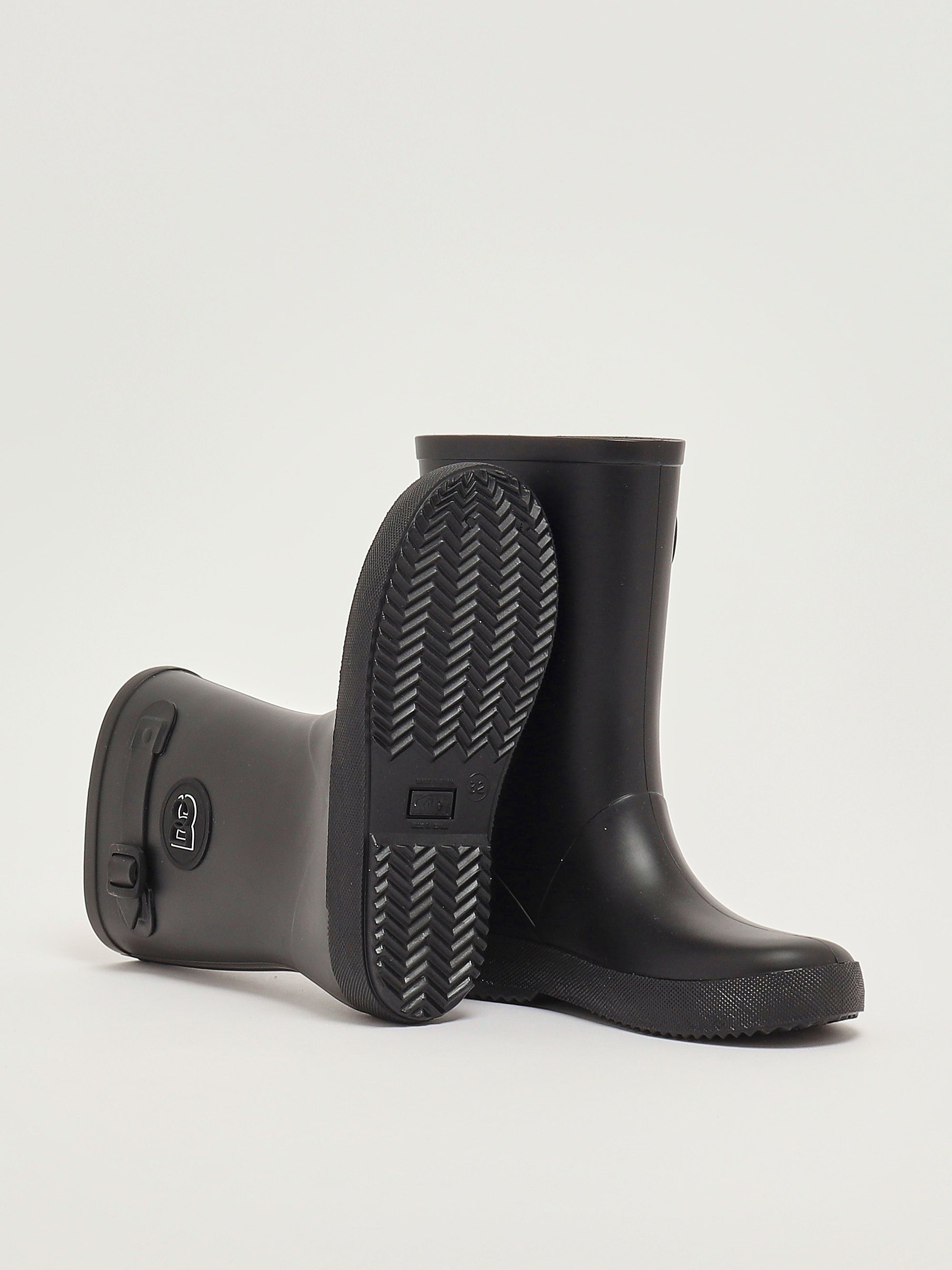 Realizzati in gomma, questi stivaletti anti pioggia si presentano con una suola bassa ma non piatta con striature anti scivolo, un cinturino con fibbia sui lati e un patch logo sul alto sopra la caviglia.