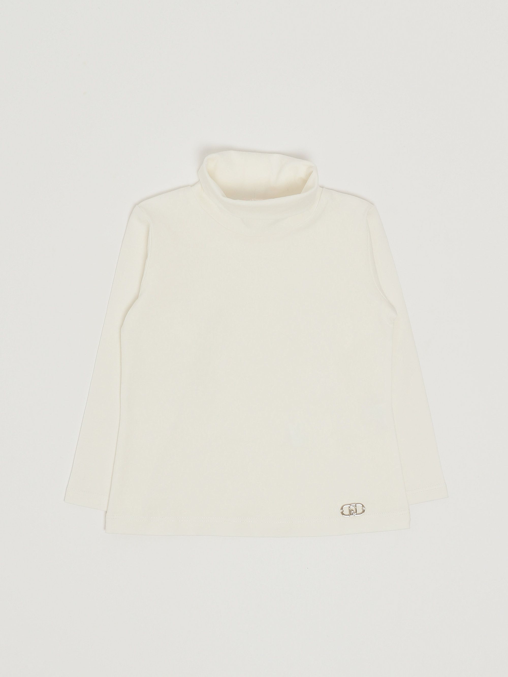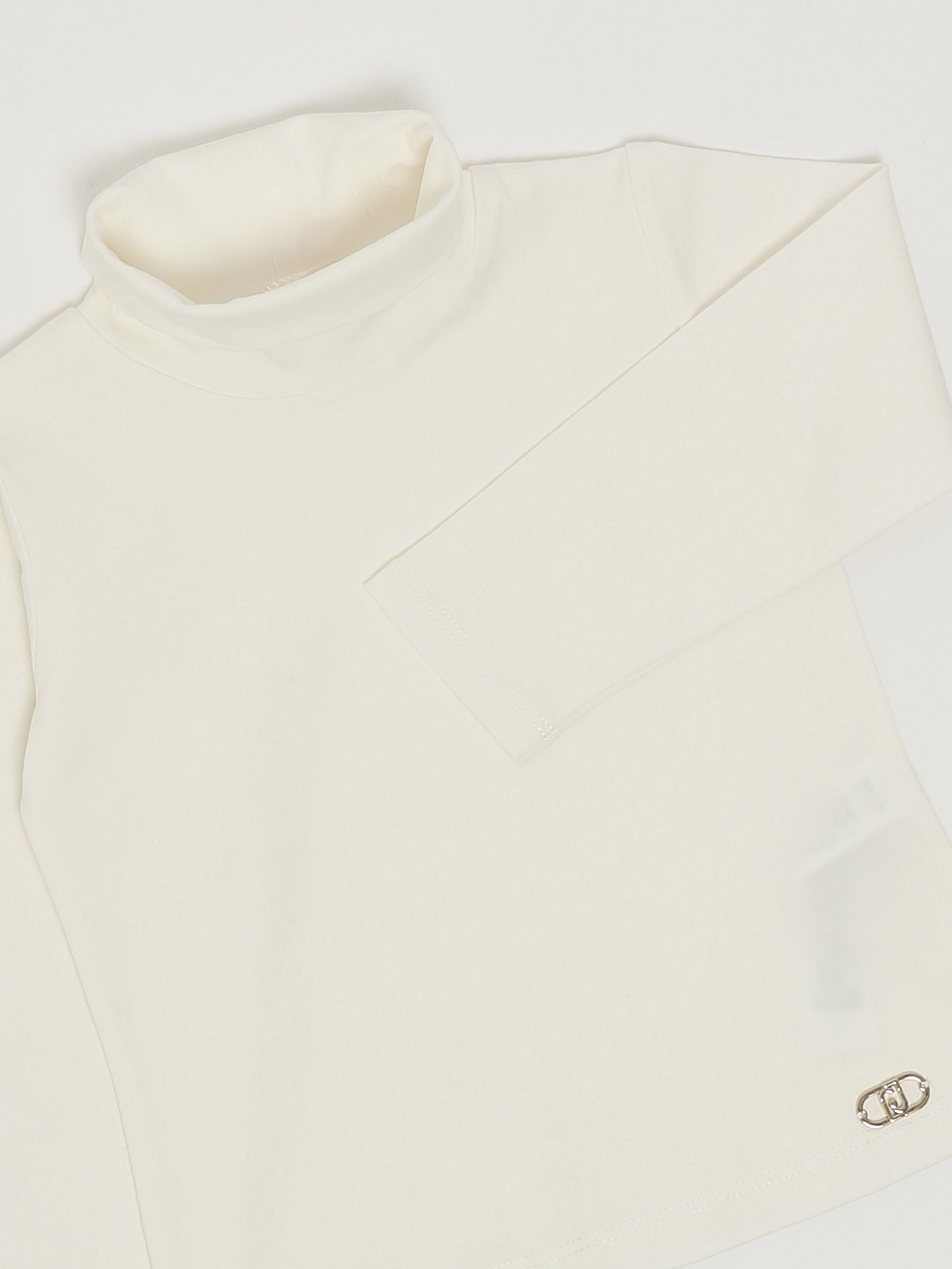 Questa t-shirt in cotone stretch a maniche lunghe si distingue per il collo a lupetto.